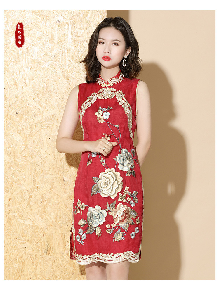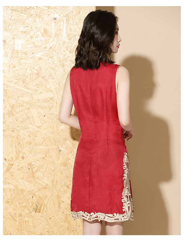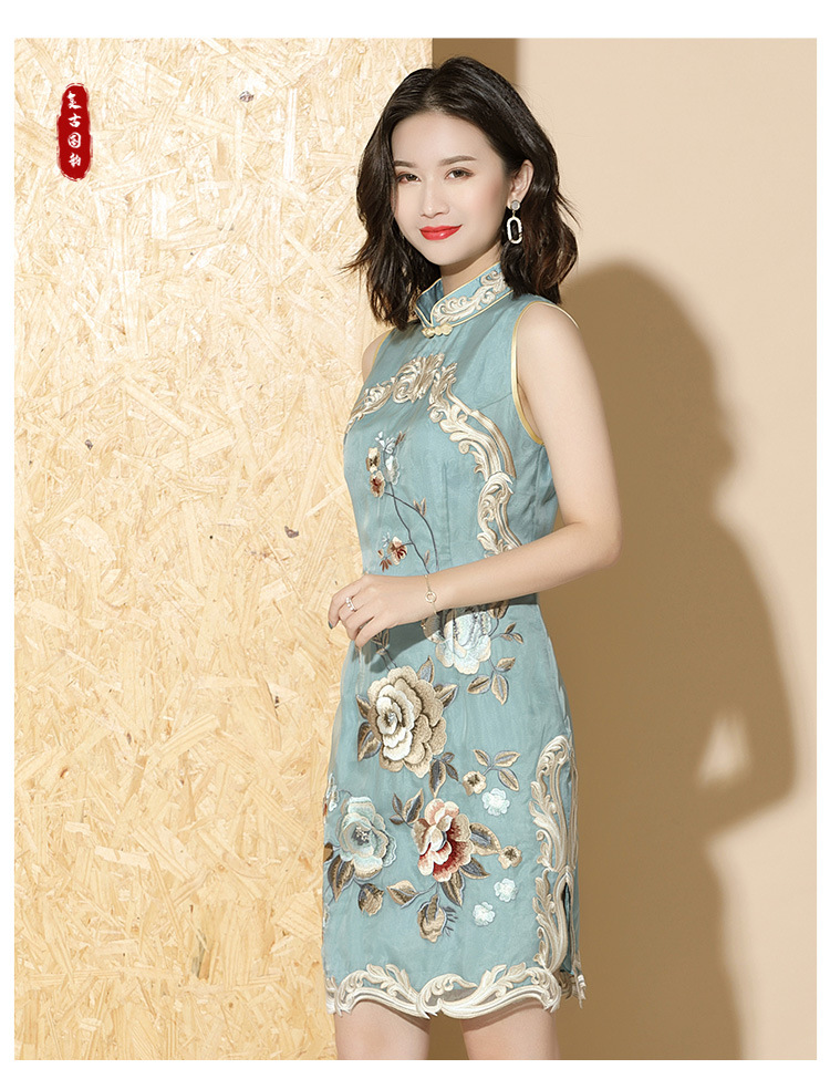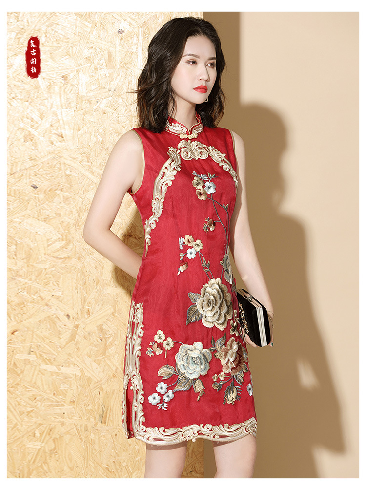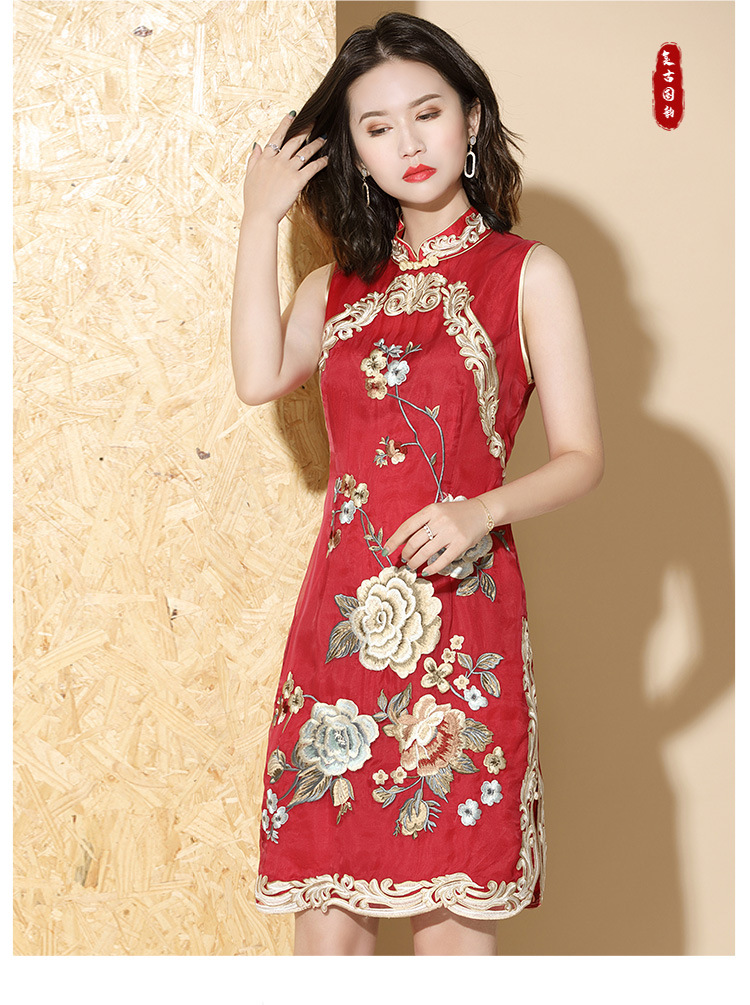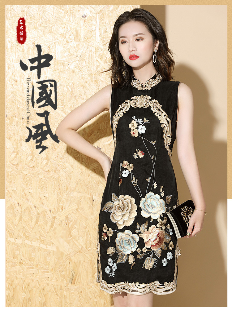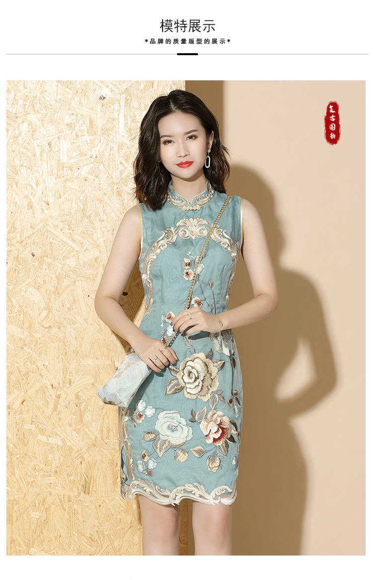 真丝欧根纱绣花旗袍裙改良无袖时尚修身连衣裙夏季新国风女装
