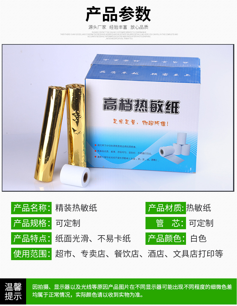 本公司专业生产热敏纸、收银纸、打印纸、复印纸等特种纸,畅销全国。本公司一向以质量和价格战胜同行,以致力产品质量的提高和良好的性价比,努力为用户提供满意的产品和服务,为了满足各位客商的不同需求,我公司不断地开发出一些新的产品。