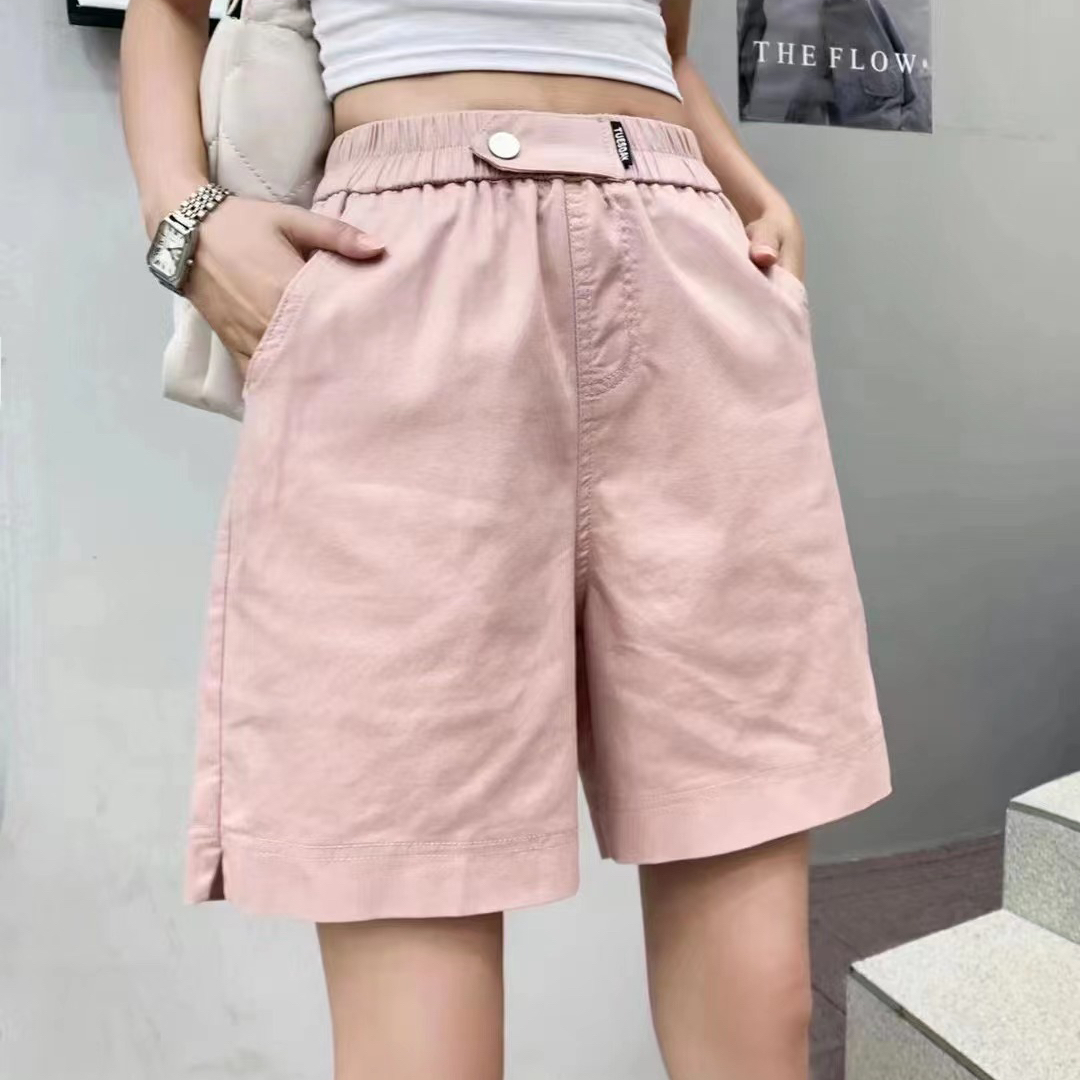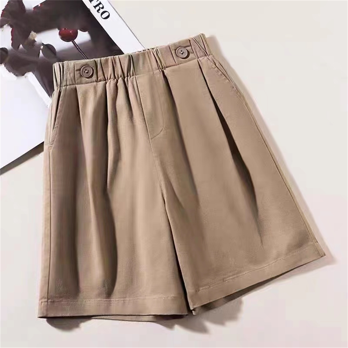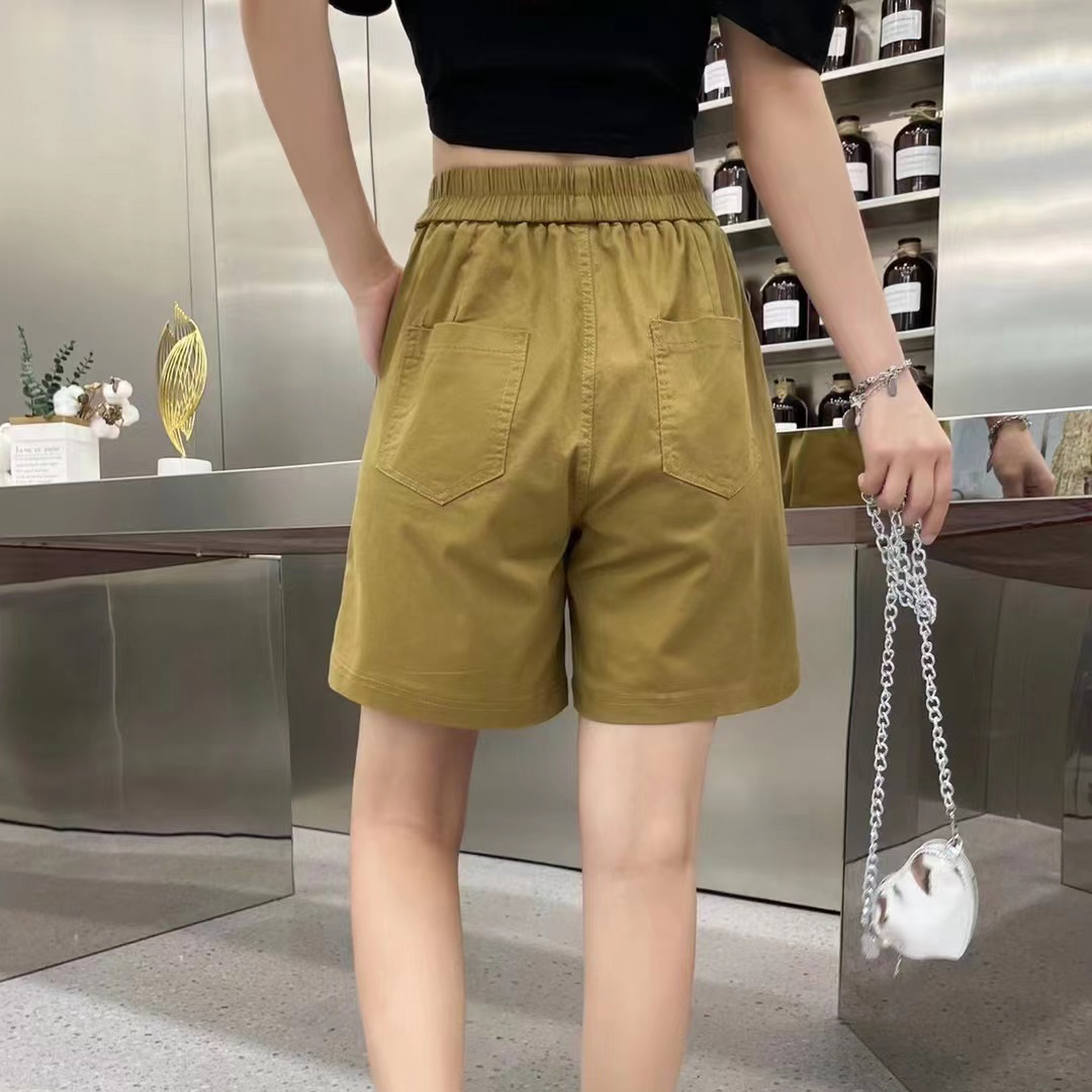 彈力棉五分褲女短褲2023夏季新高腰寬鬆直筒顯瘦休閒A字闊腿褲子