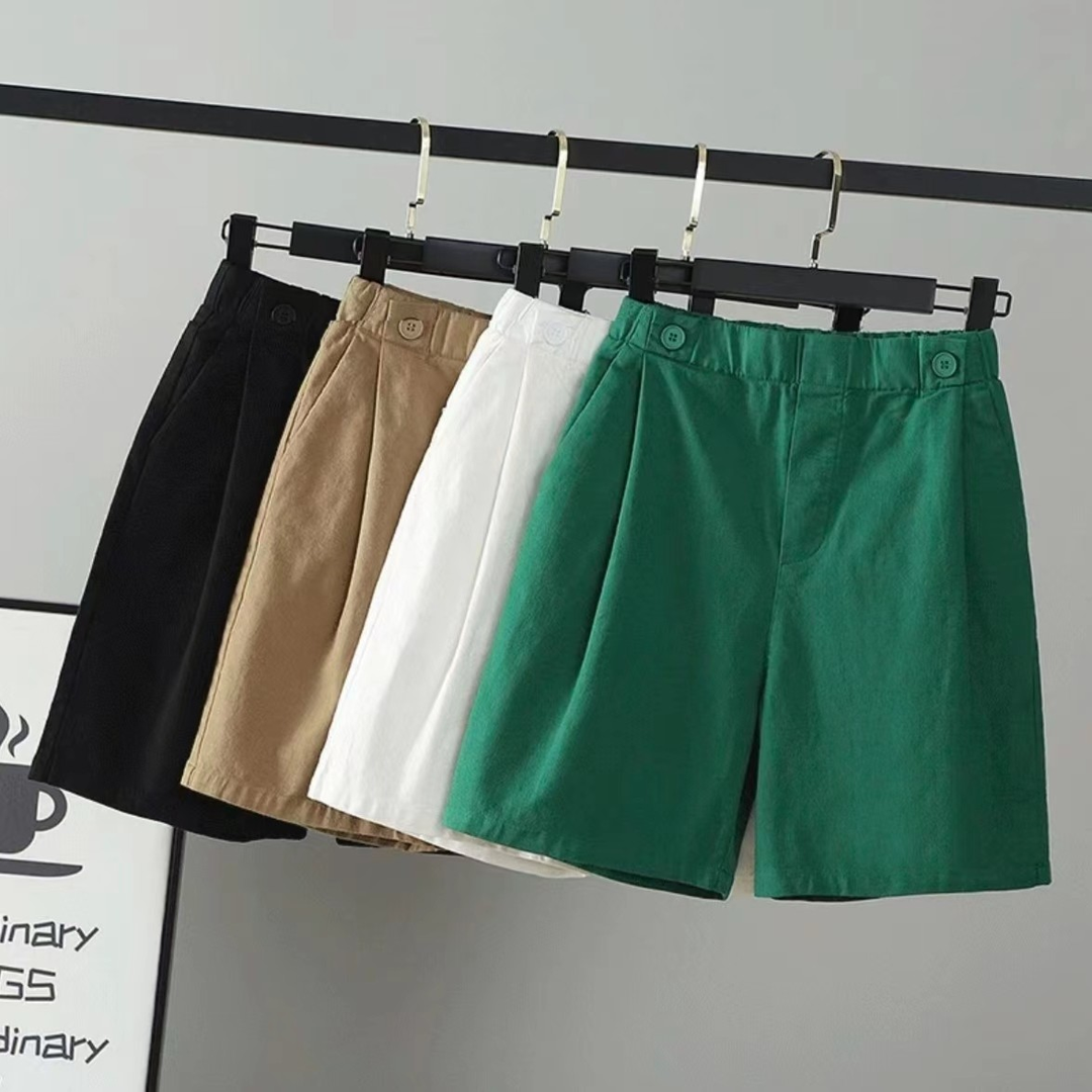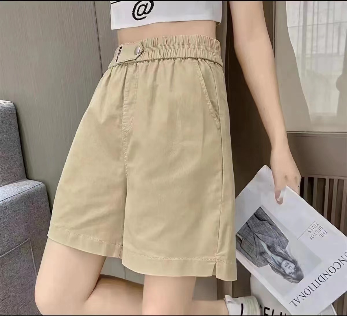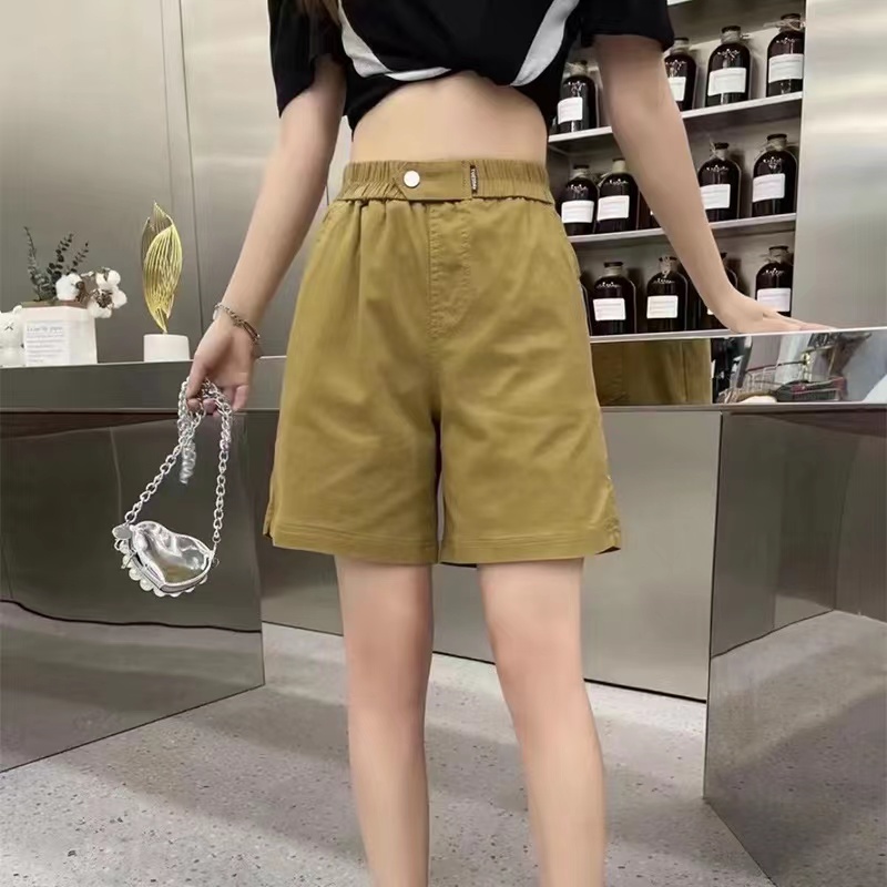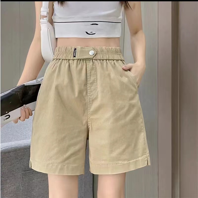 彈力棉五分褲女短褲2023夏季新高腰寬鬆直筒顯瘦休閒A字闊腿褲子