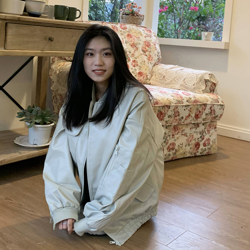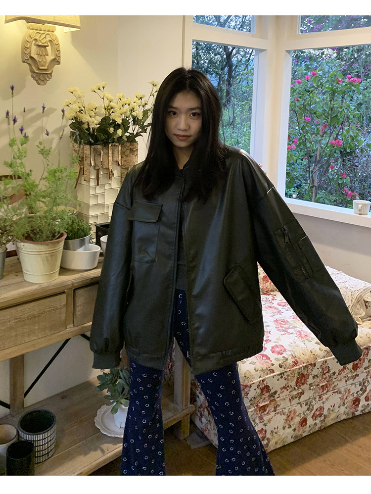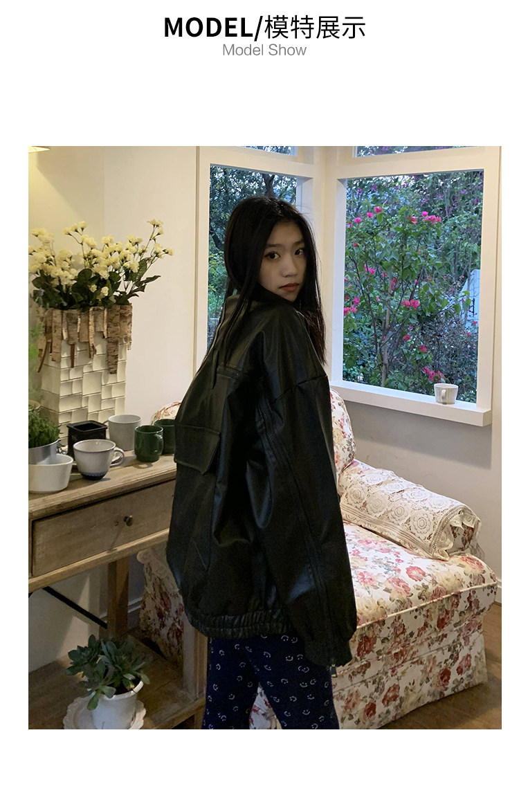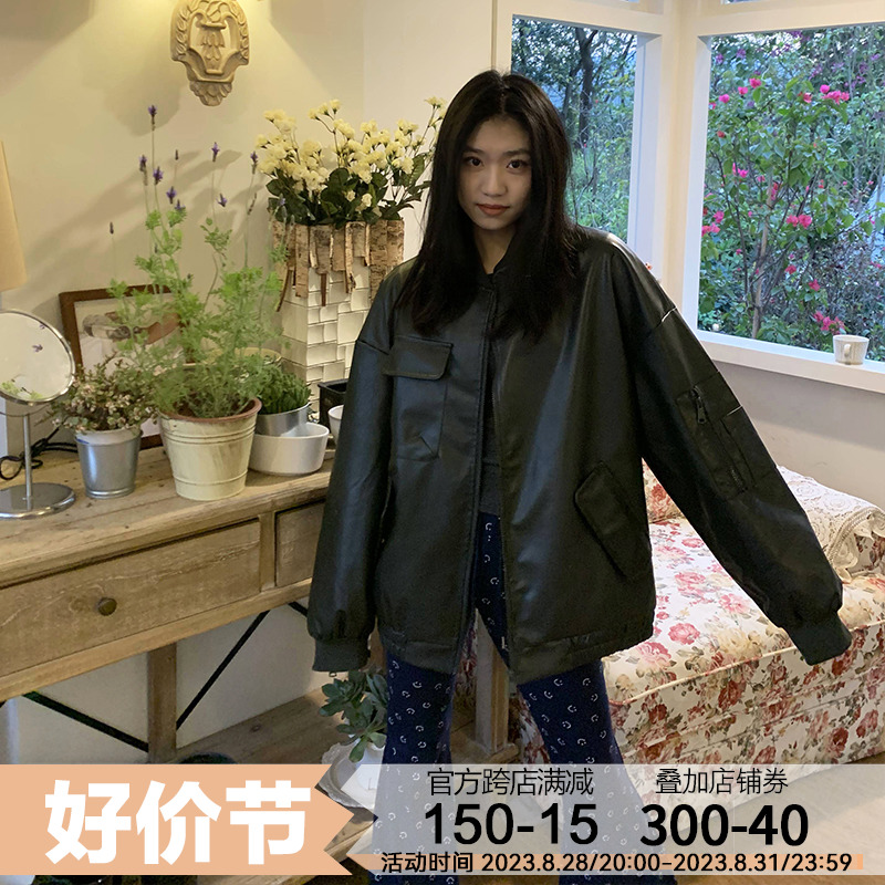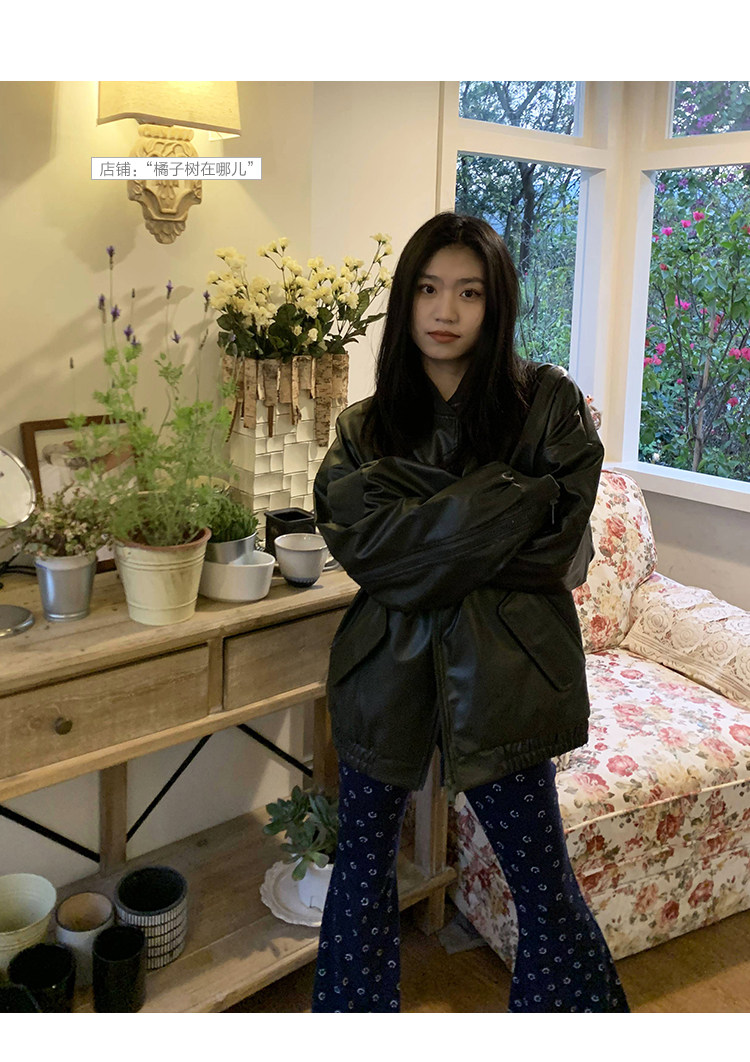 橘子樹在哪兒黑色pu皮衣外套女2023春新款寬鬆設計感休閒皮質夾克