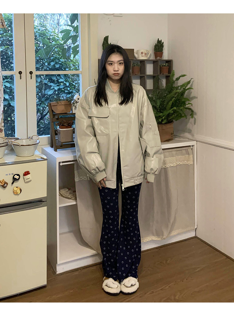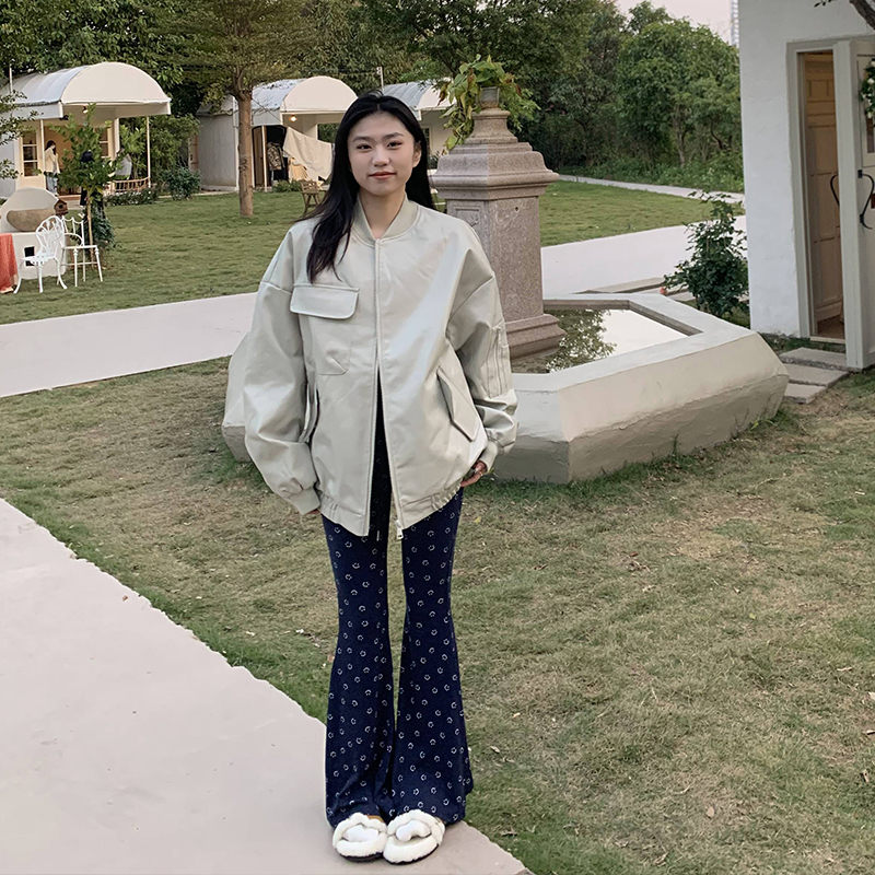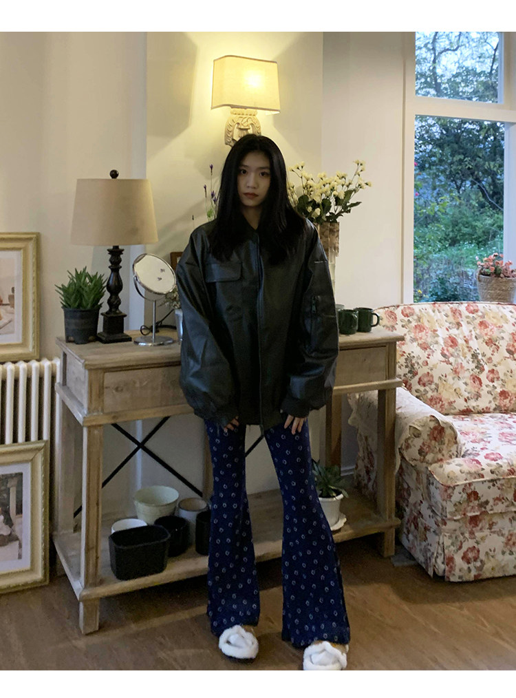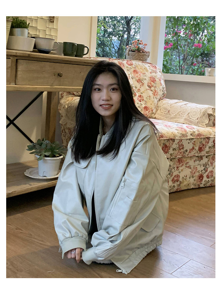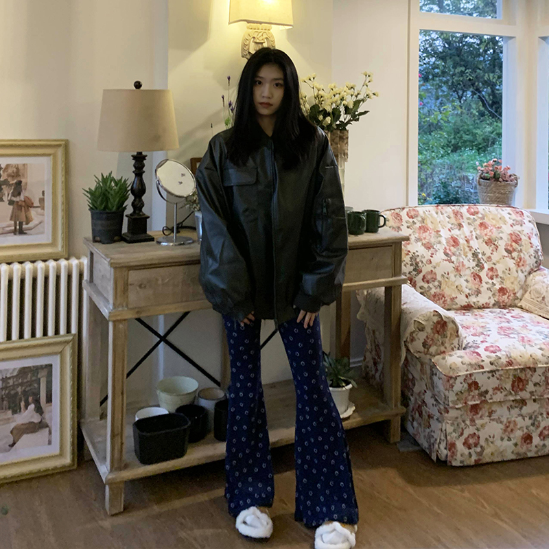 橘子樹在哪兒黑色pu皮衣外套女2023春新款寬鬆設計感休閒皮質夾克