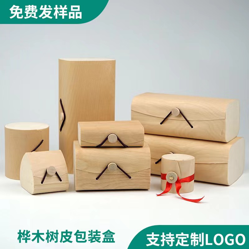 桦木树皮盒子小白T包装盒木质翻盖茶叶礼品盒t恤短袖毛巾软木盒