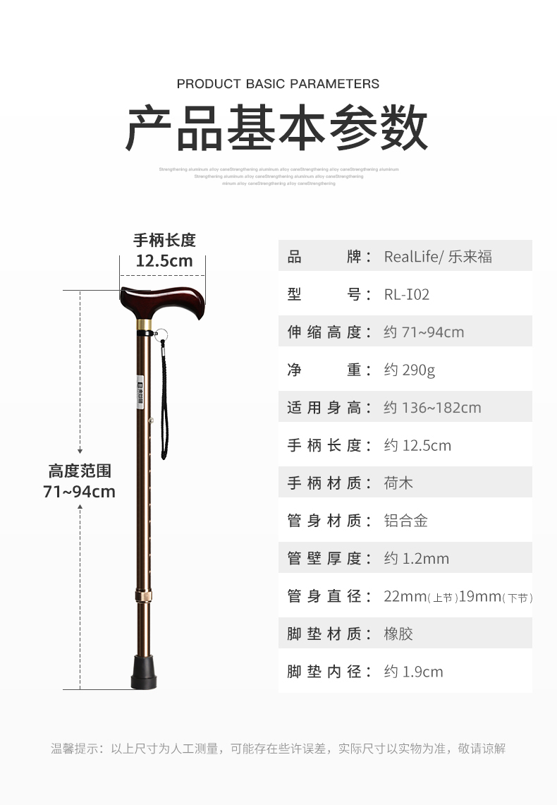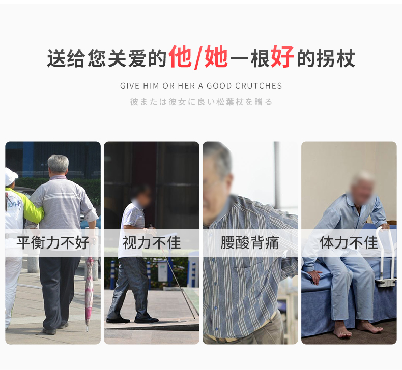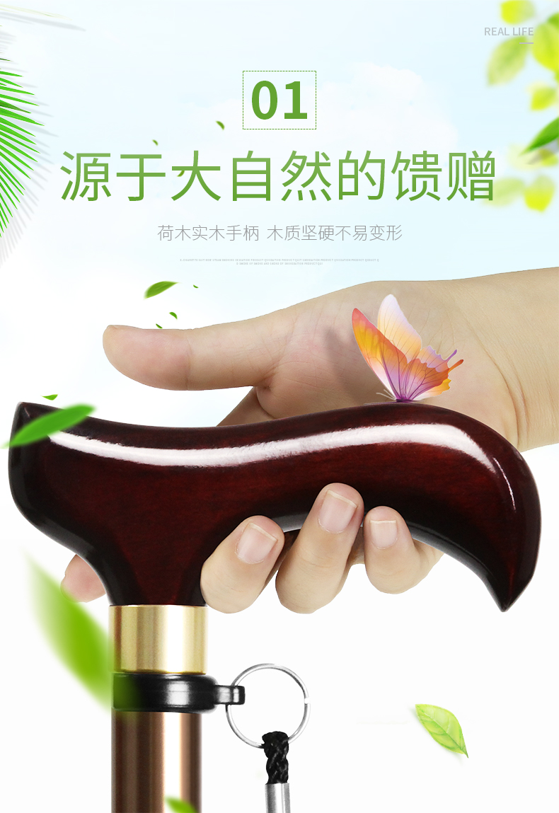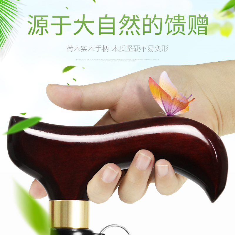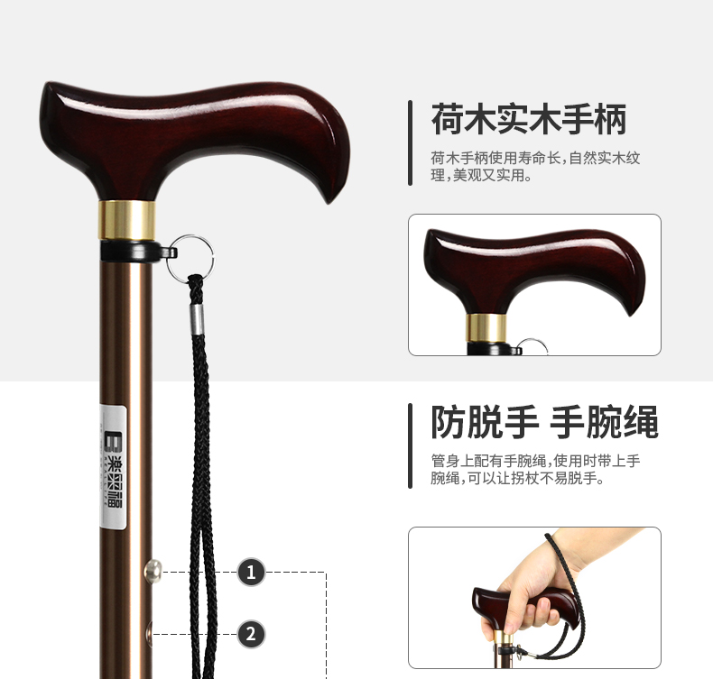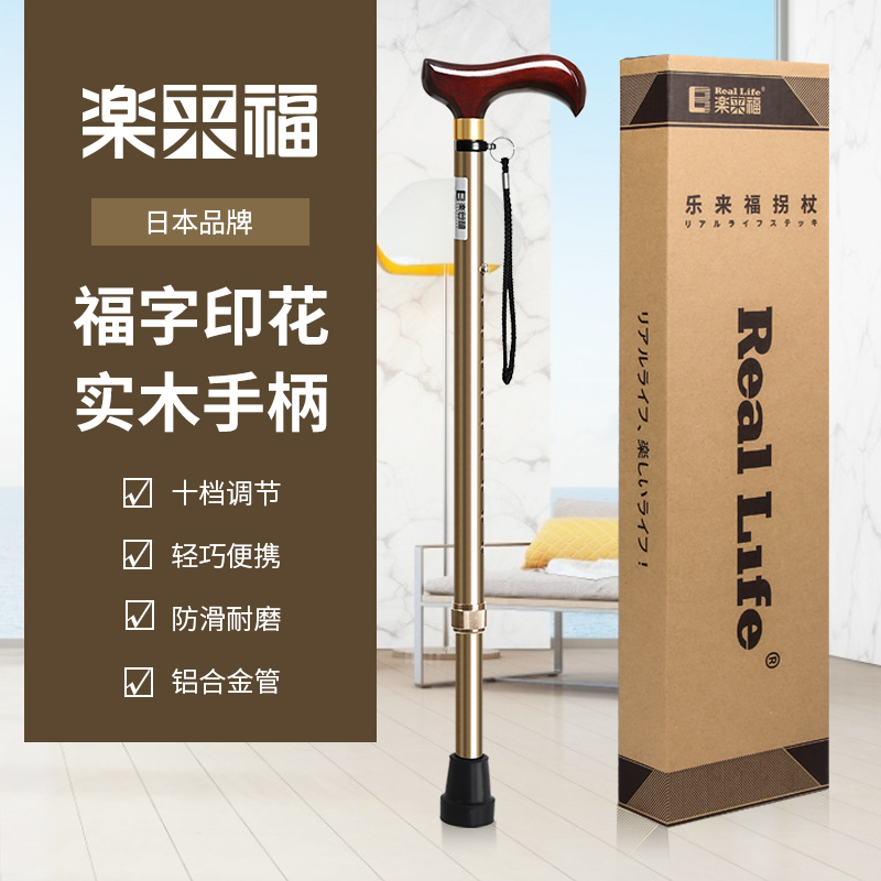日本樂來福實木手柄鋁合金登山杖伸縮老人柺杖可攜式防滑老年人手杖