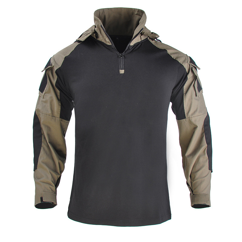 强袭作战服2017年因为某单位需求在原有其它国相同单位装备服装改良打样. 2018年量产至今 .2020年面料进行升级 有帽版兜帽部位和手臂升级为放水面料 躯干部位不防水  裤子不防水  无帽版未作改动