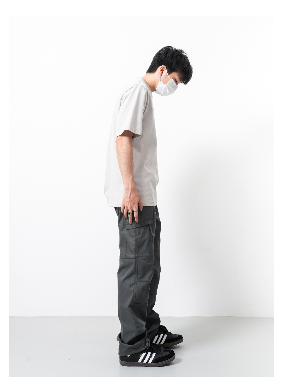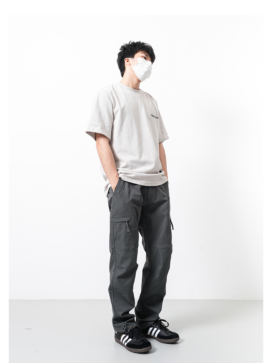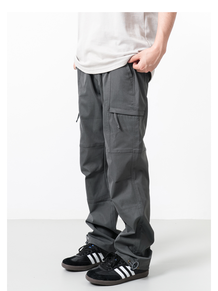 RAIN EDM美式高街戶外機能工裝褲男復古潮牌抽繩直筒寬鬆vibe褲子