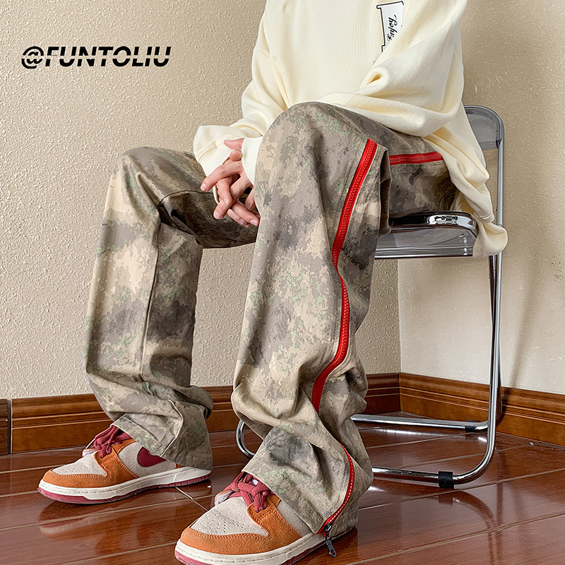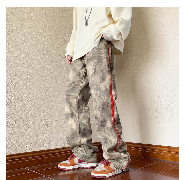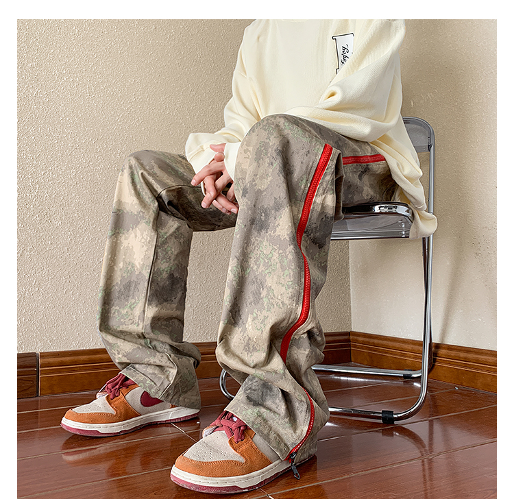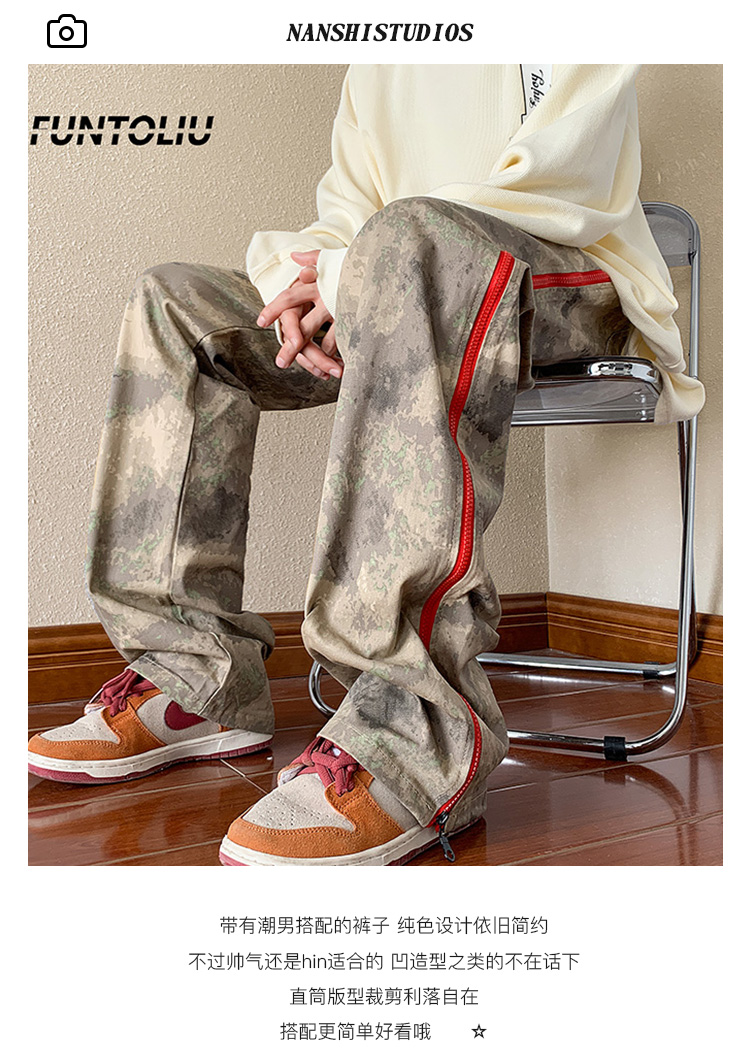 迷彩褲子男高街美式工裝褲男潮牌設計感小眾直筒寬鬆衝鋒休閒長褲