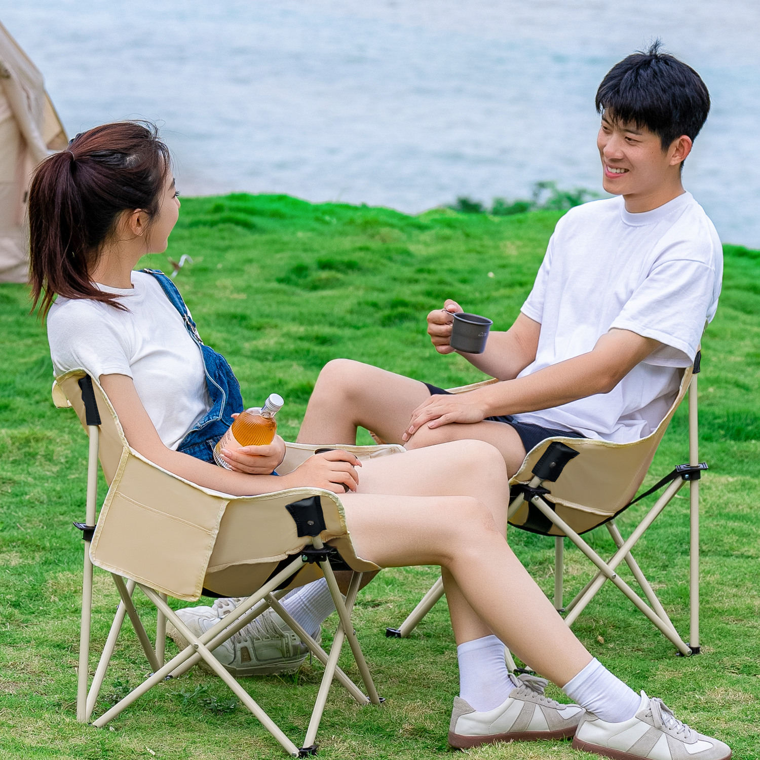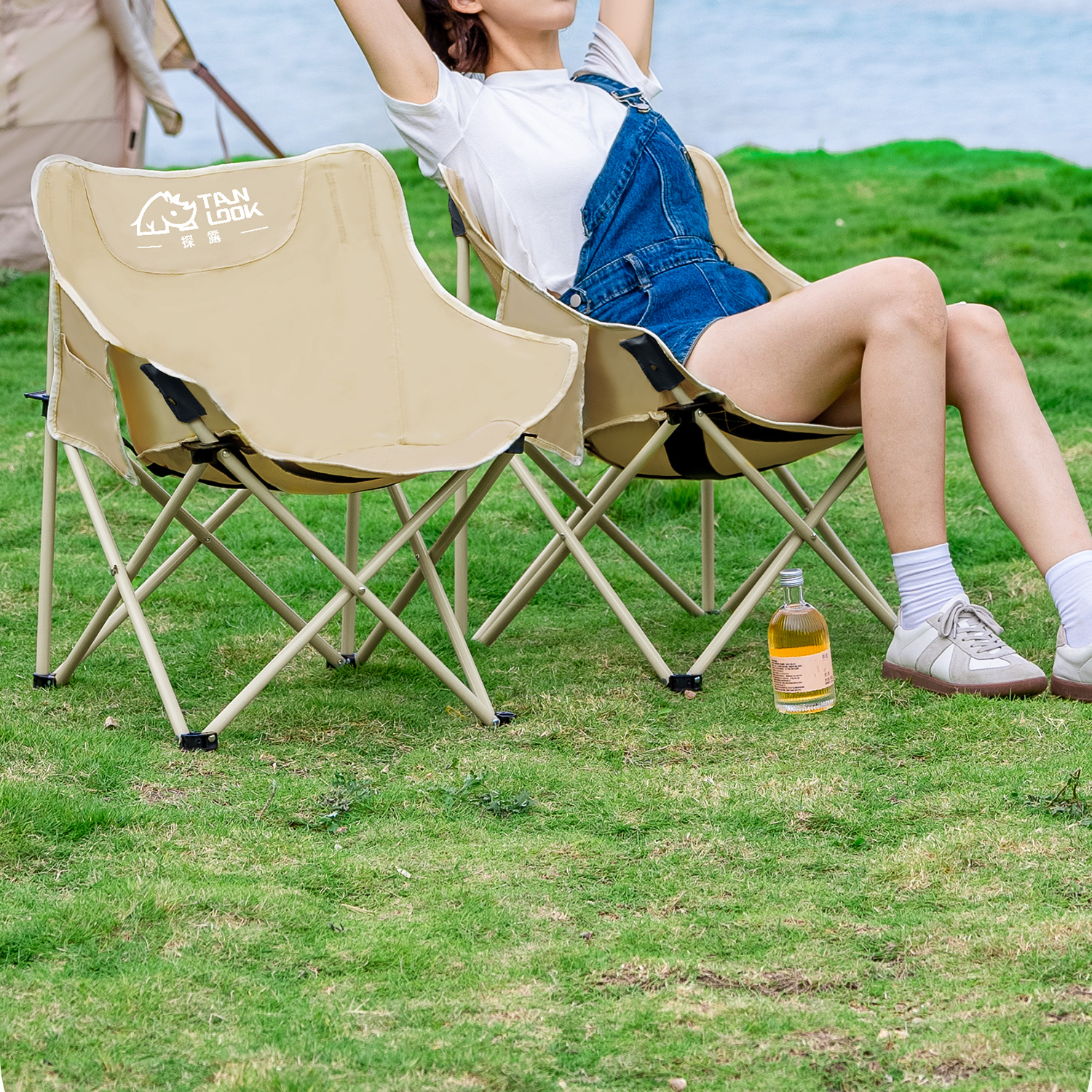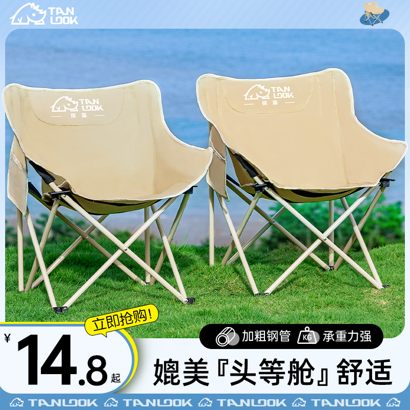 探露月亮椅露營椅子戶外摺疊椅可攜式躺椅釣魚凳沙灘椅野餐桌椅