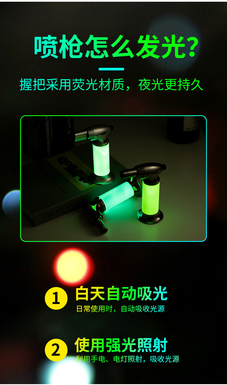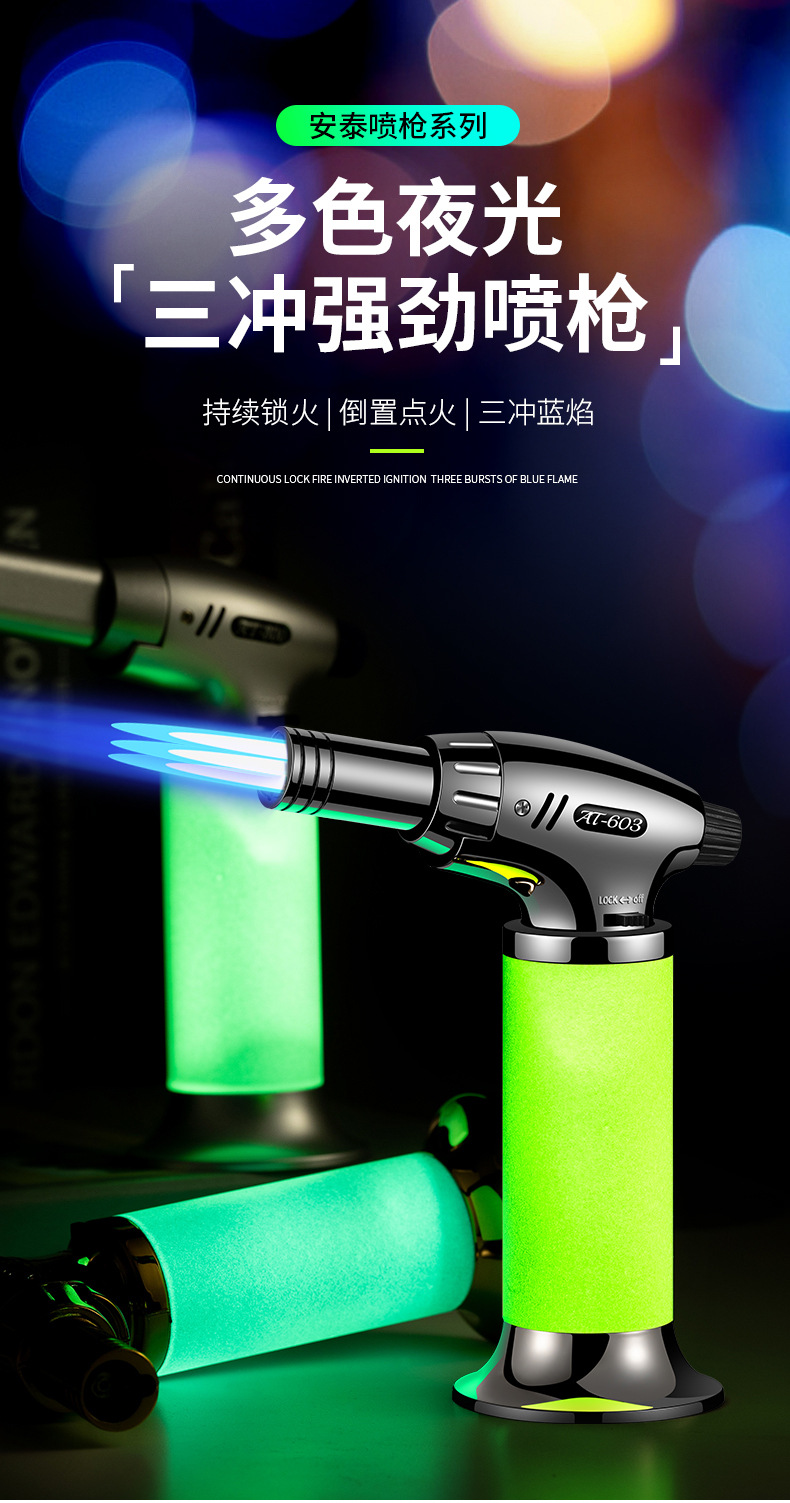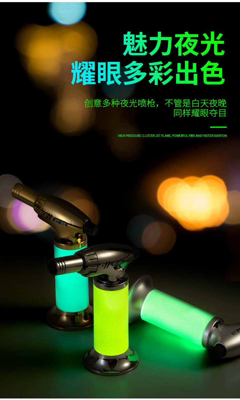 新款直冲手握式夜光点火枪喷枪焊枪定火防风充气打火机工厂批发