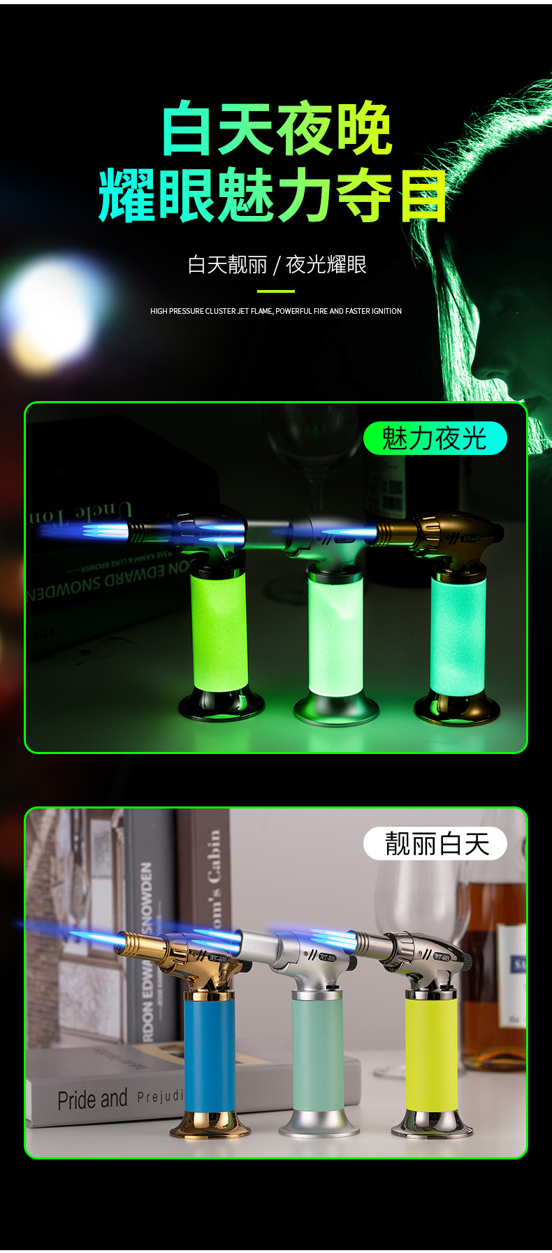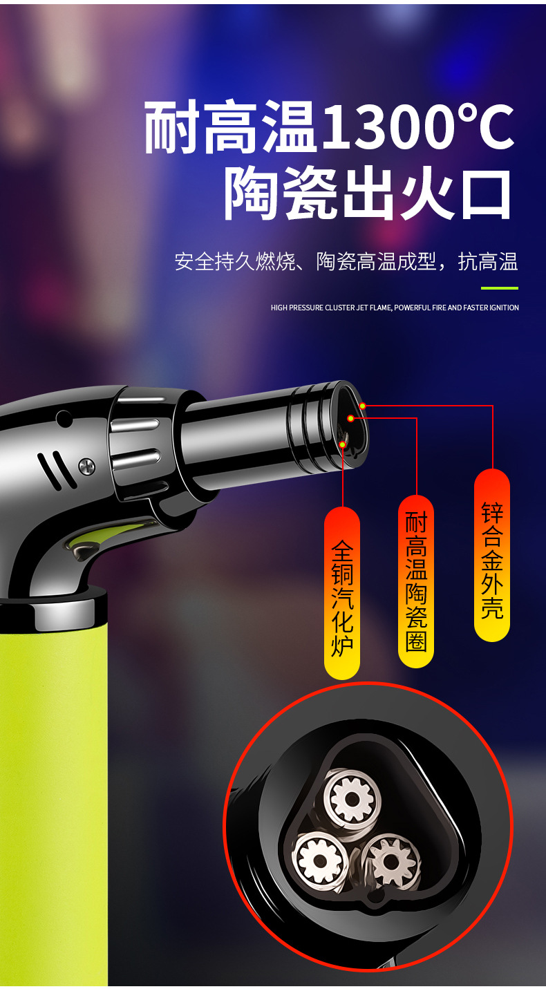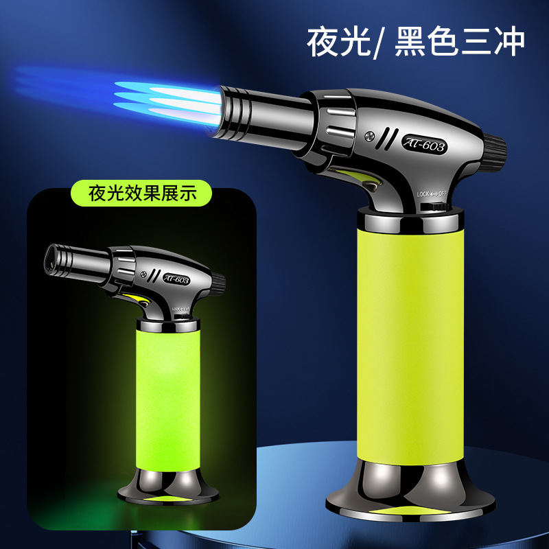 新款直冲手握式夜光点火枪喷枪焊枪定火防风充气打火机工厂批发