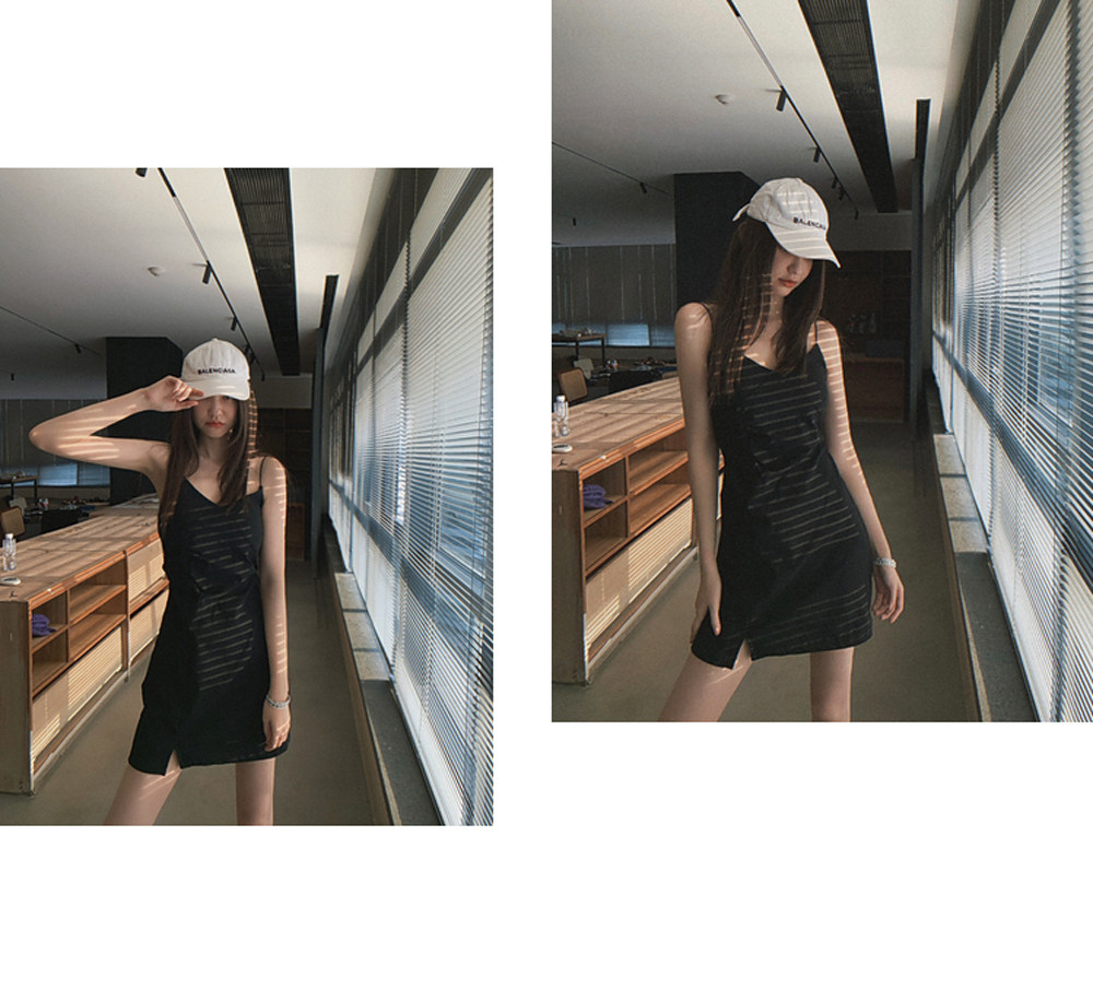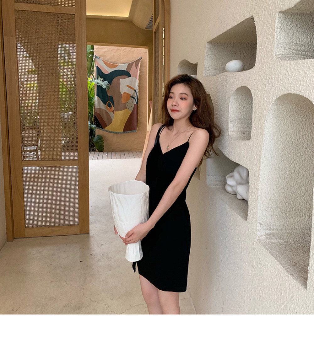 【清倉不退換】原~外穿開叉吊帶洋裝女韓版顯瘦內搭短裙秋