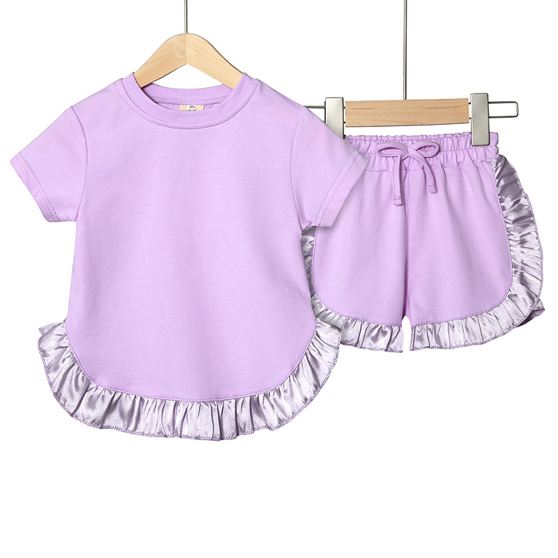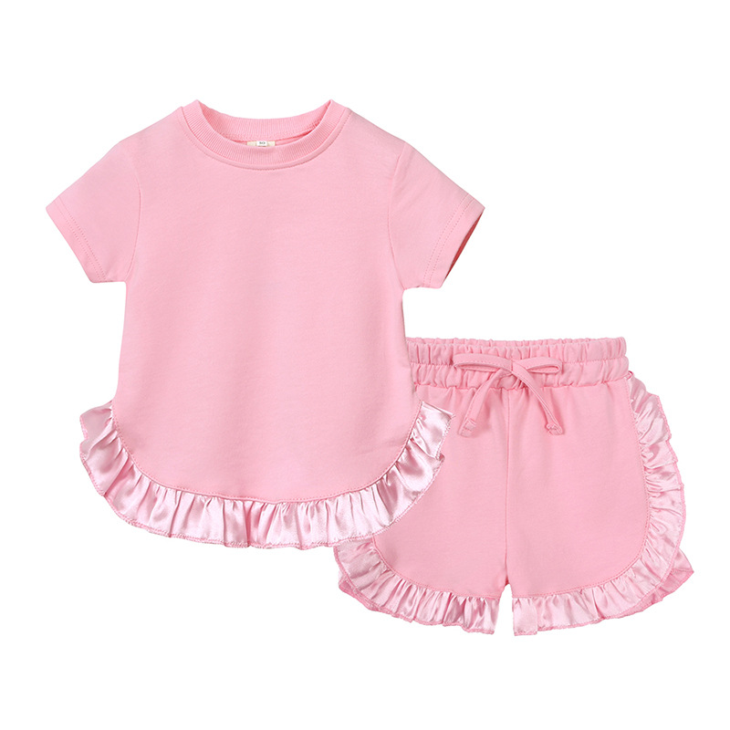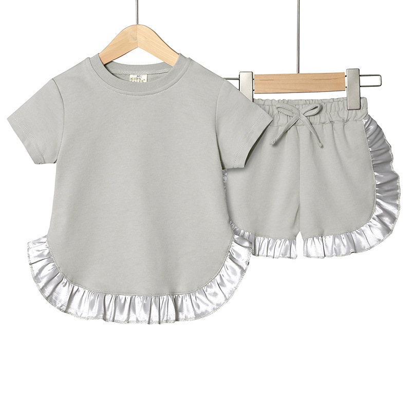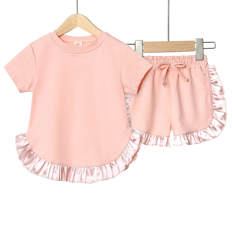 【款式】2023夏季新款女童套装中小童韩版洋气短袖花边上衣短裤两件套批发