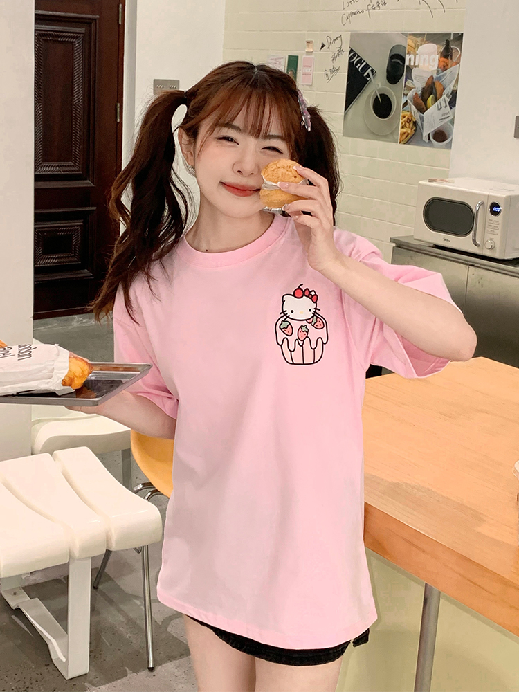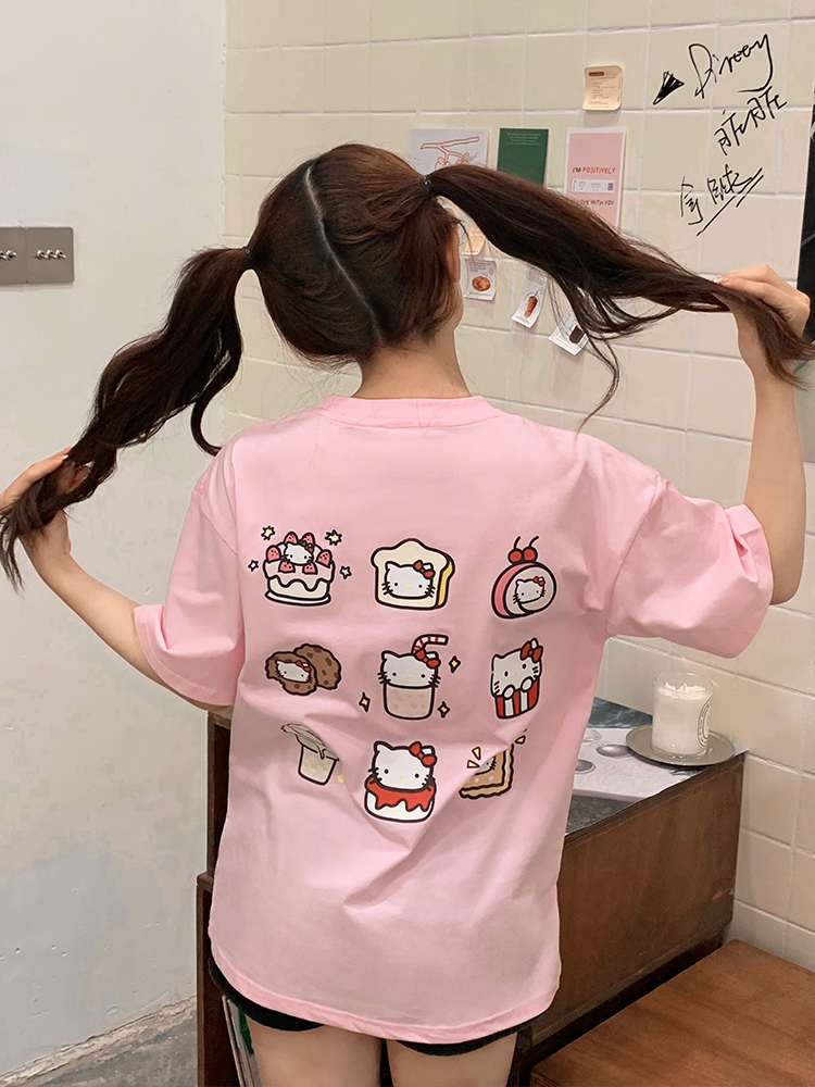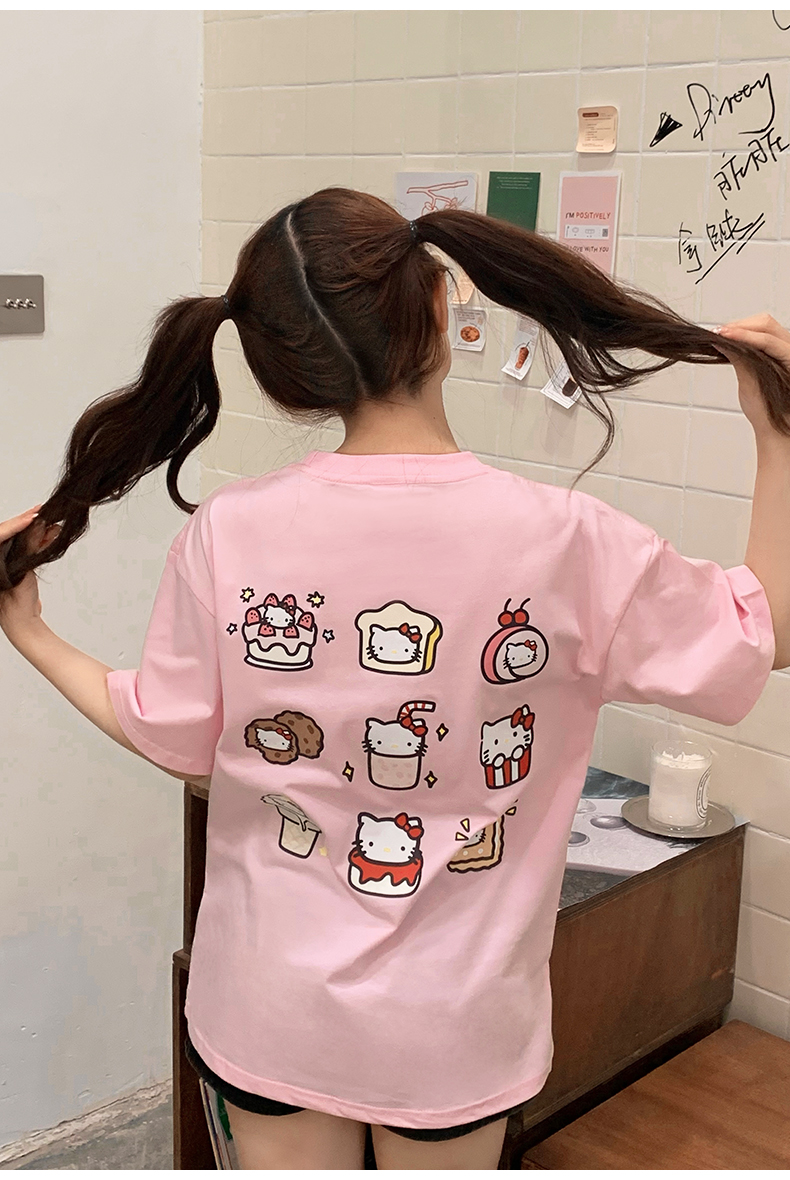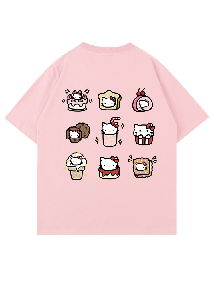 很潤工作室 九宮格貓貓落肩短袖男女卡通可愛百搭款情侶T恤上衣
