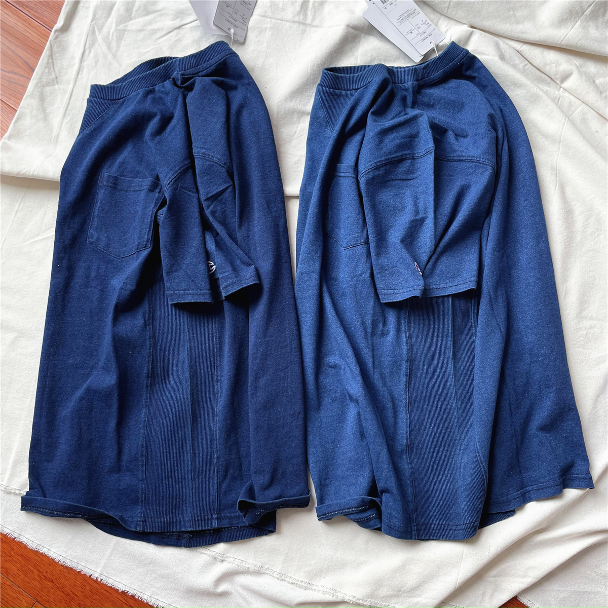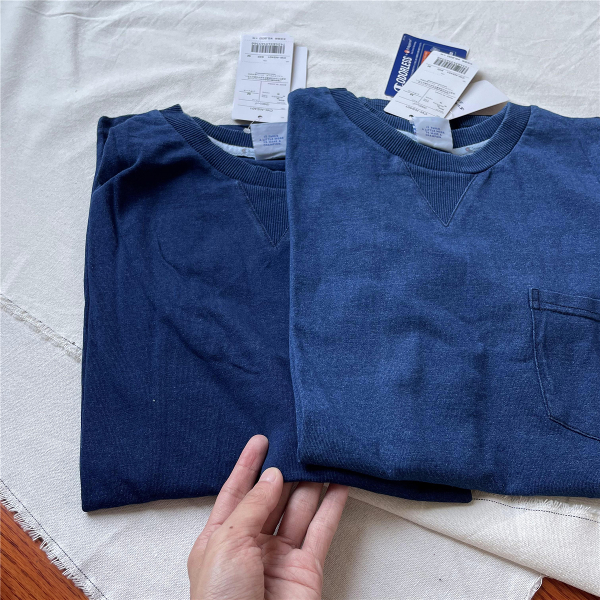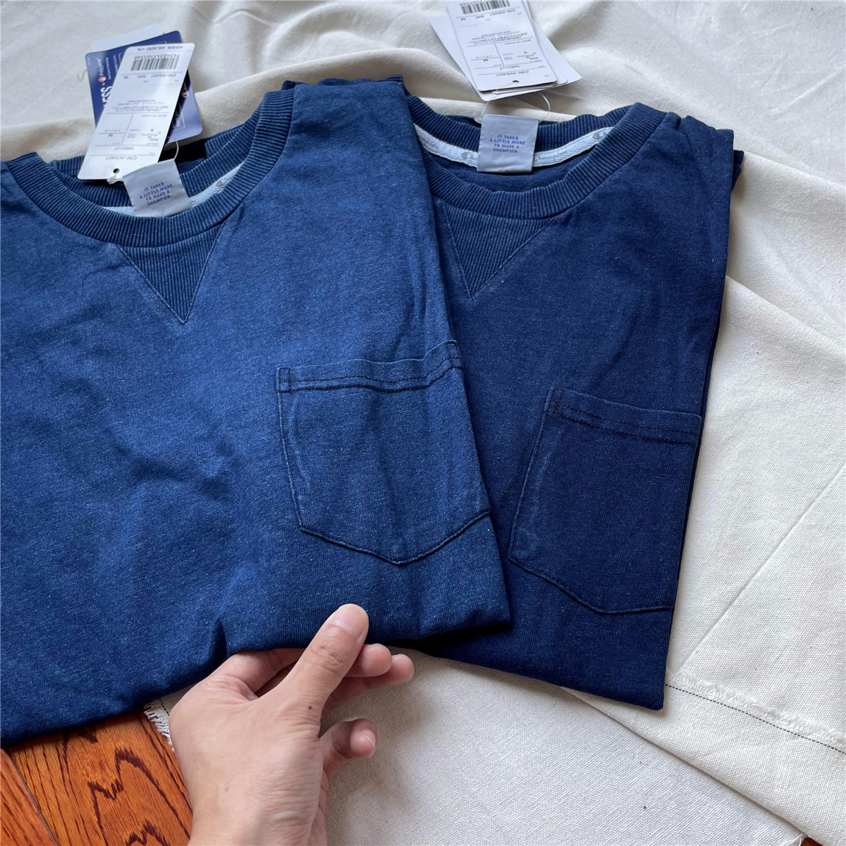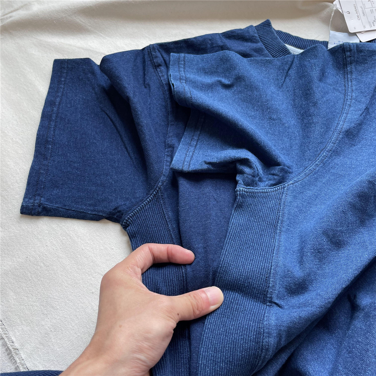 硬貨!!必看!!男女靛藍水洗薄款親膚純棉色復古圓領短袖T恤衫