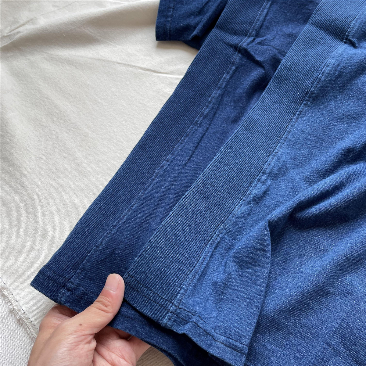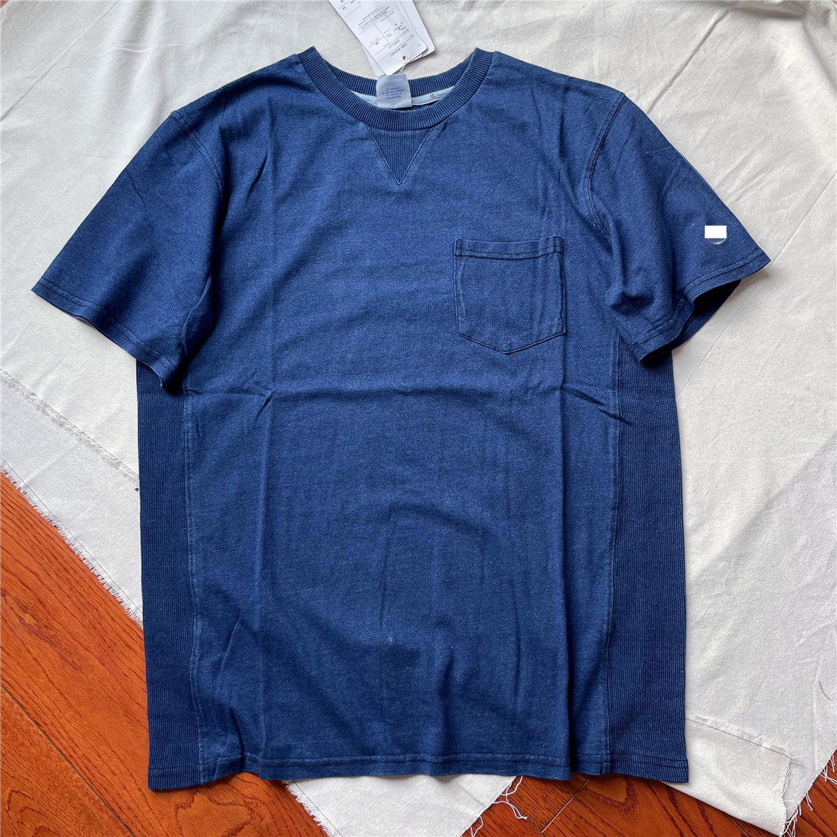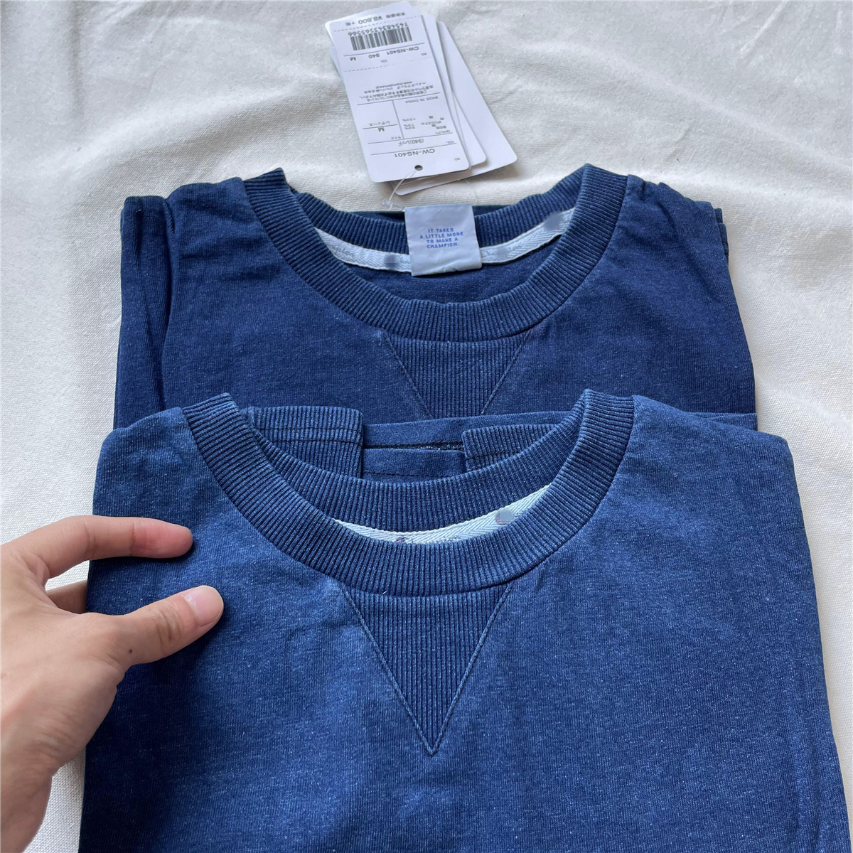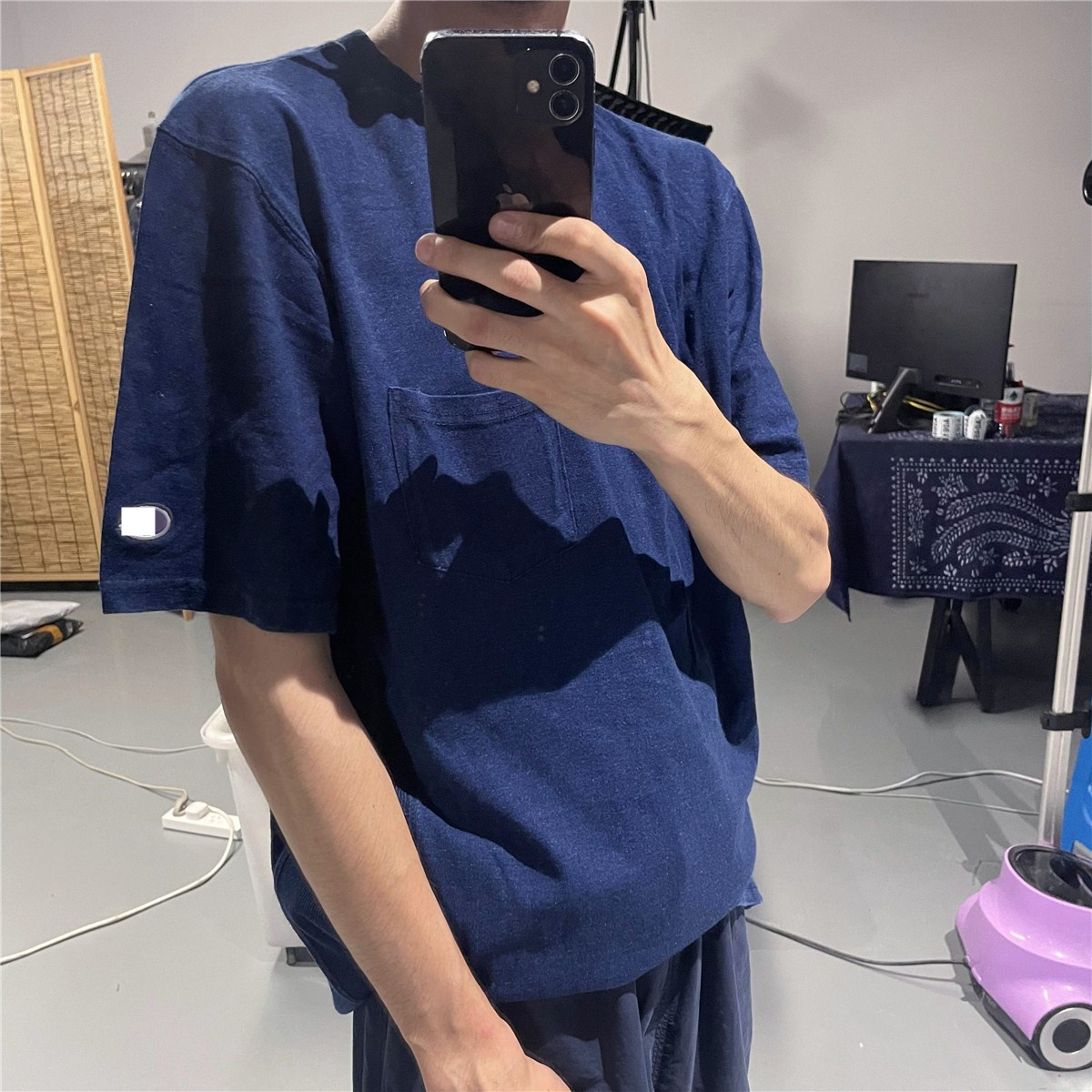 硬貨!!必看!!男女靛藍水洗薄款親膚純棉色復古圓領短袖T恤衫