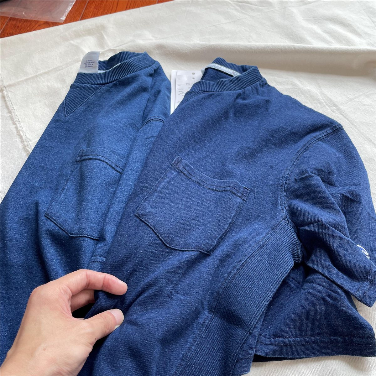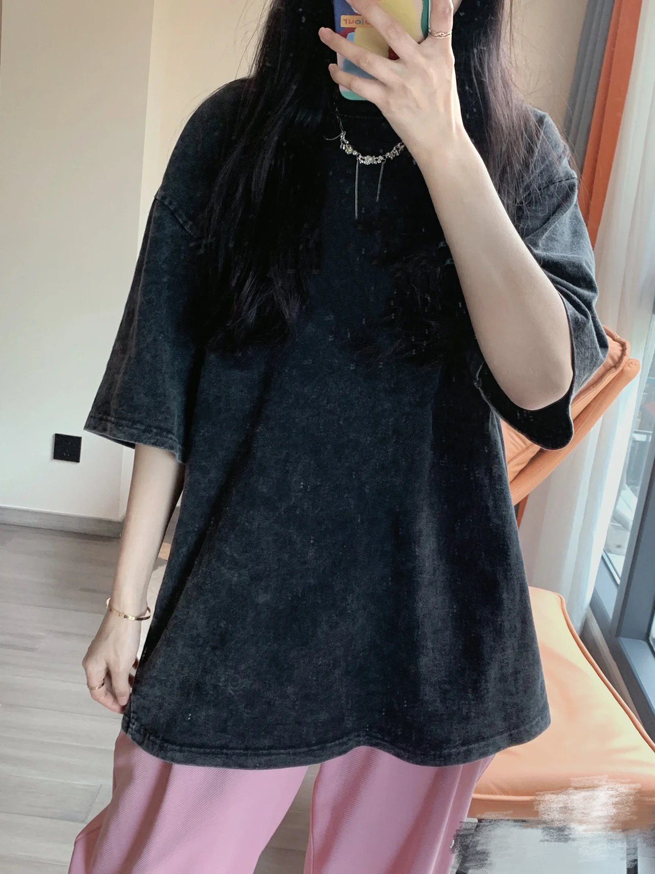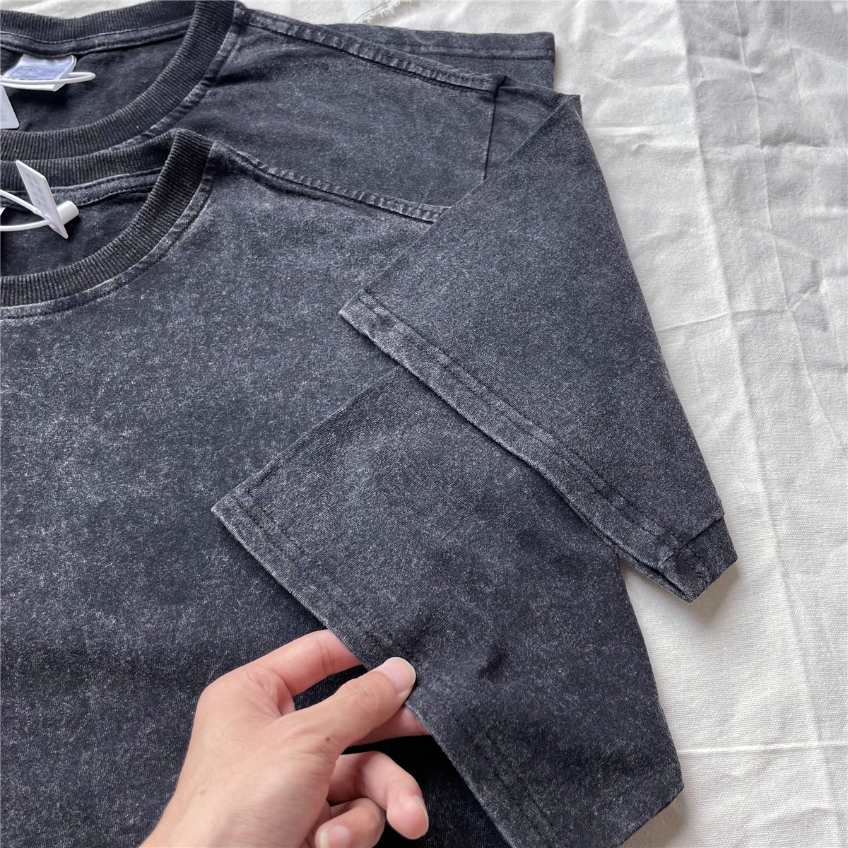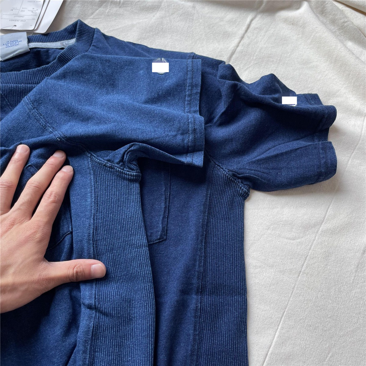 硬貨!!必看!!男女靛藍水洗薄款親膚純棉色復古圓領短袖T恤衫