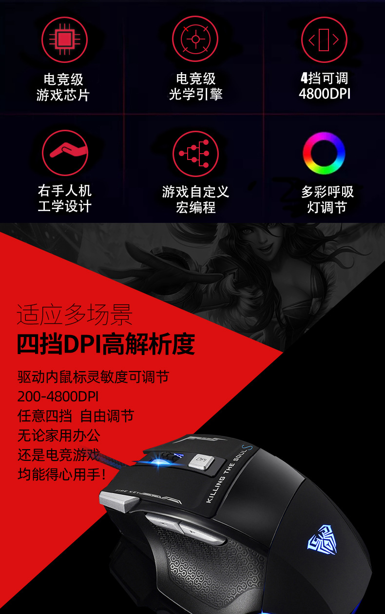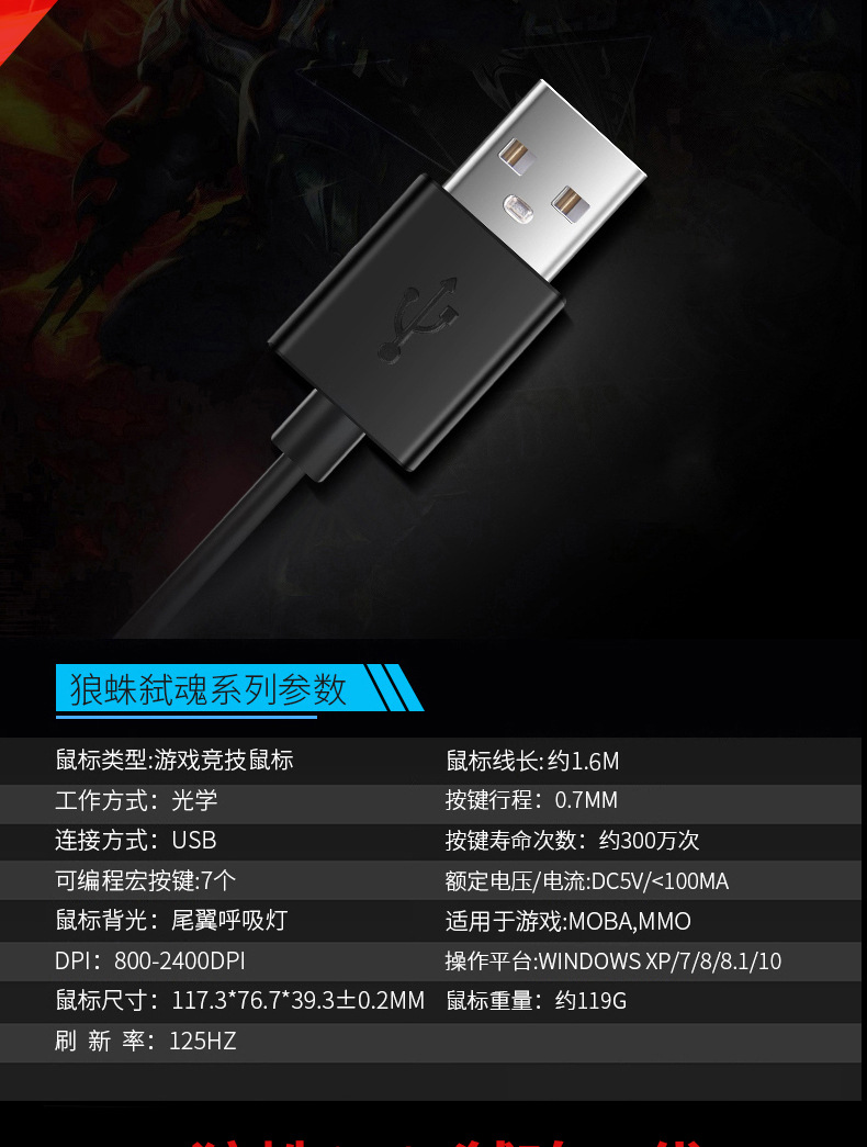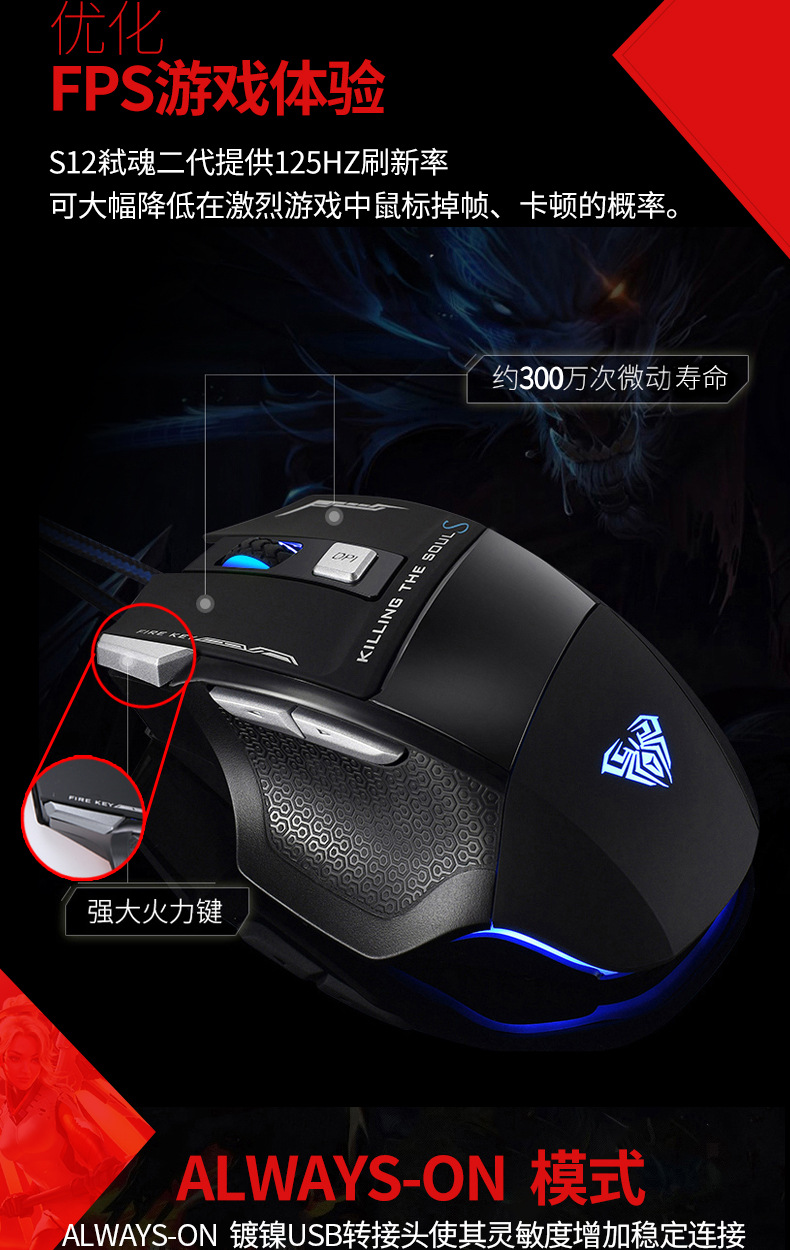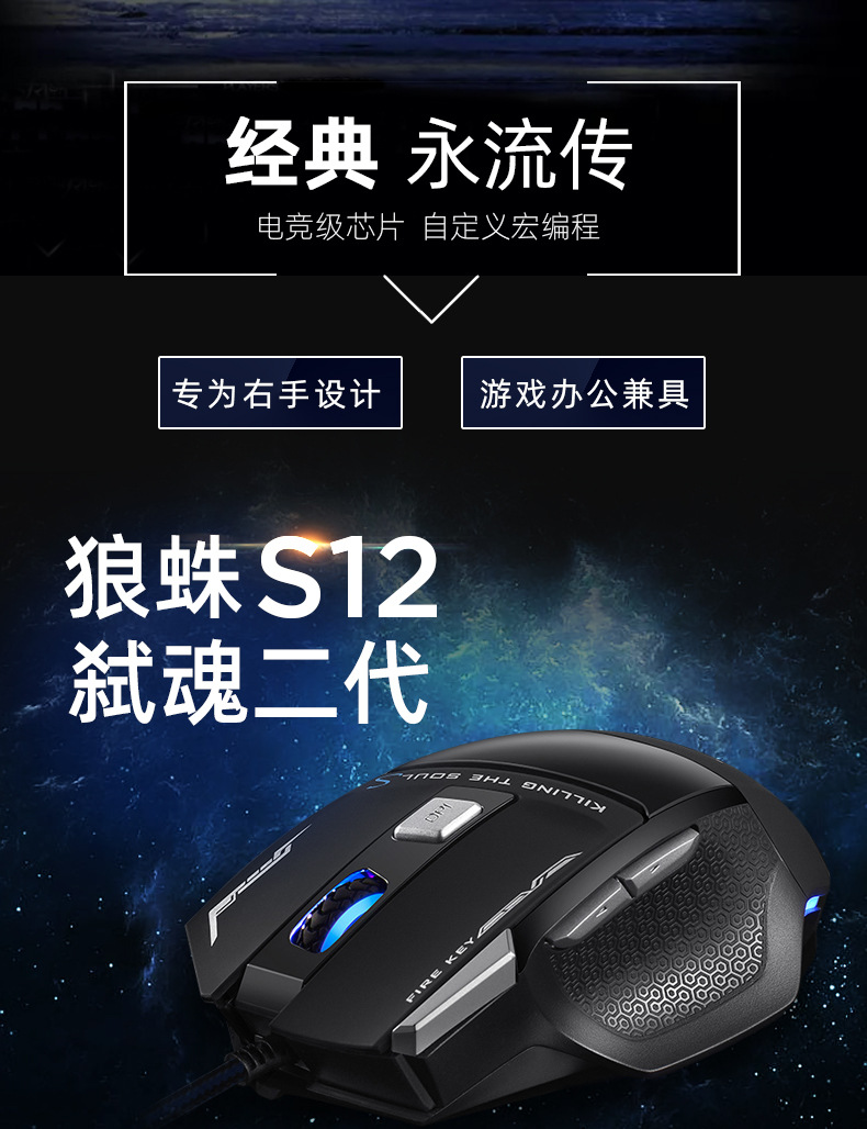 狼蛛S12弒魂有线游戏鼠标宏编程有线电竞机械吃鸡笔记本电脑鼠标