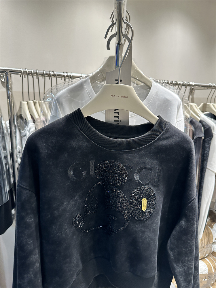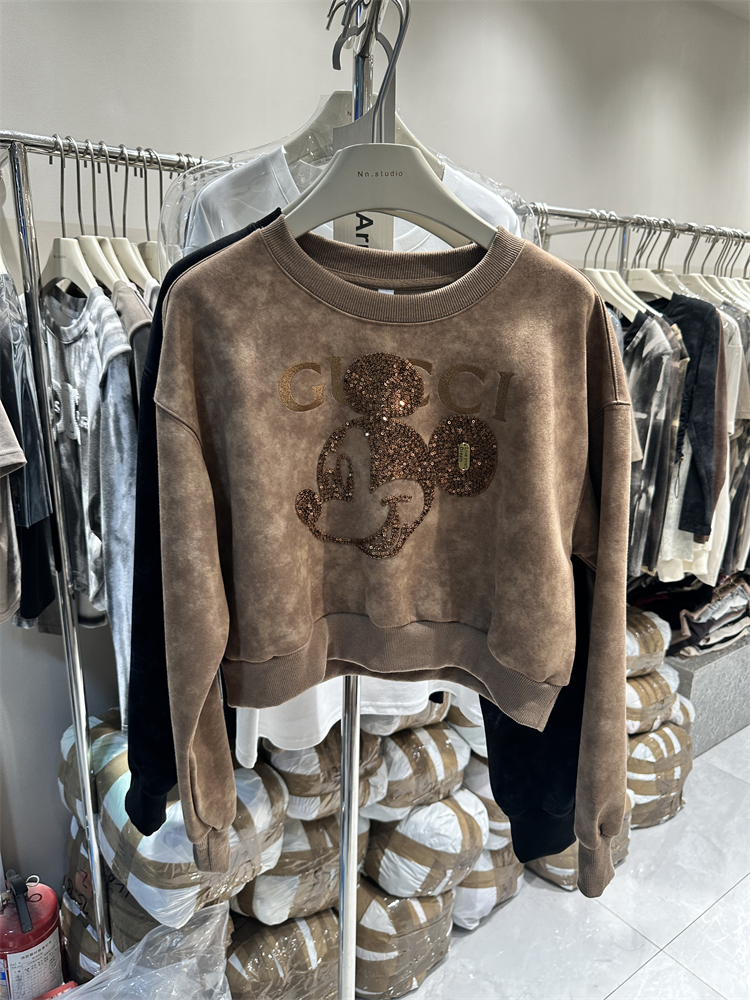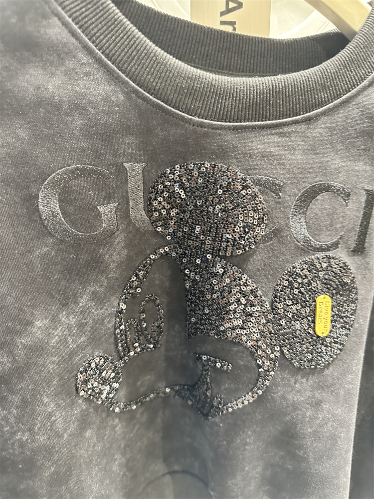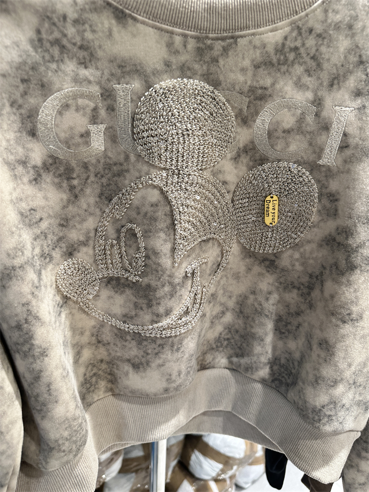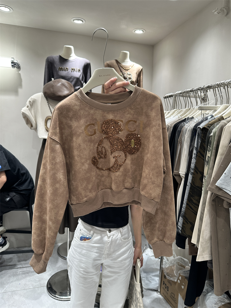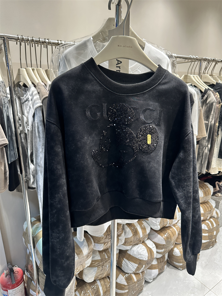 2023秋季新款女裝刺繡米奇重工設計感長袖套頭薄寬鬆短版衛衣外套