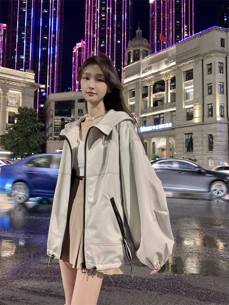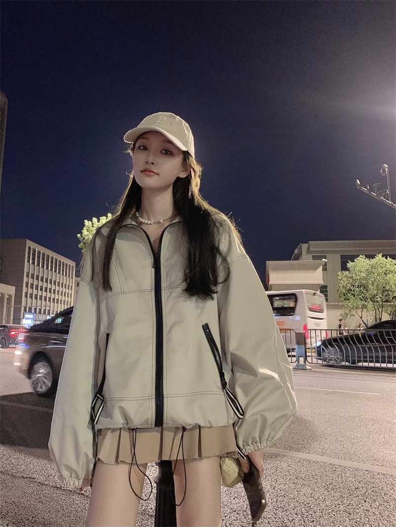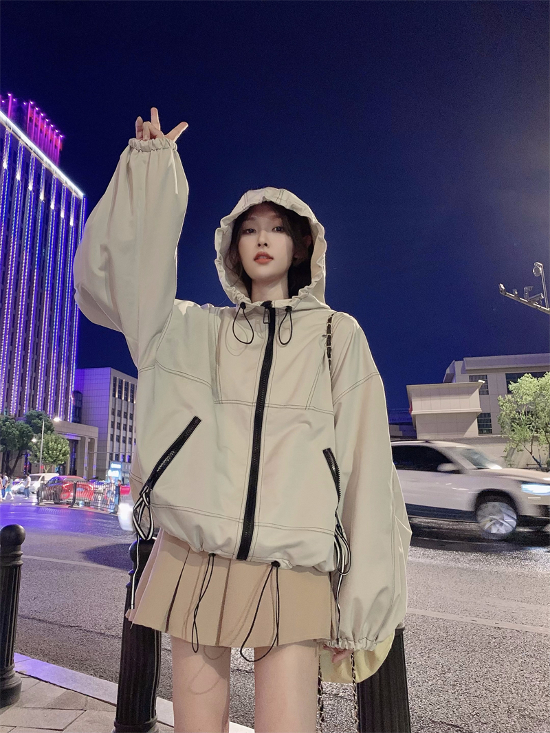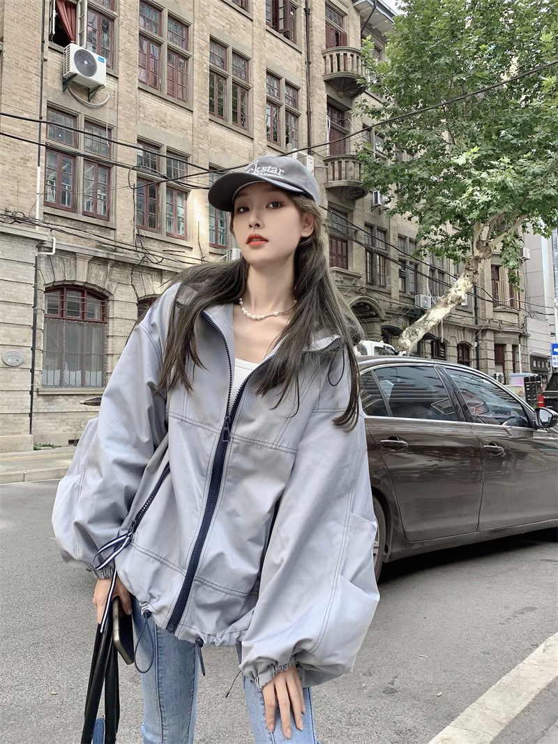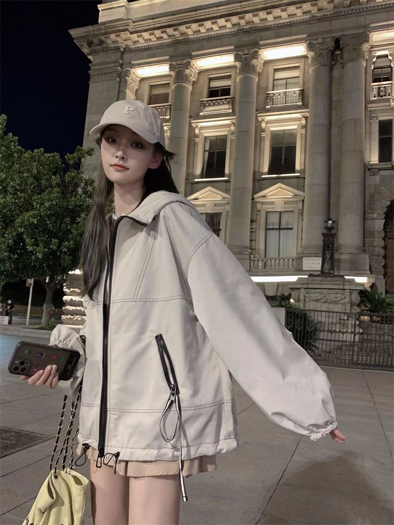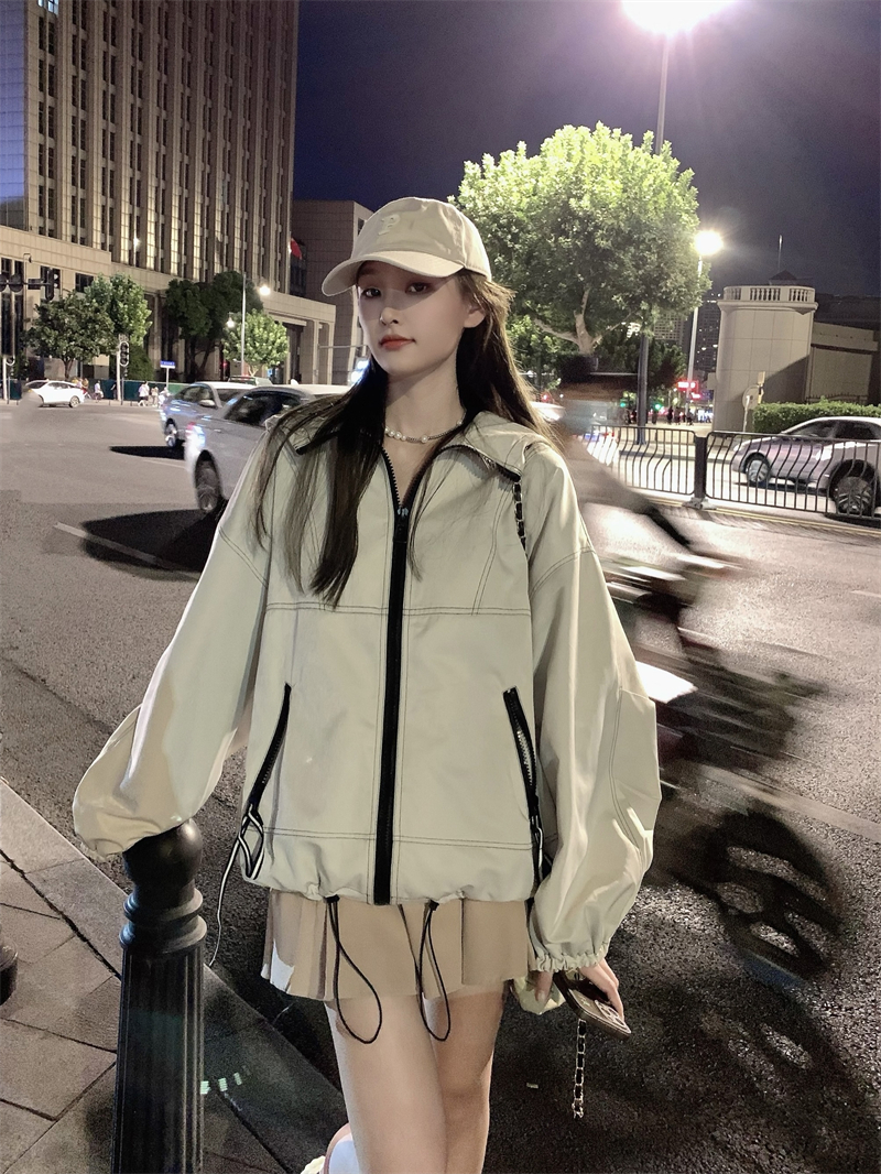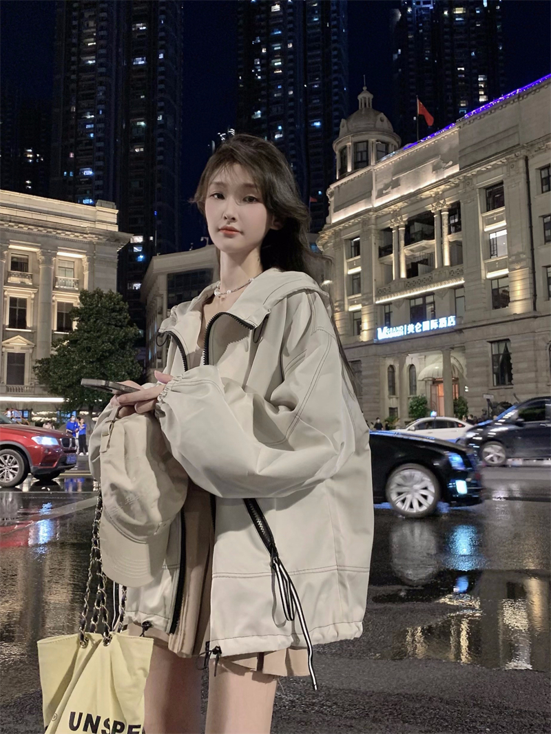 vintage美式衝鋒衣外套女春秋薄款風衣夾克2023新款爆款百搭上衣
