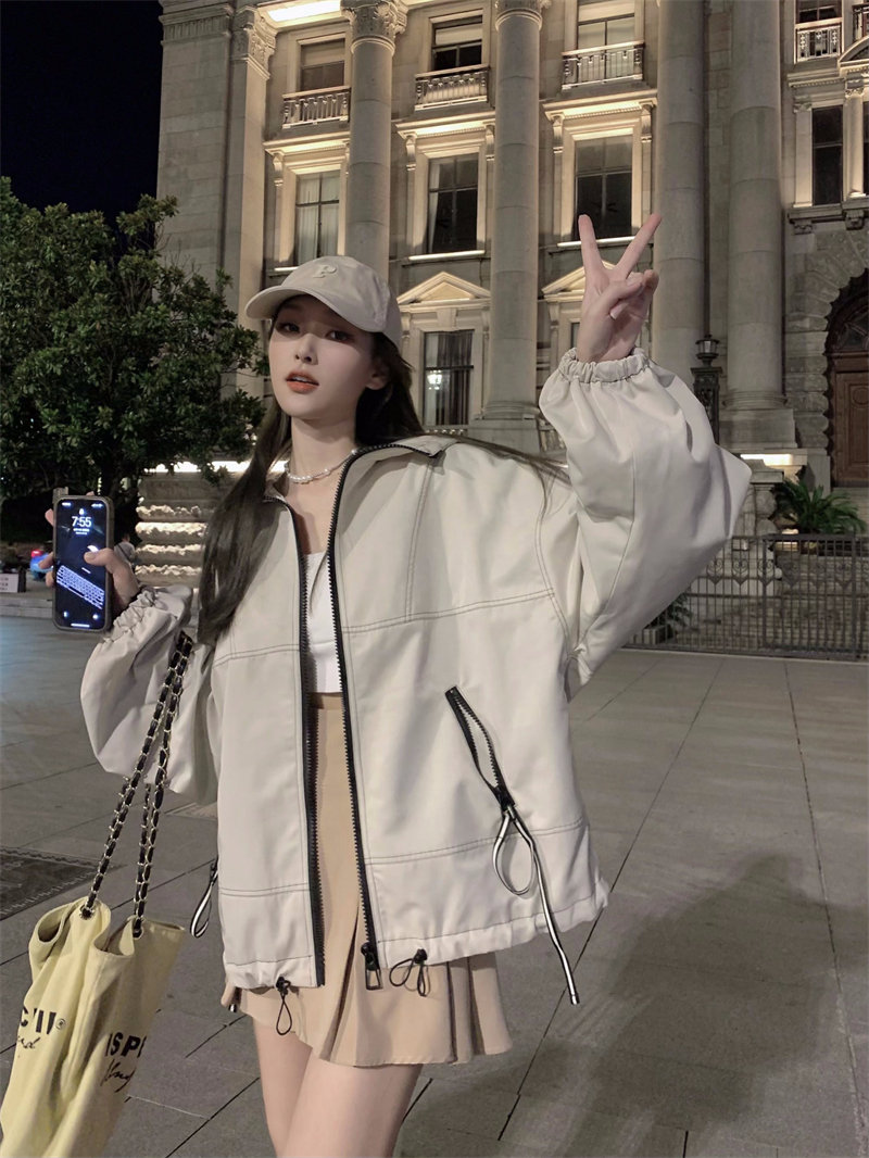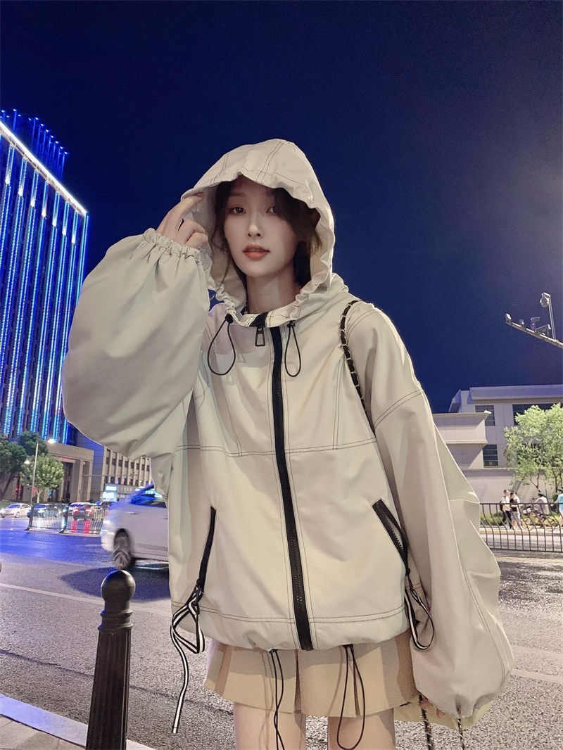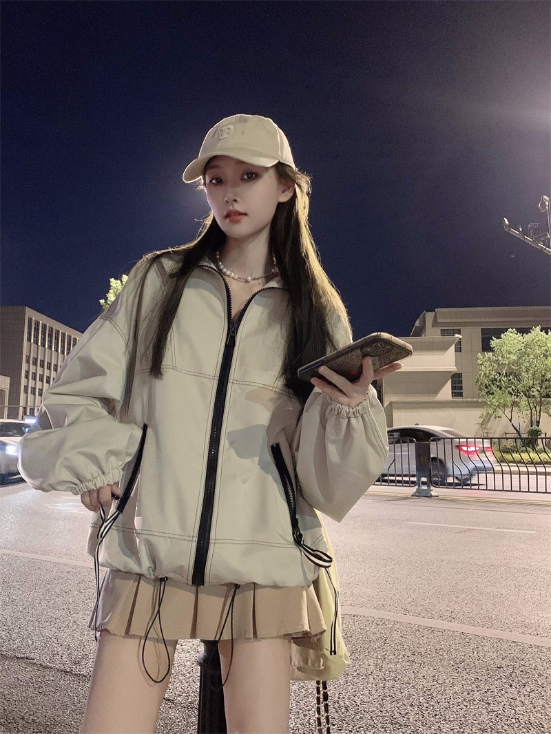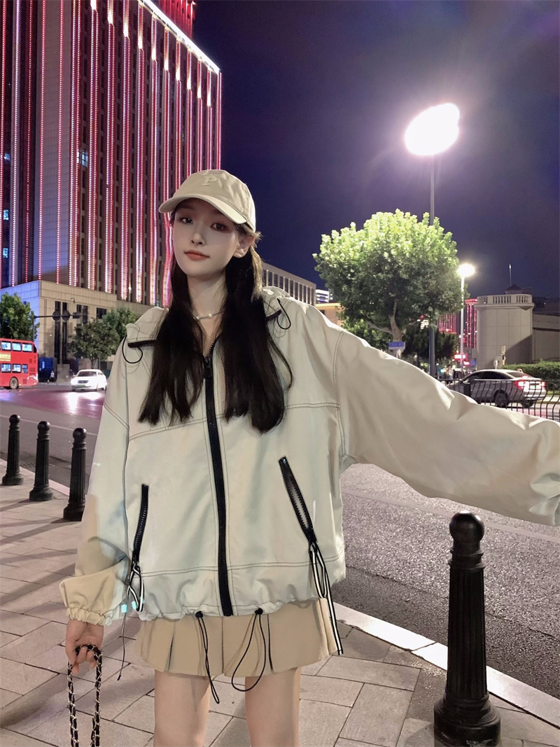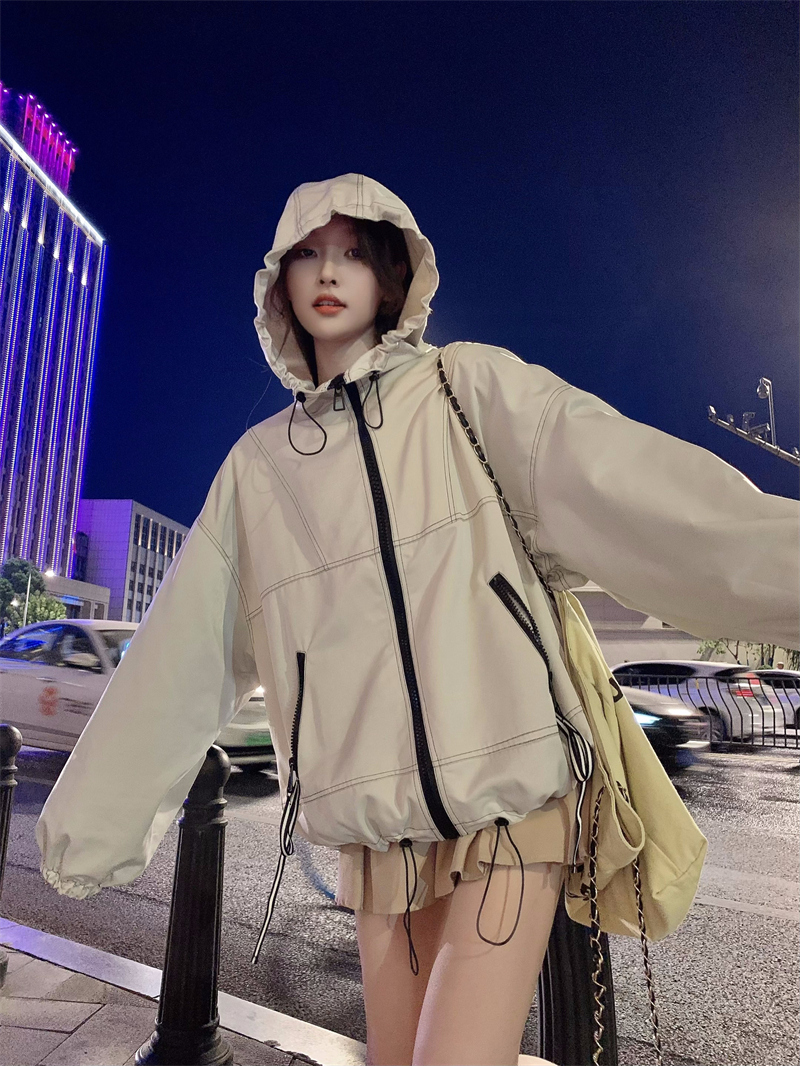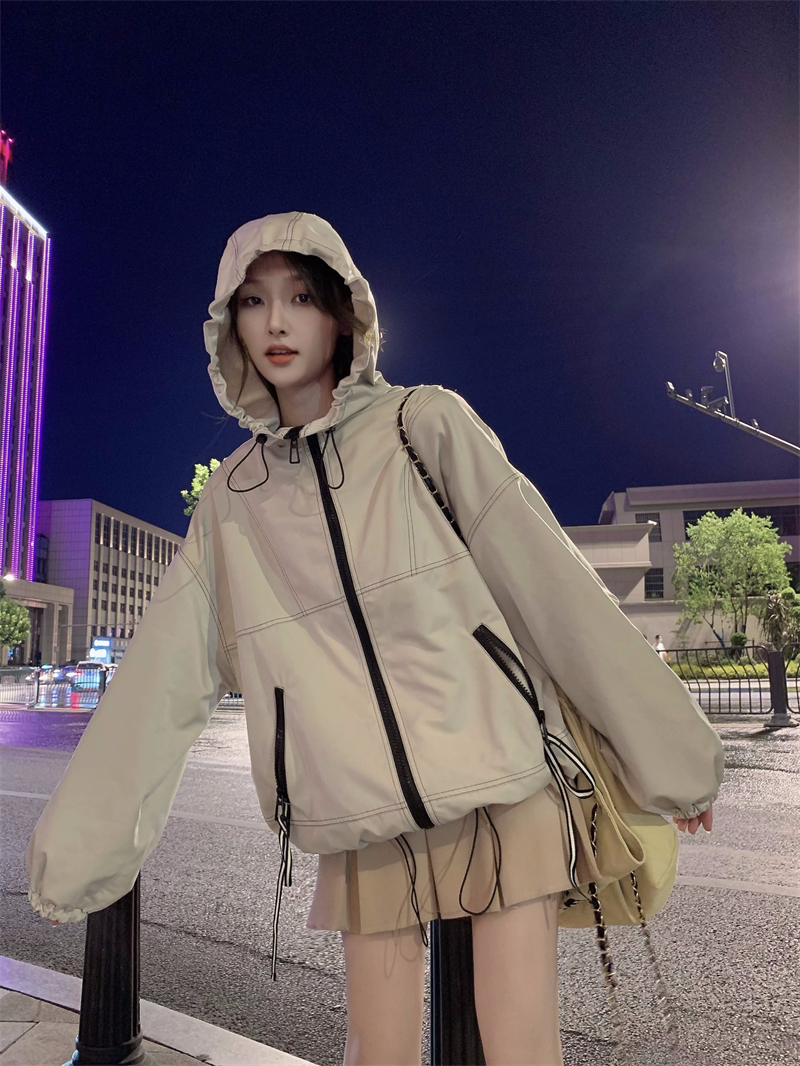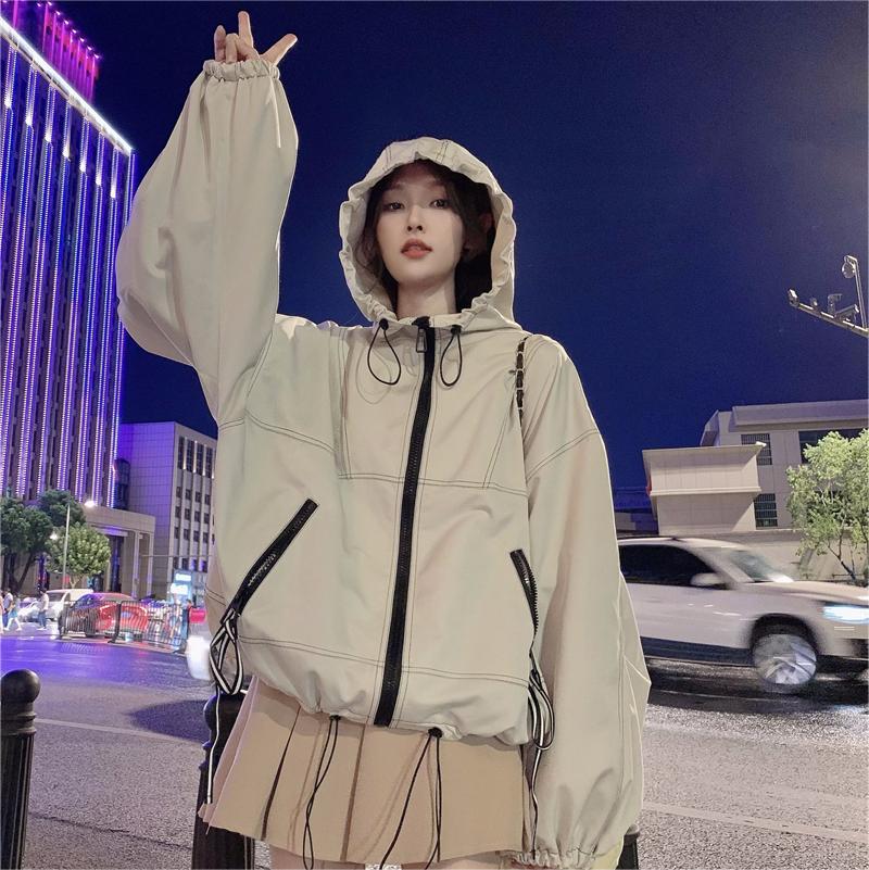 vintage美式衝鋒衣外套女春秋薄款風衣夾克2023新款爆款百搭上衣