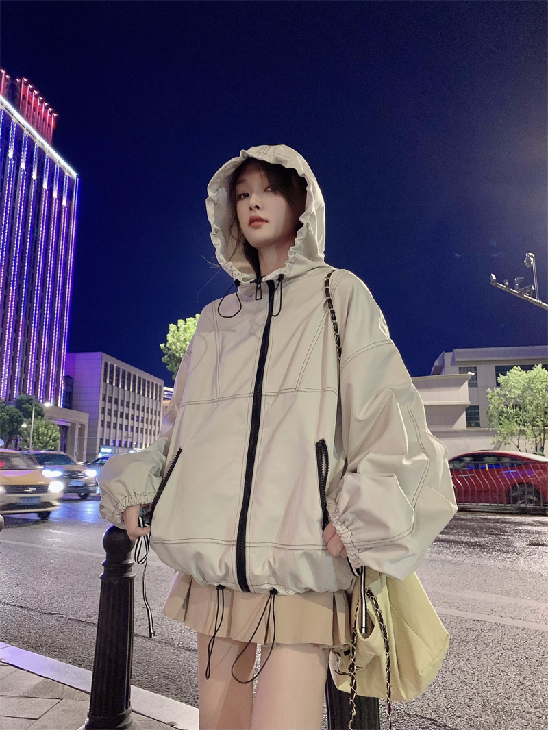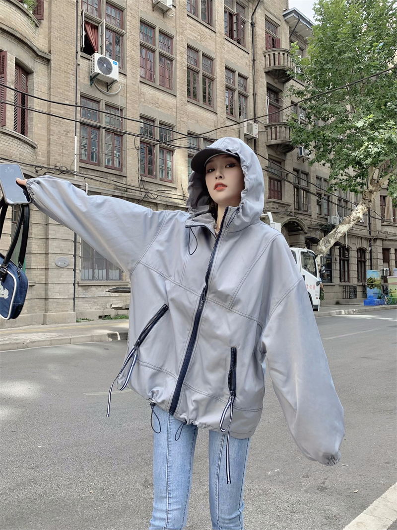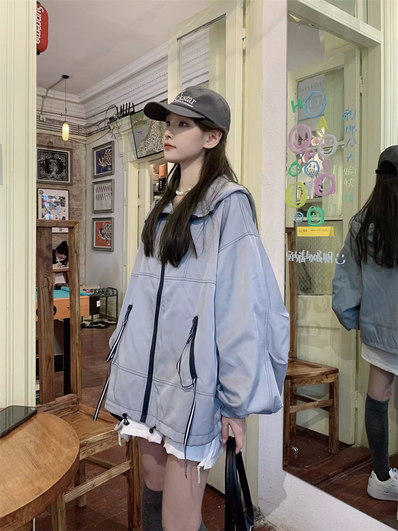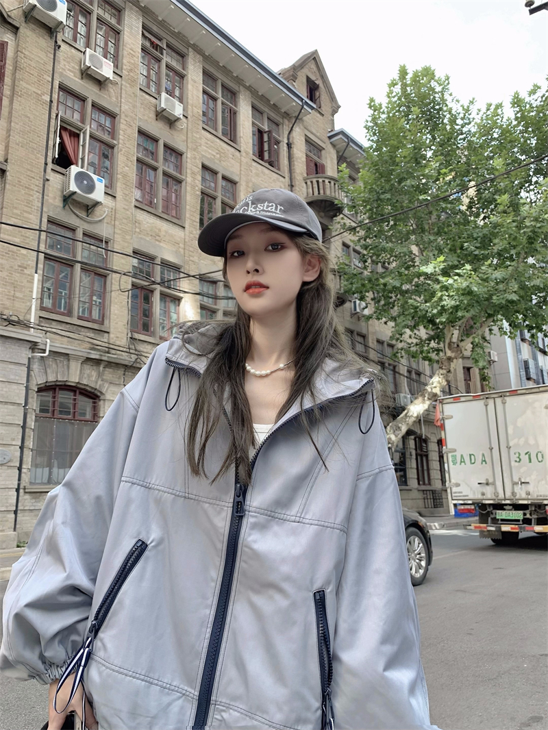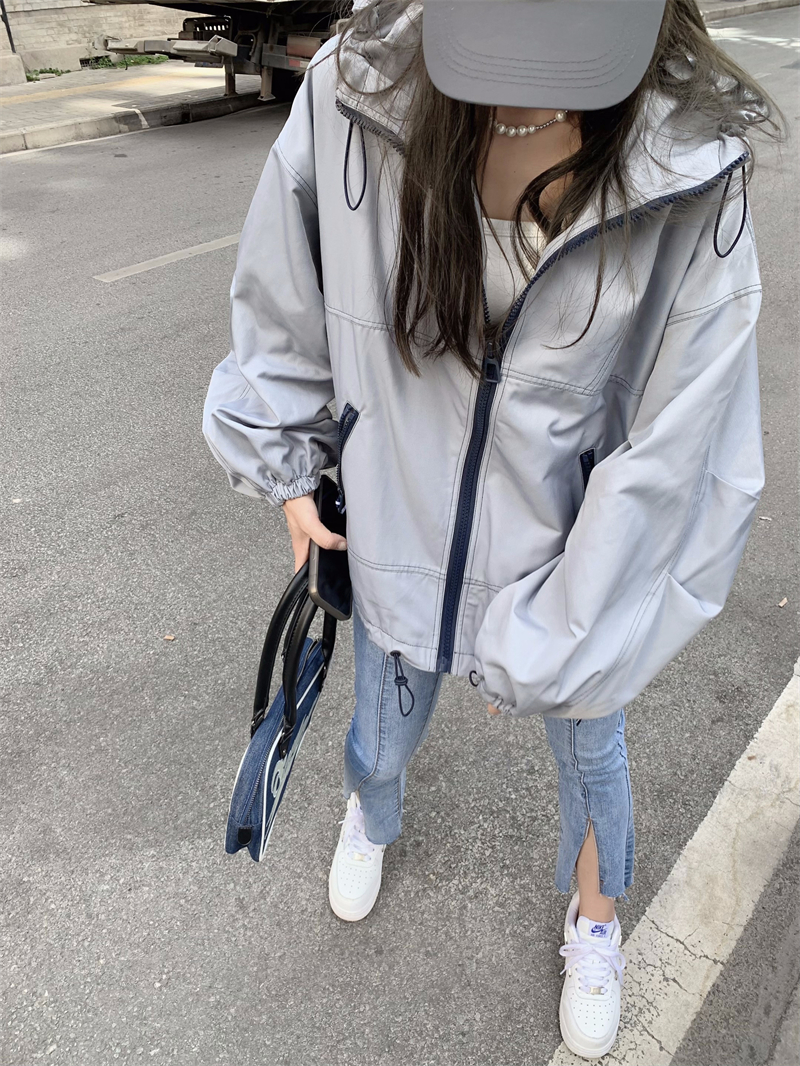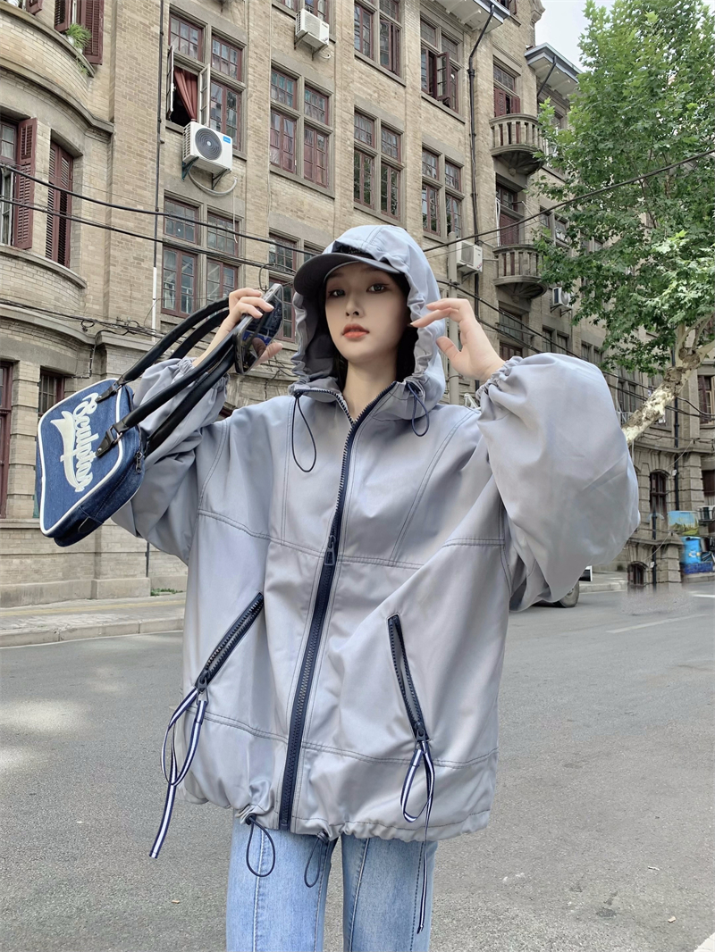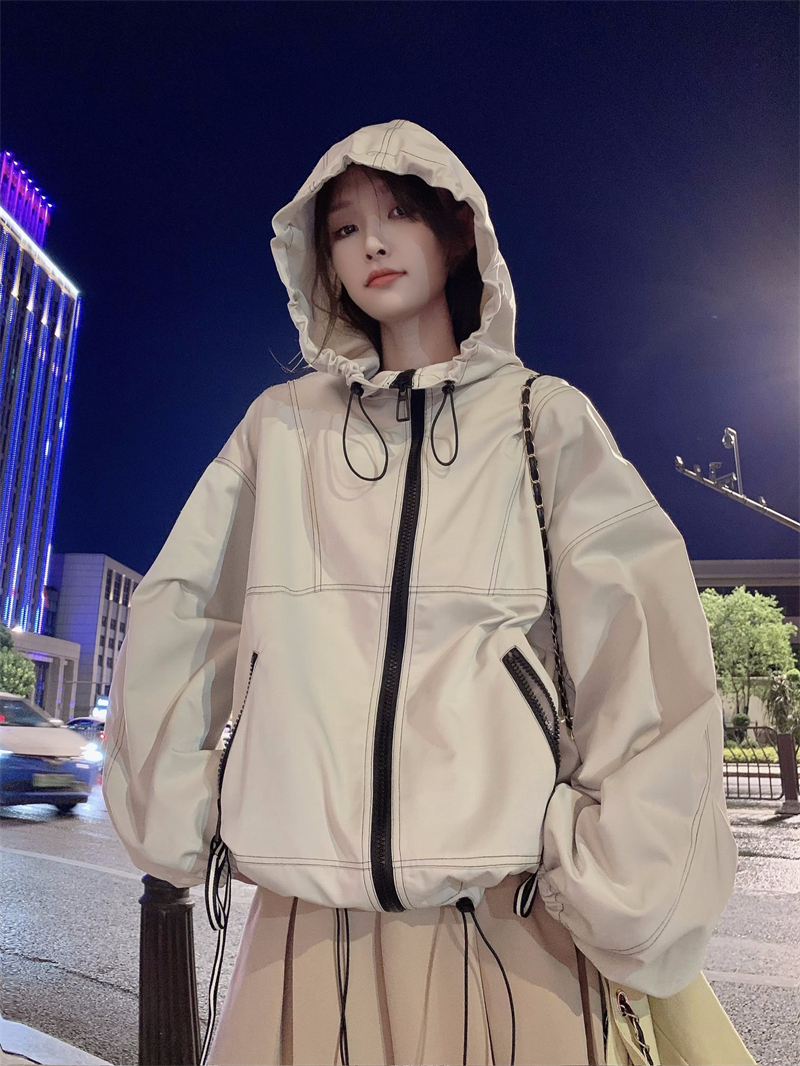 vintage美式衝鋒衣外套女春秋薄款風衣夾克2023新款爆款百搭上衣