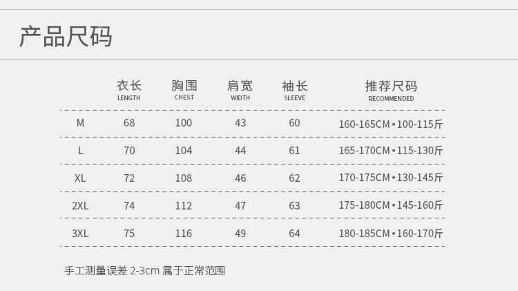 尺碼 M,L,XL,2XL,3XL,尺碼偏小,建議根據推薦尺碼下單