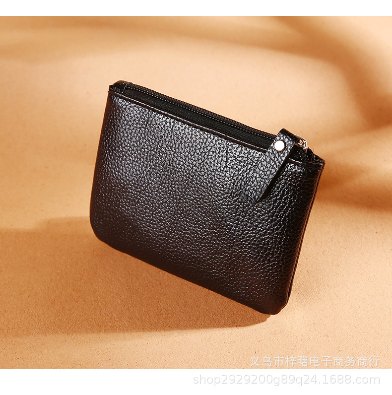 方形小零钱包男女通用新款荔枝纹拉链硬币收纳袋纯色PU软皮卡片包