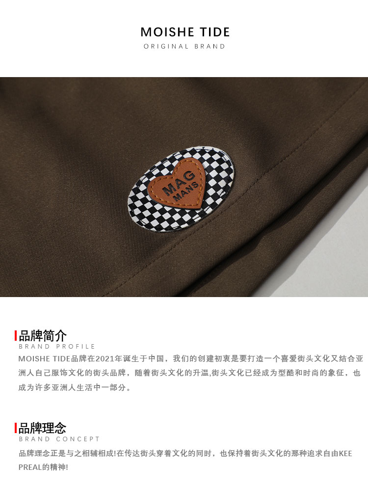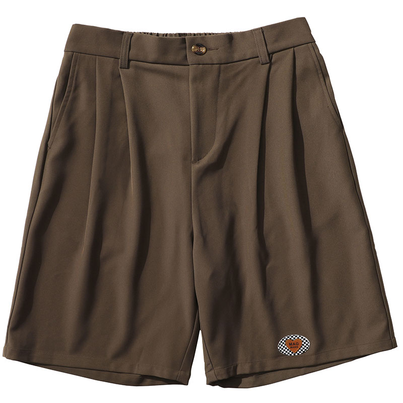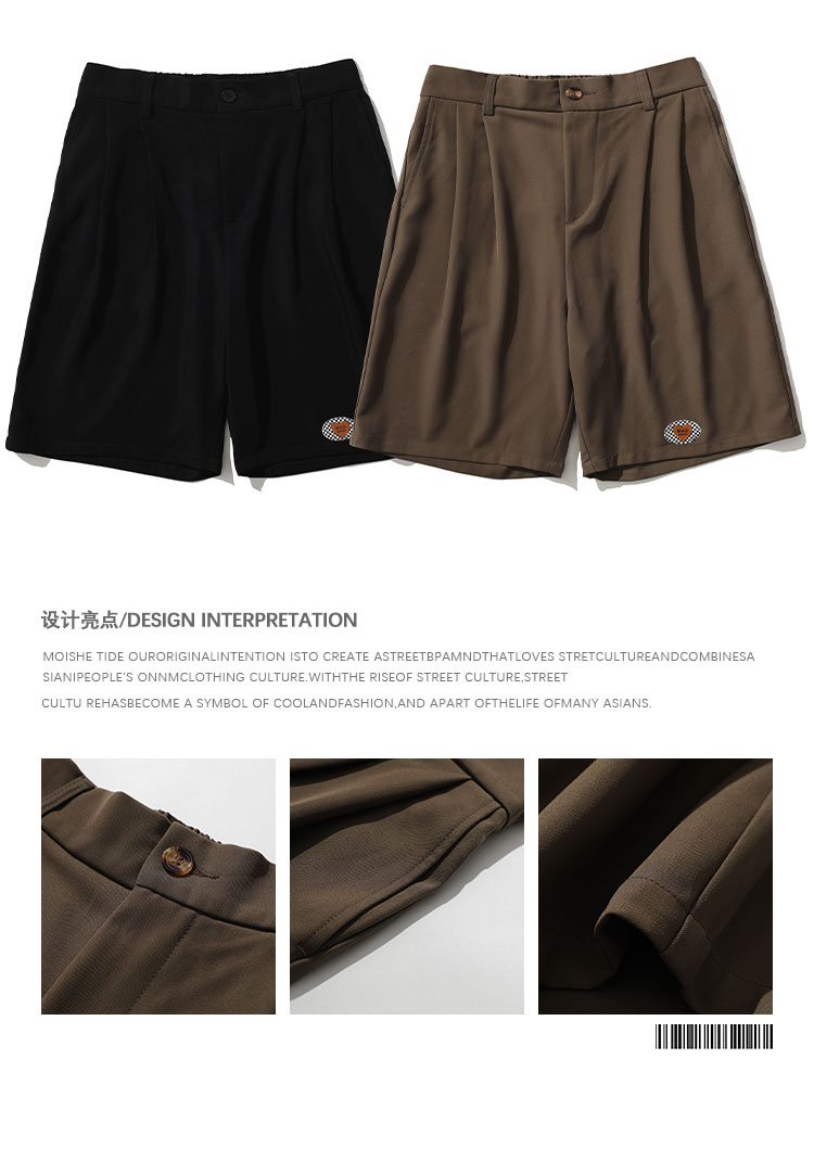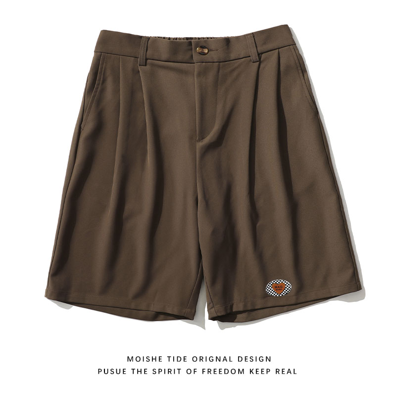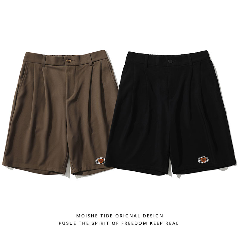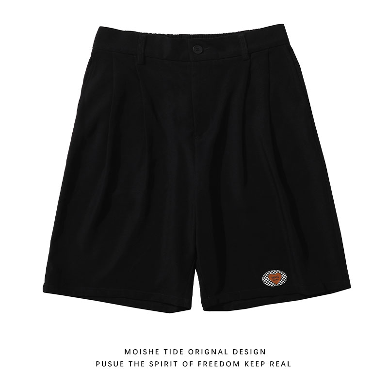 MOISHE TIDE潮牌復古繡標休閒闊腿西裝短褲男寬鬆垂感直筒五分褲
