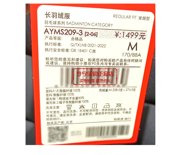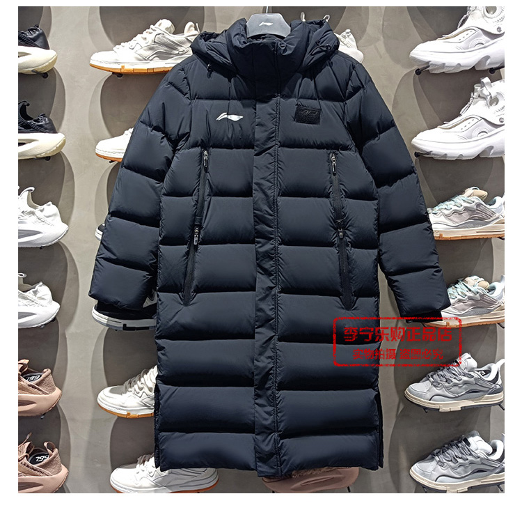 李寧長版羽絨服男女2022冬季新款鴨絨保暖連帽過膝外套AYMS209-3
