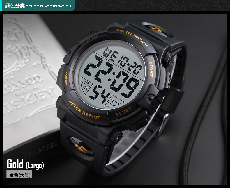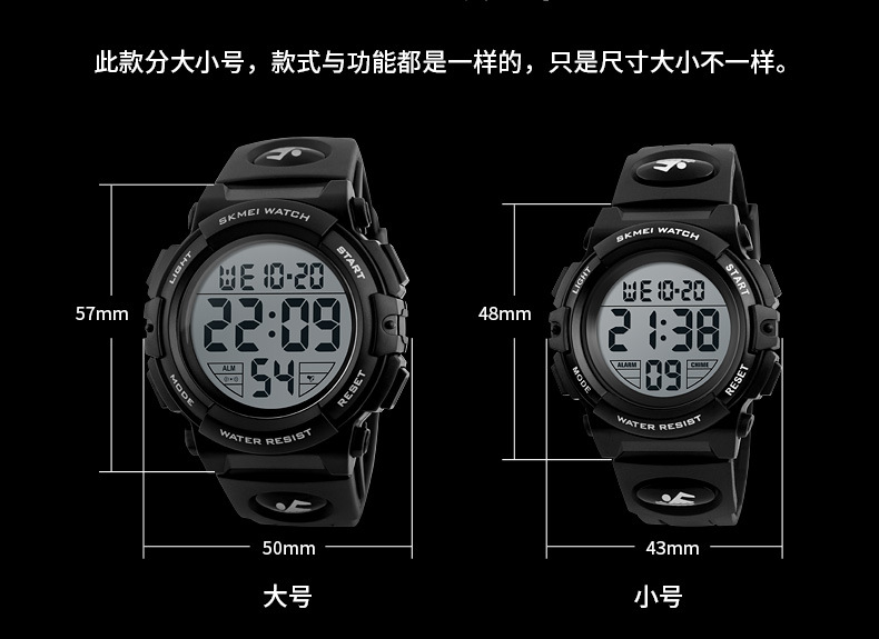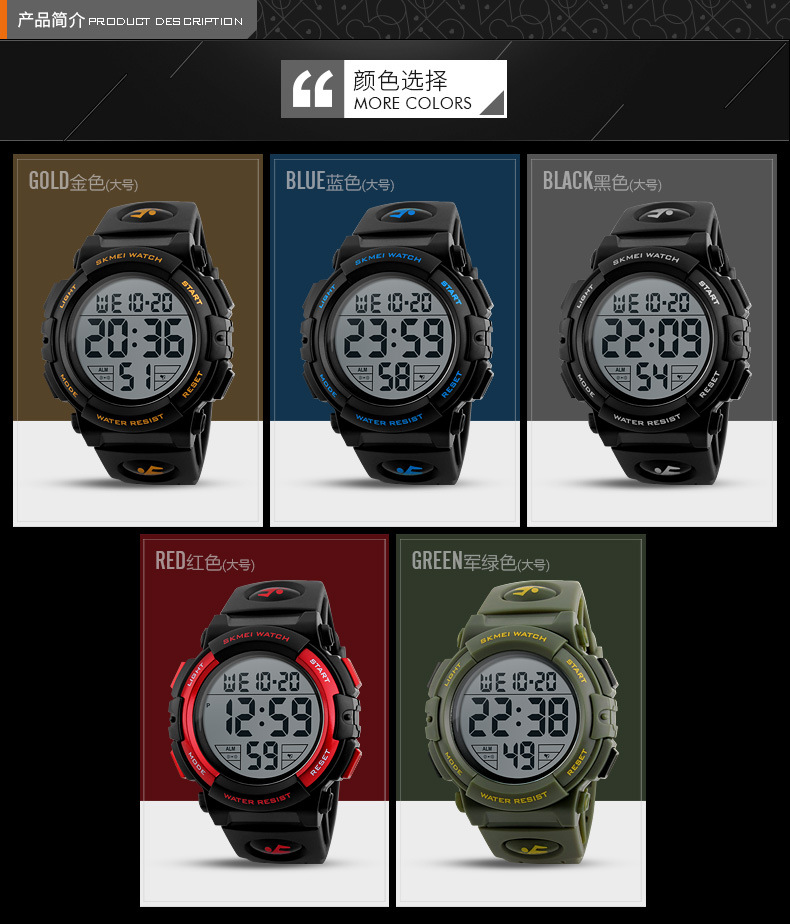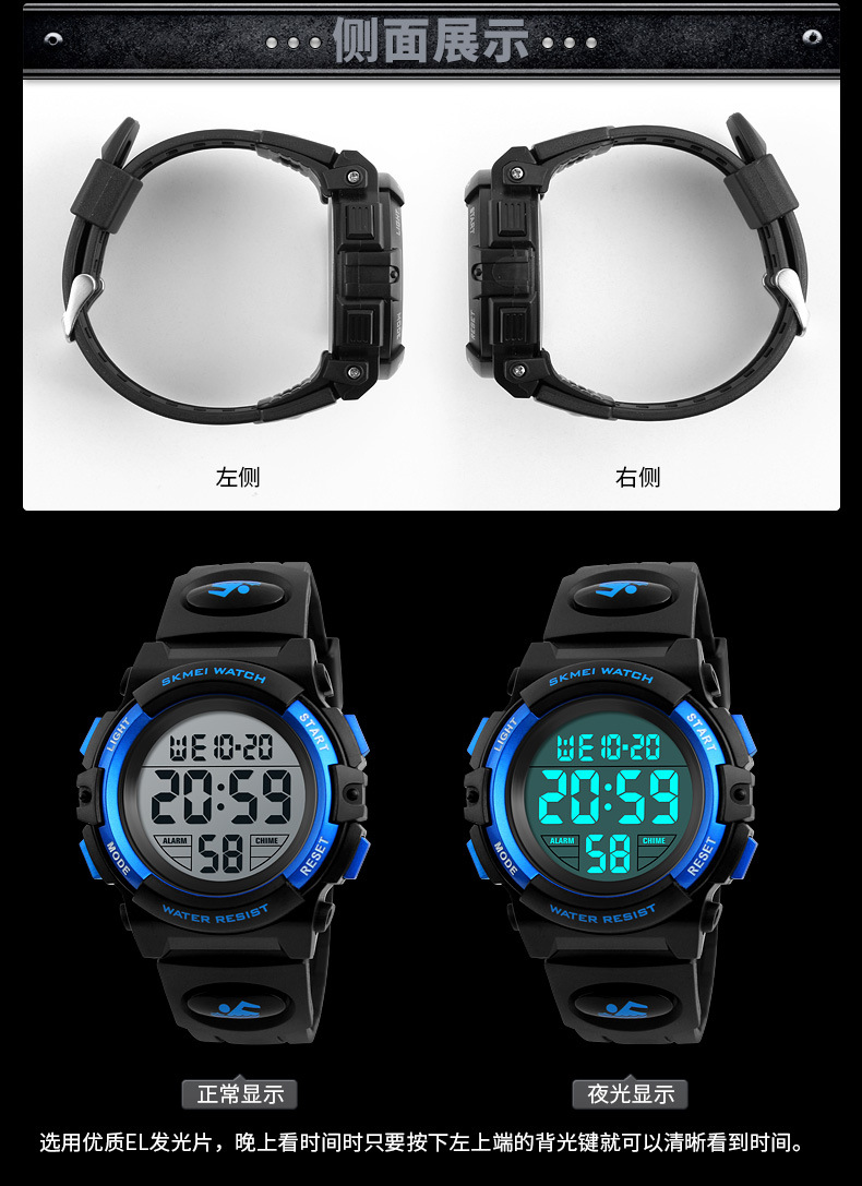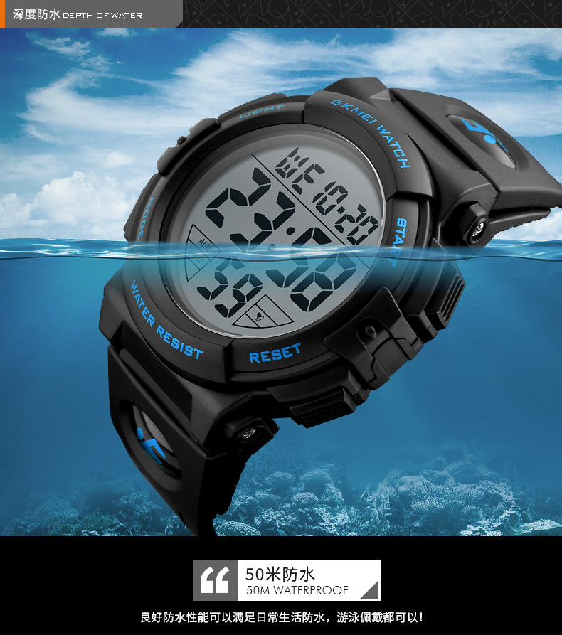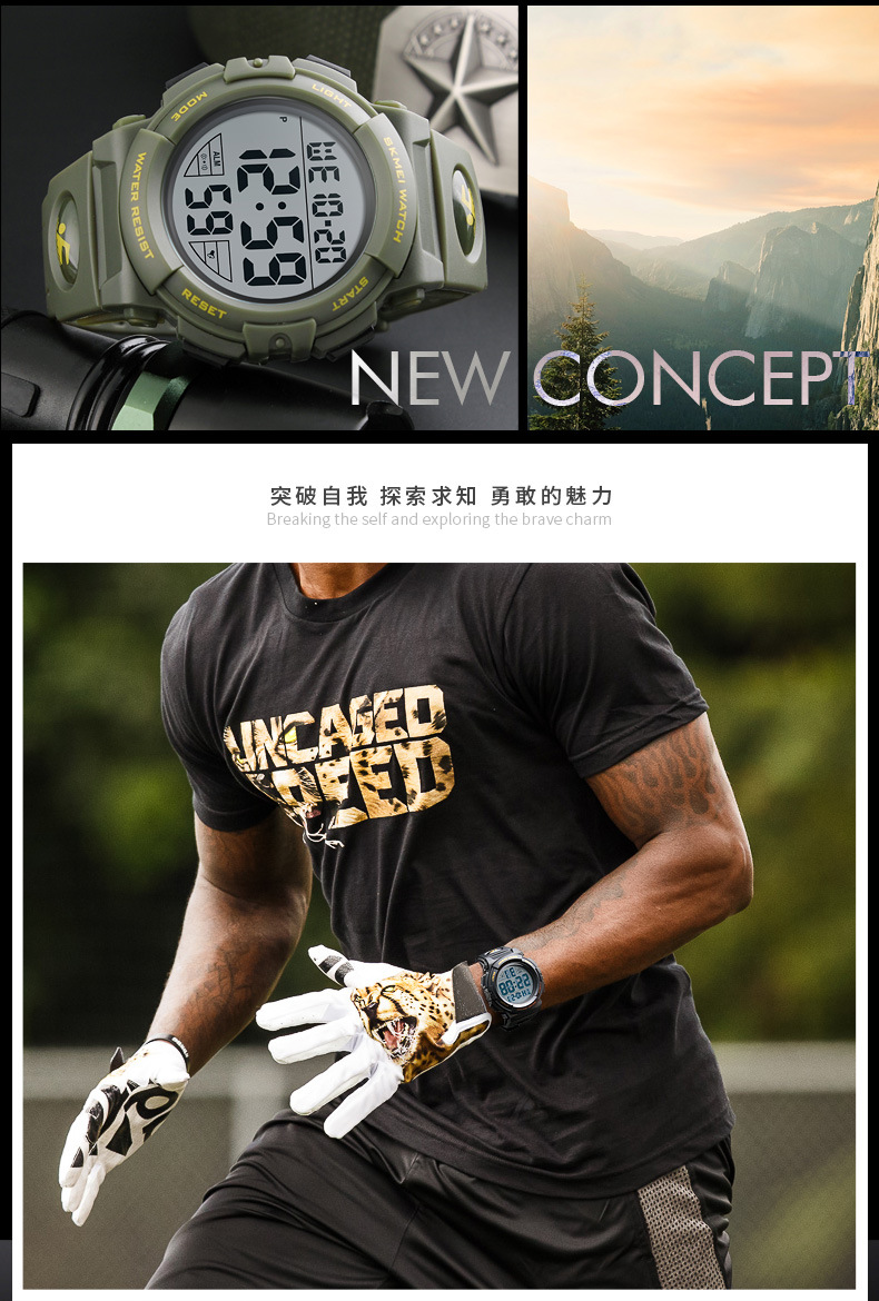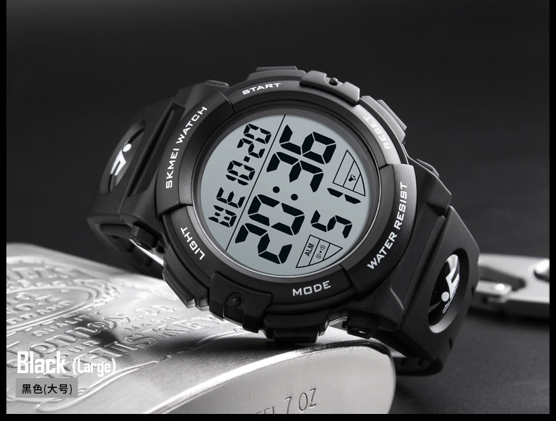 时刻美男士大表盘防水手表多功能电子手表户外运动男学生潮流腕表
