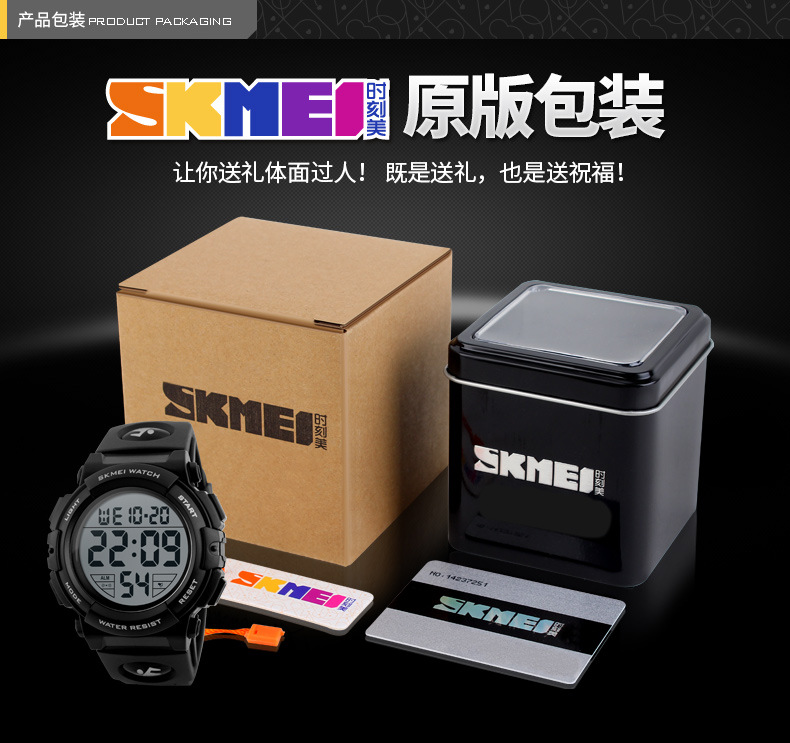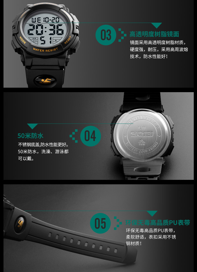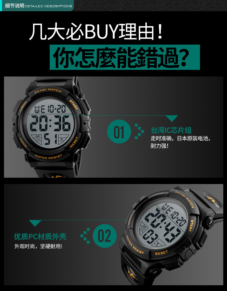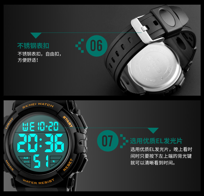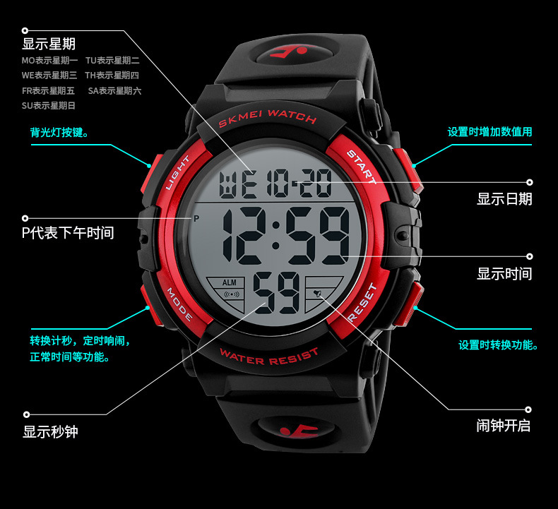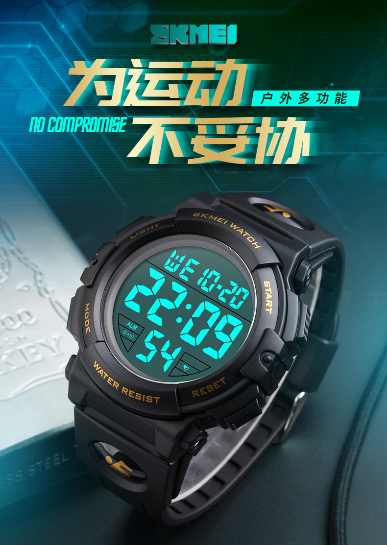 时刻美男士大表盘防水手表多功能电子手表户外运动男学生潮流腕表