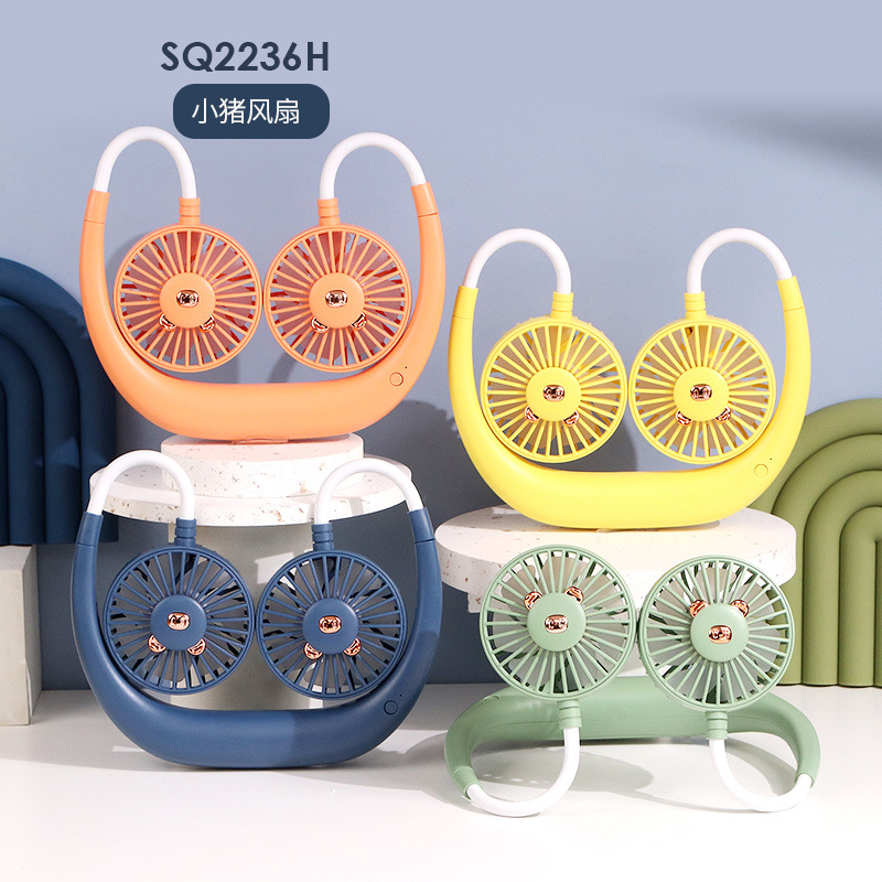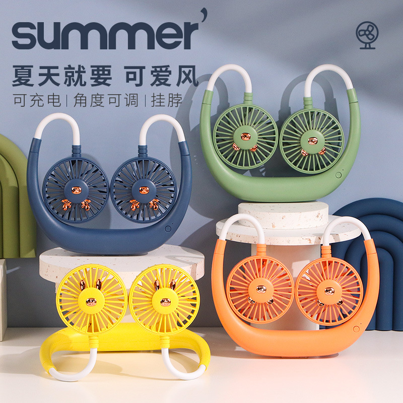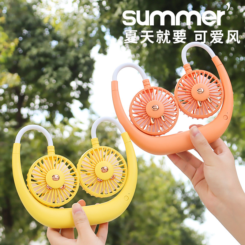 点滴风扇 卡通懒人挂脖户外运动USB充电小风扇 办公学习居家风扇