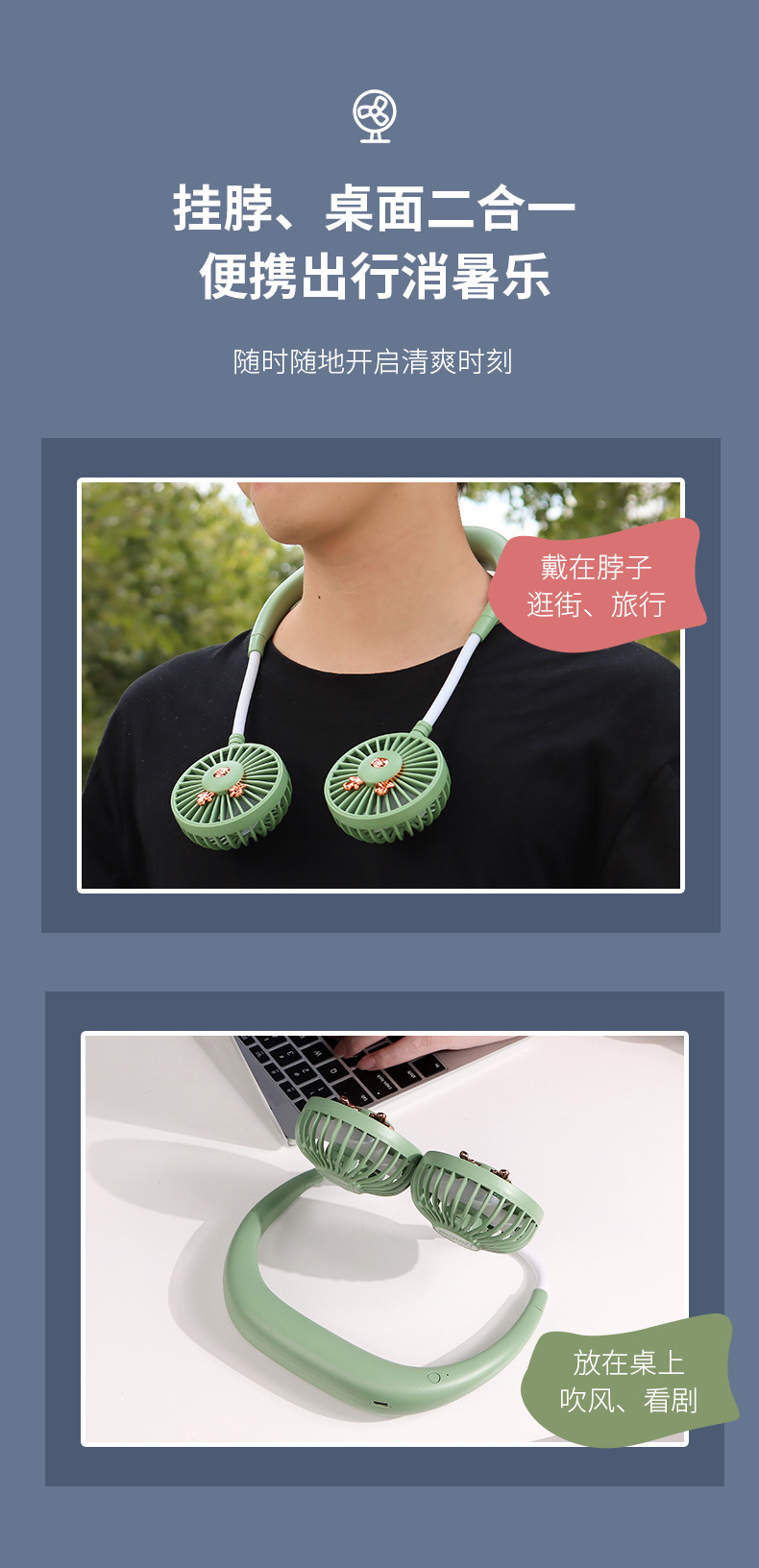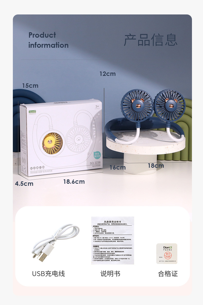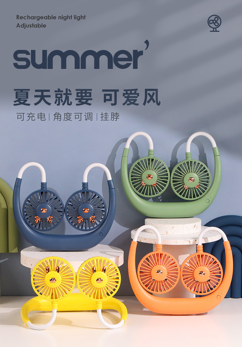 【产品名称】懒人挂脖三档充电风扇