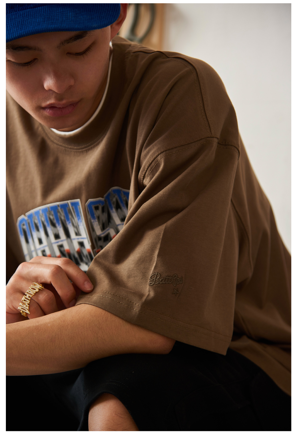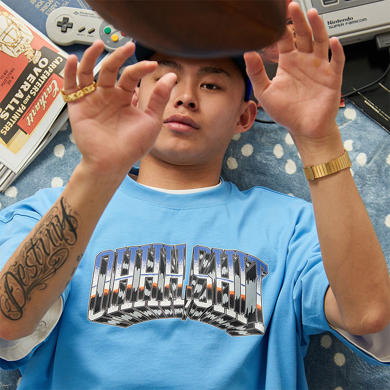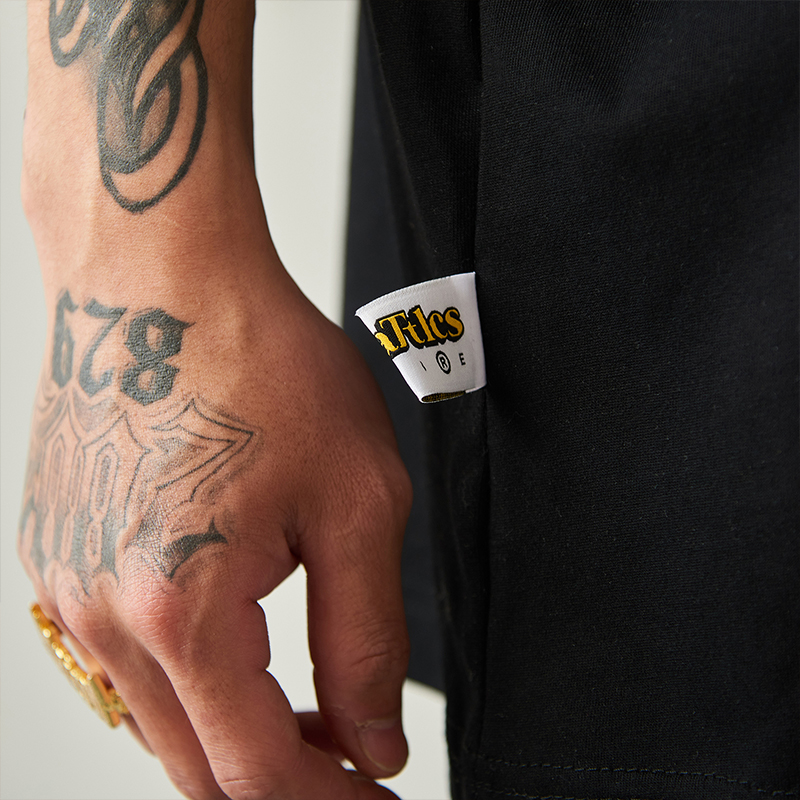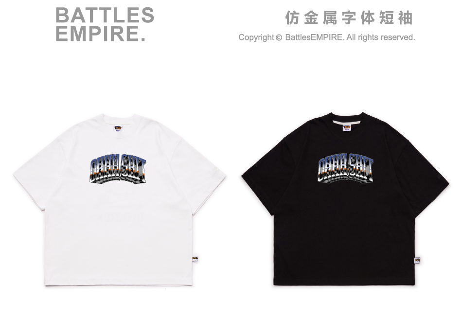 Battles 該死的金屬字體印花雙紗純棉美式短袖T恤圓領半袖寬鬆