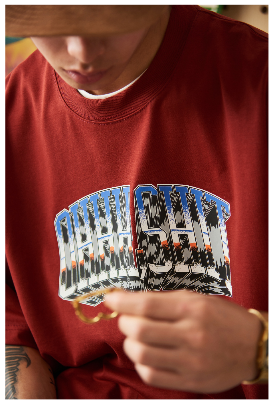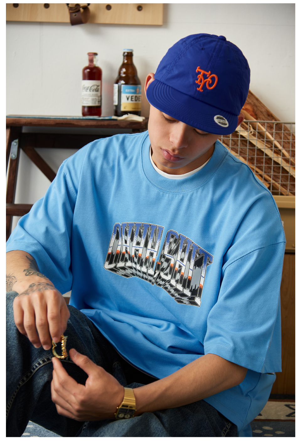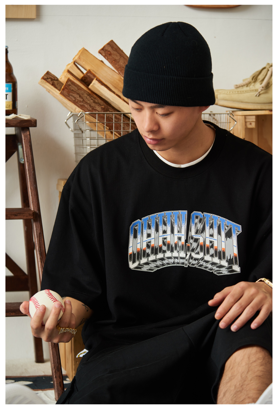 Battles 該死的金屬字體印花雙紗純棉美式短袖T恤圓領半袖寬鬆