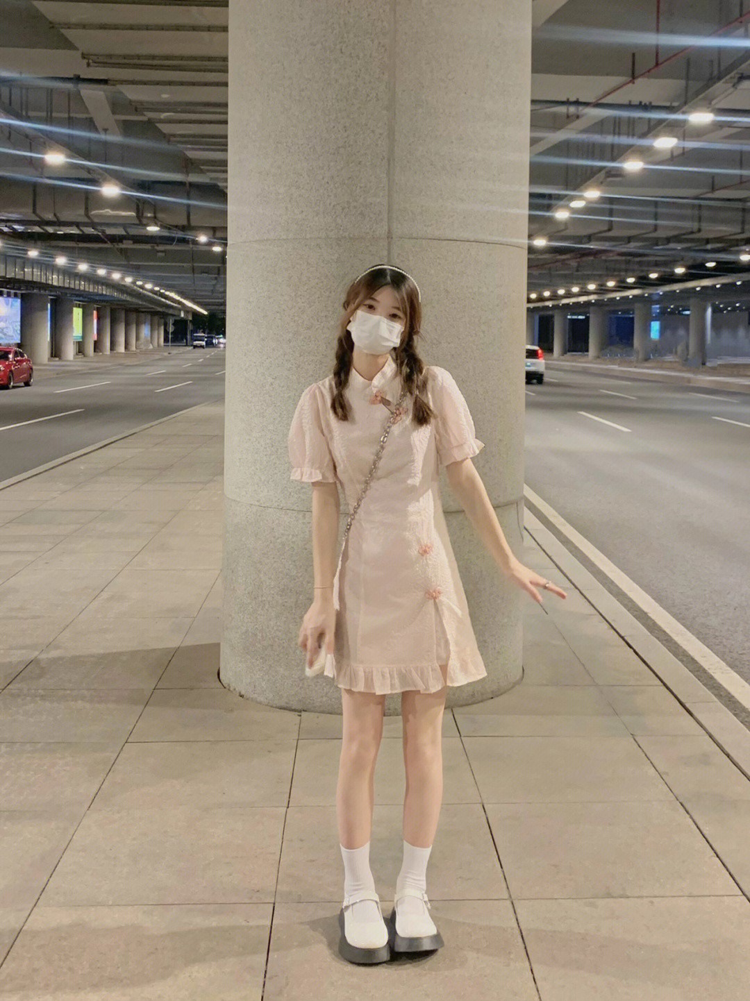 新中式國風粉色超火改良旗袍年輕款洋裝女夏季小個子2023年新款