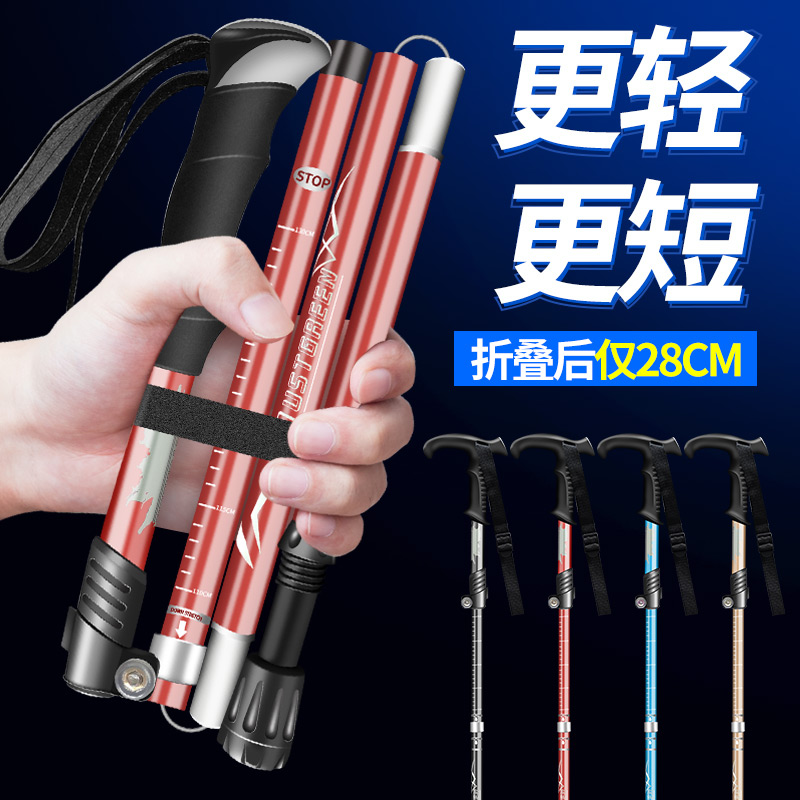 德國超輕摺疊登山杖伸縮手杖男女爬山裝備無碳素柺杖棍戶外多功能