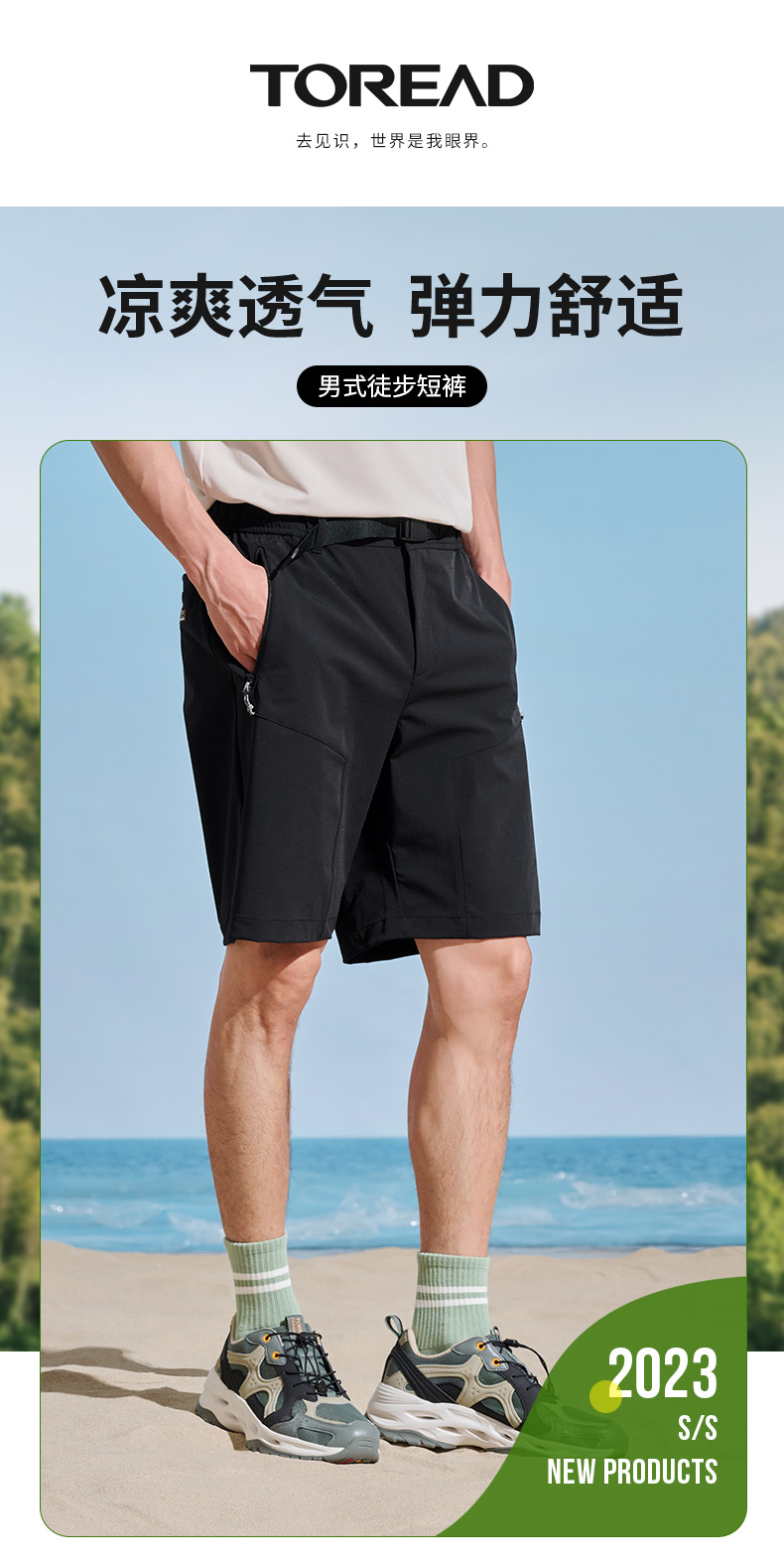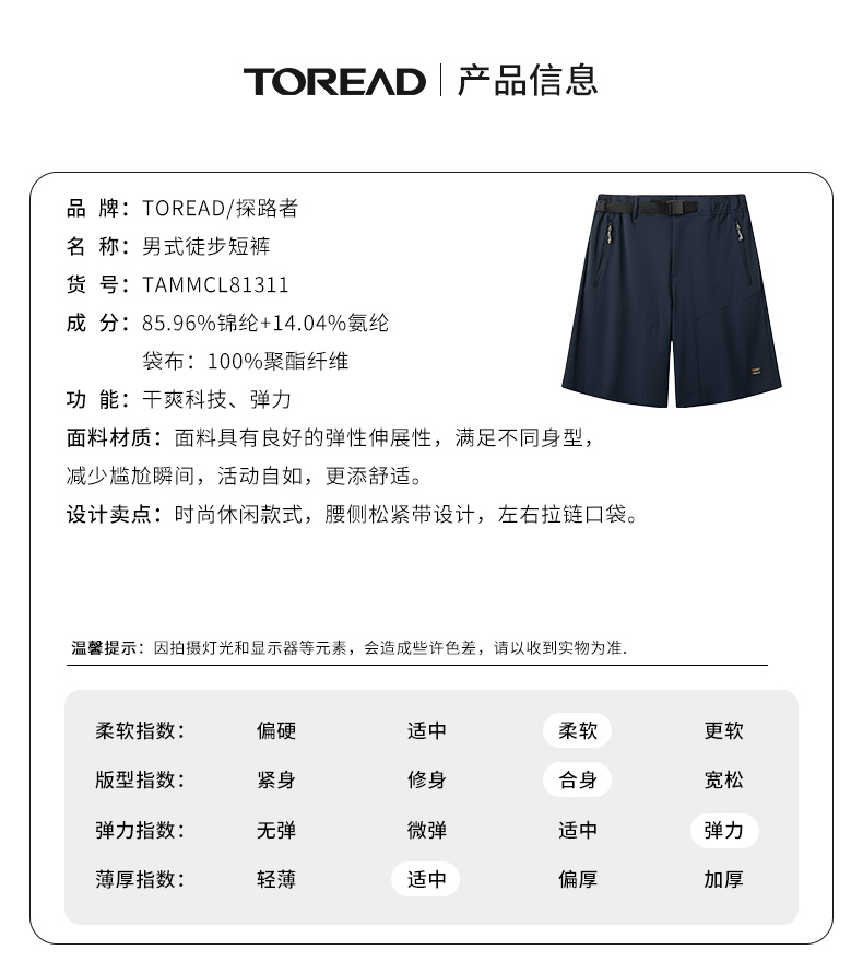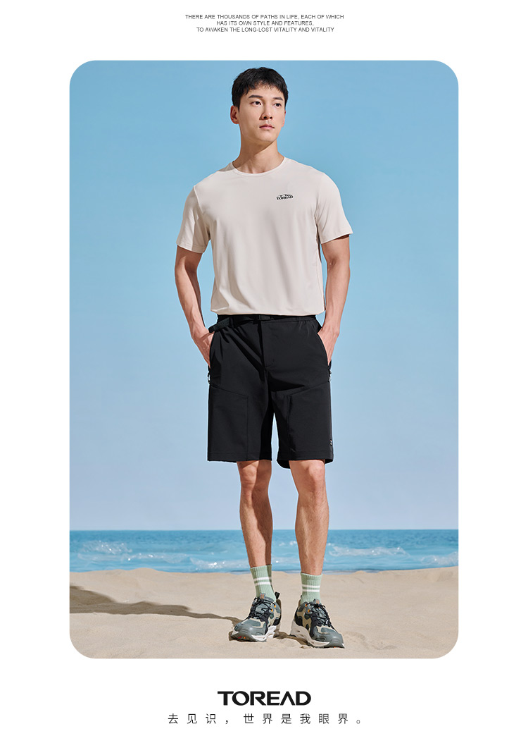 探路者速乾短褲男 夏新款戶外男式透氣彈力五分褲五分褲TAMMCL81311