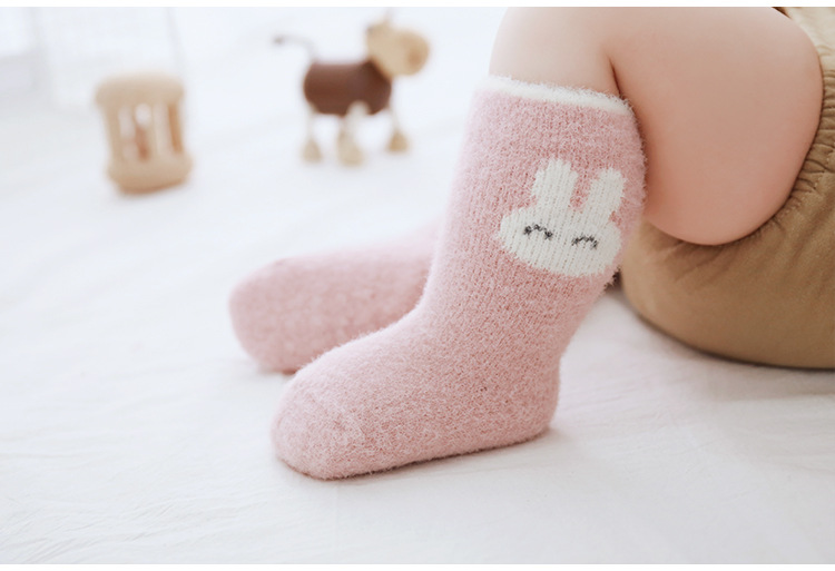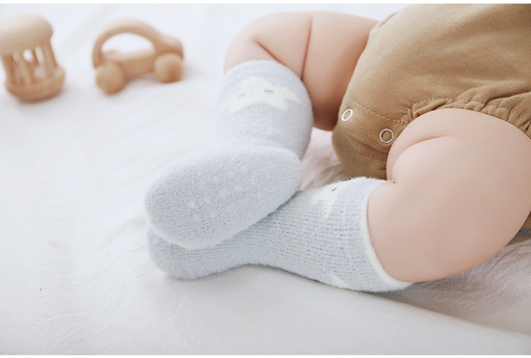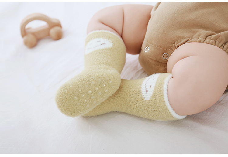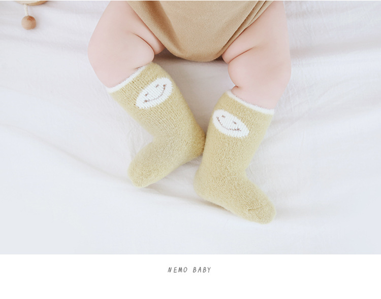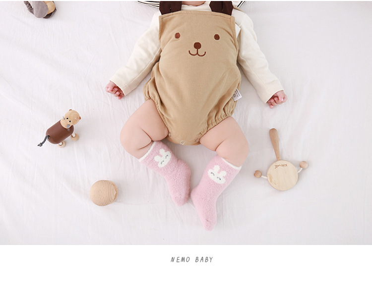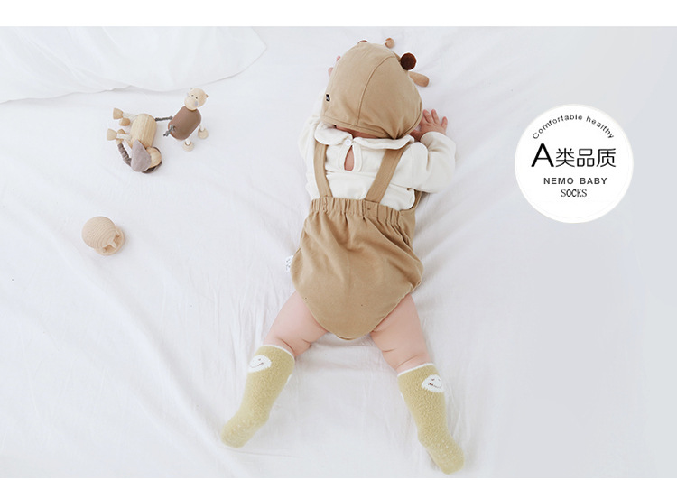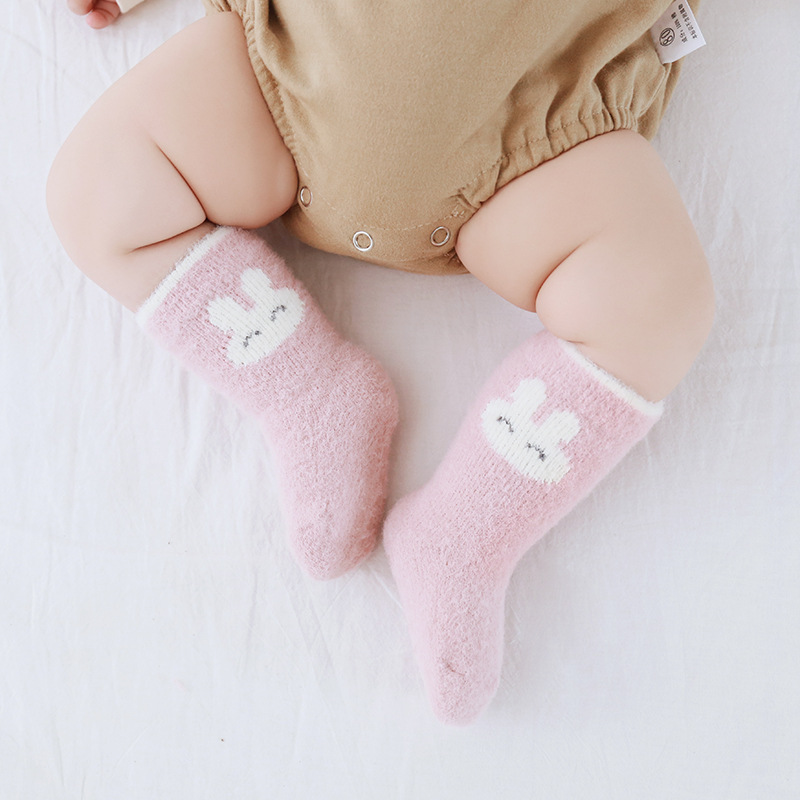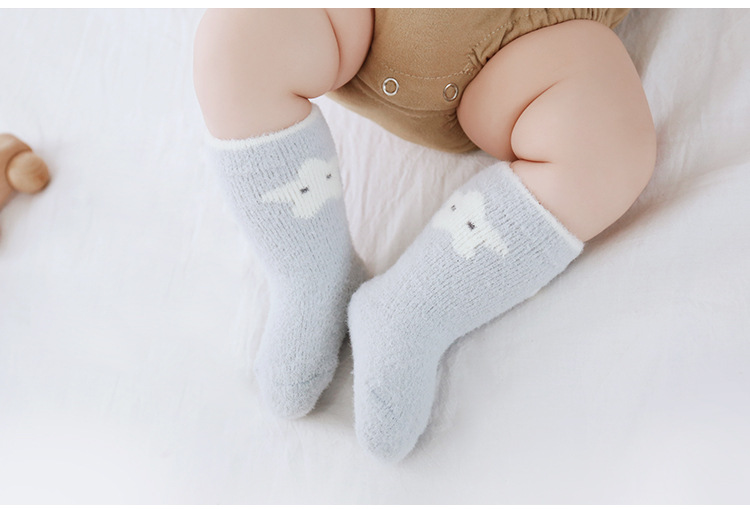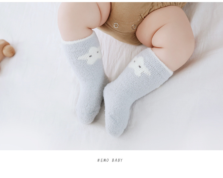 19秋冬新款貂绒纱新生儿加厚婴儿中筒袜子卡通宝宝袜长筒0-1-3岁