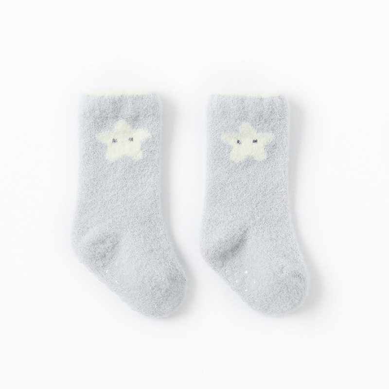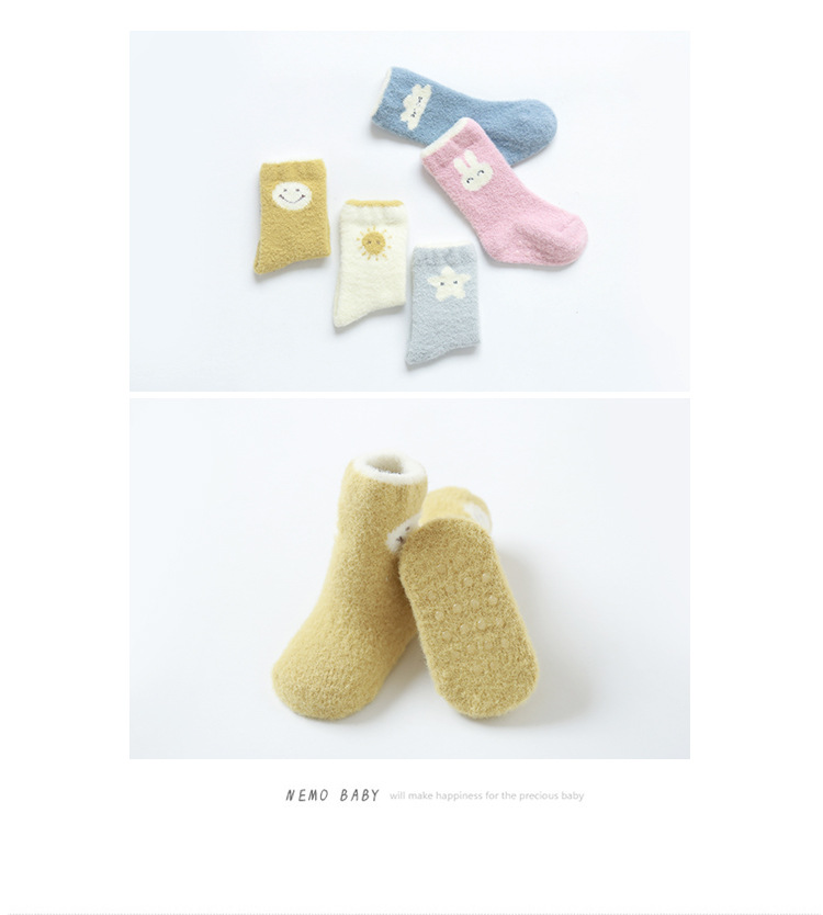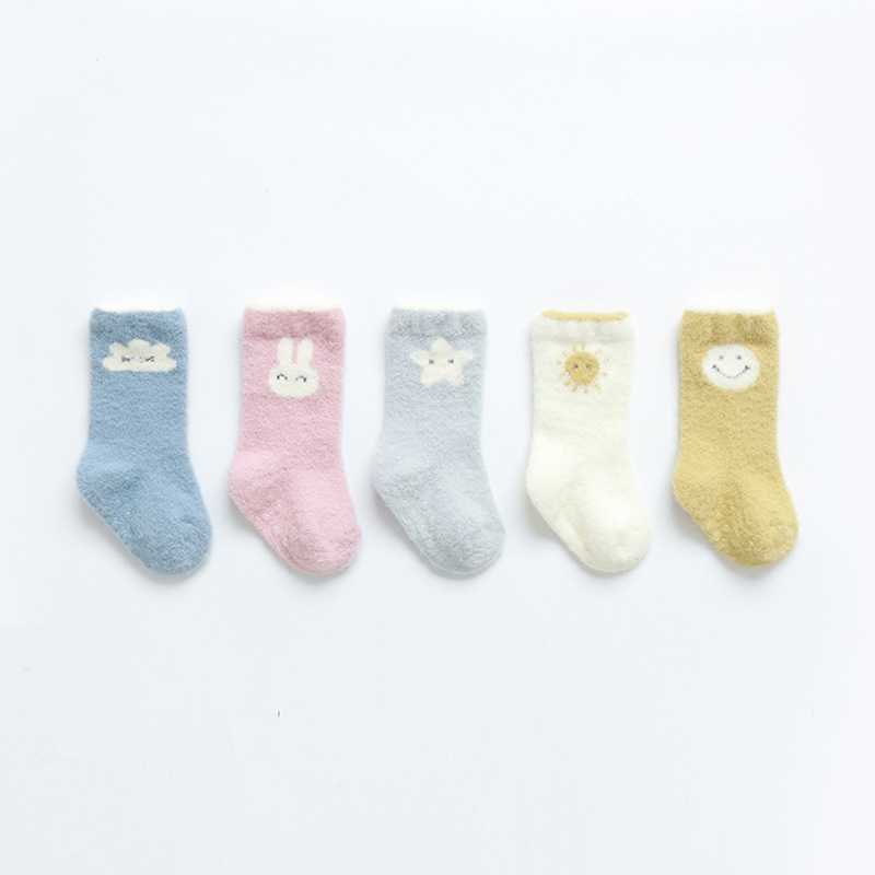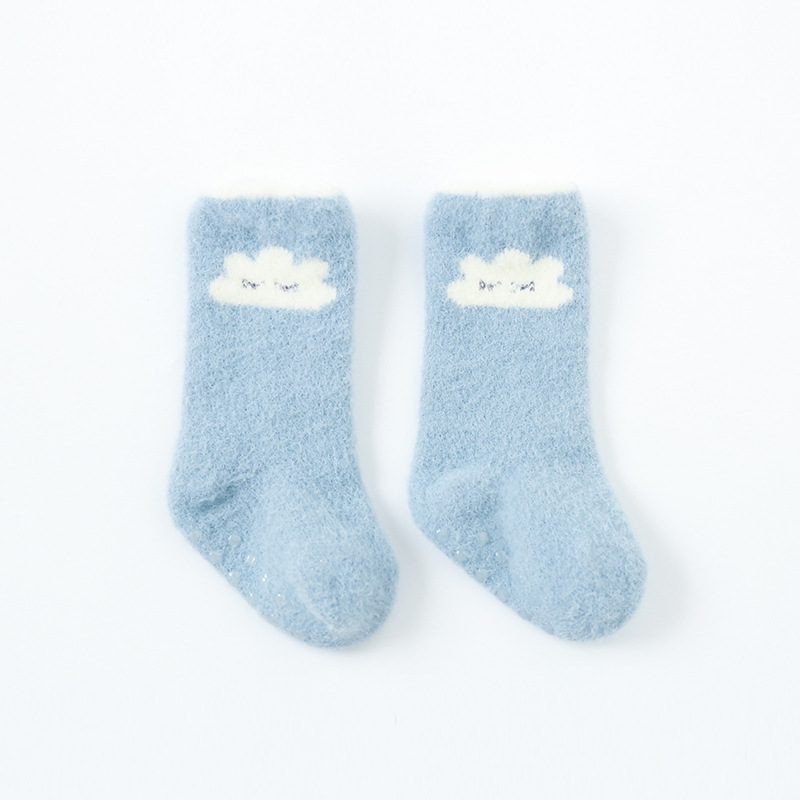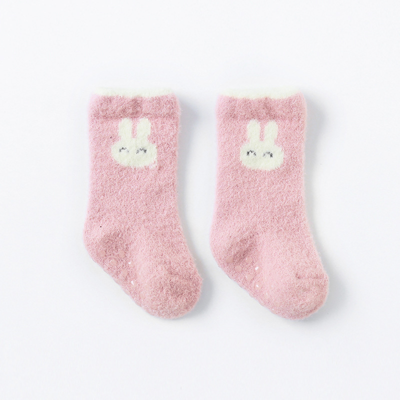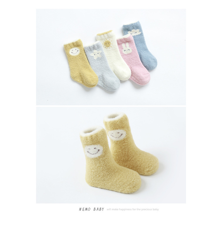 19秋冬新款貂绒纱新生儿加厚婴儿中筒袜子卡通宝宝袜长筒0-1-3岁