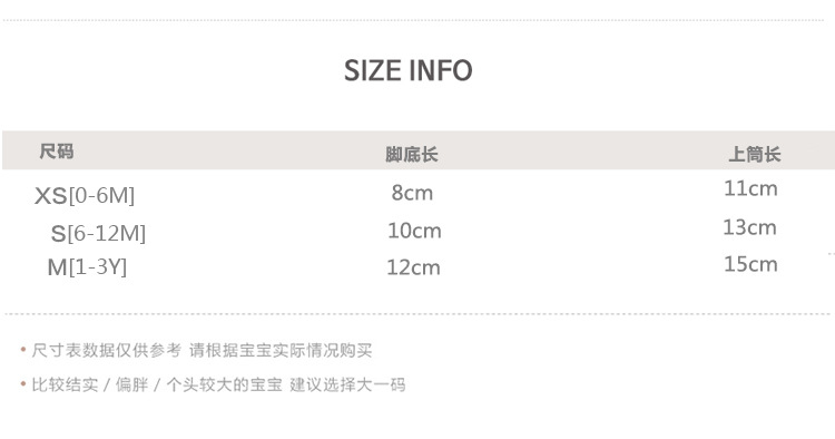 童袜尺码 XS码0-6个月,S码6-12个月,M1-3岁