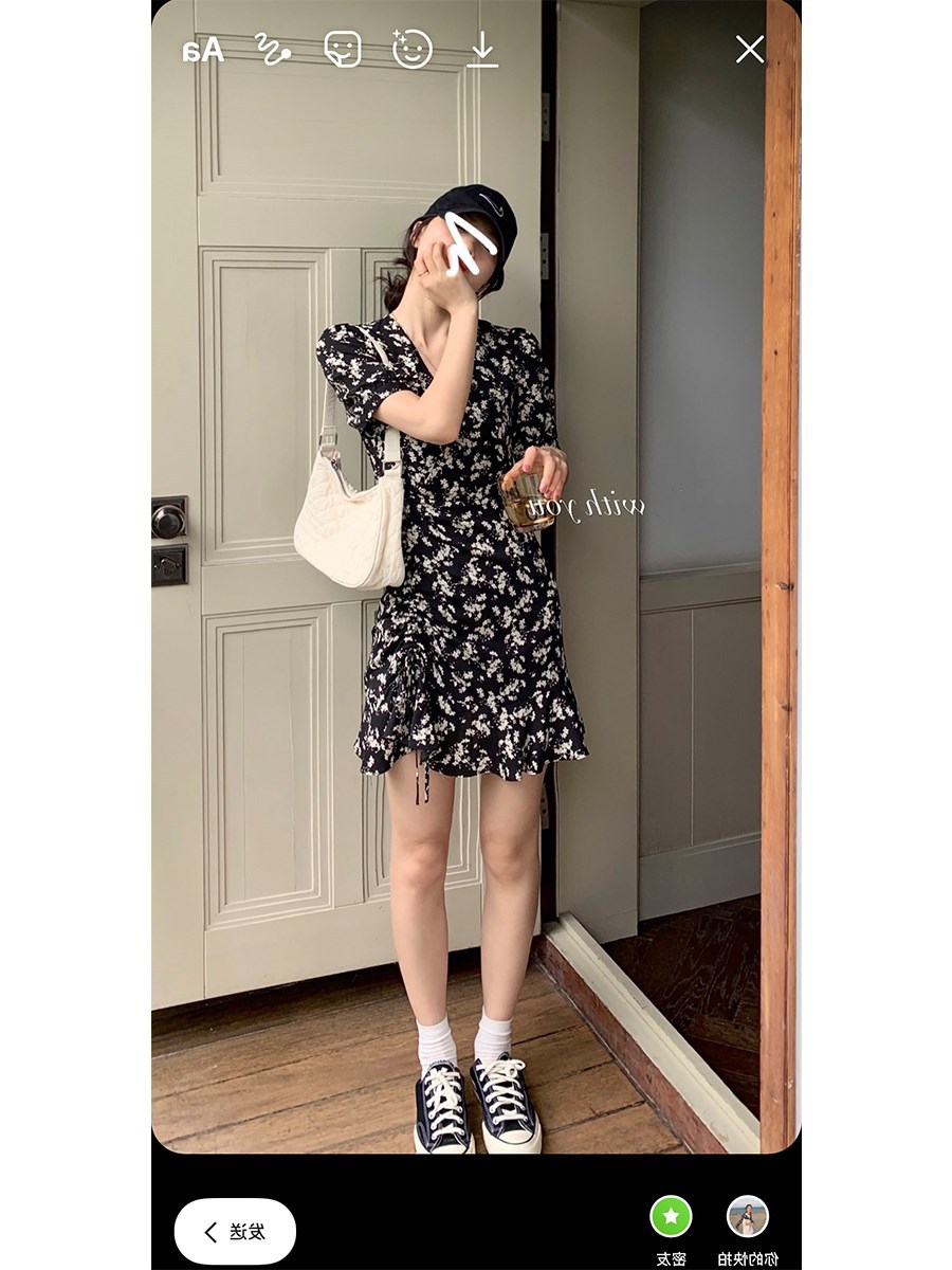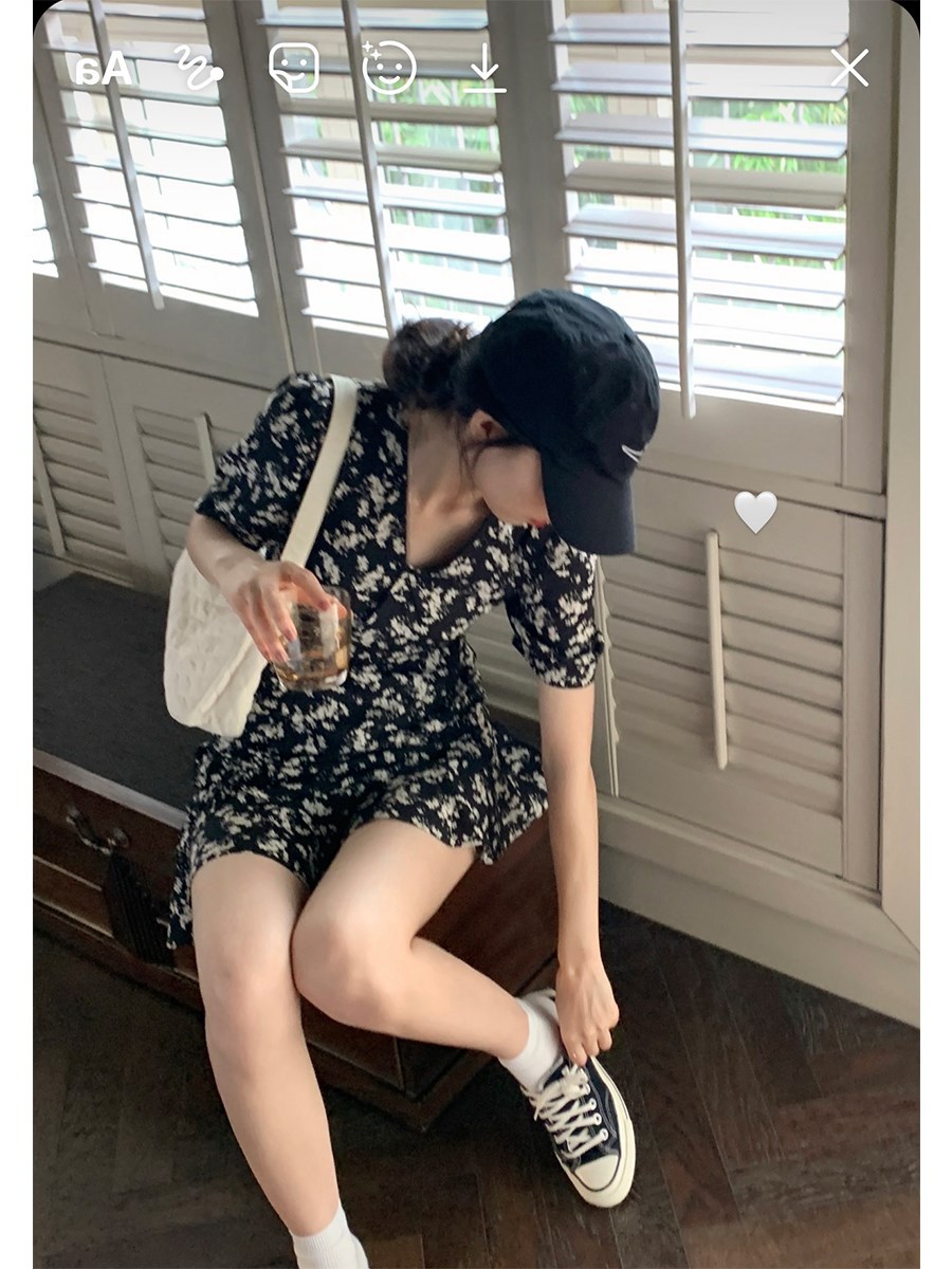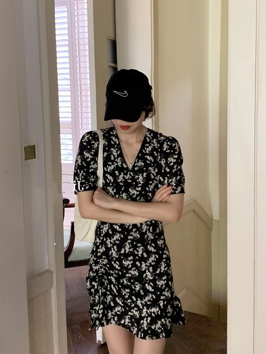 【锐达】夏季2023新款法式复古气质初恋裙V领显瘦碎花连衣裙女