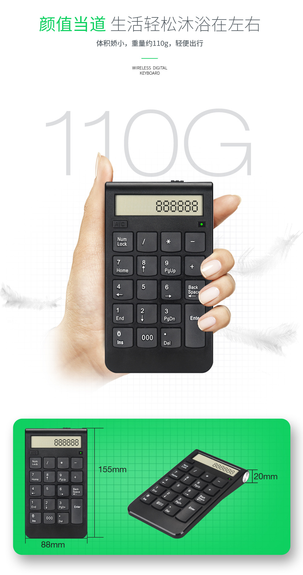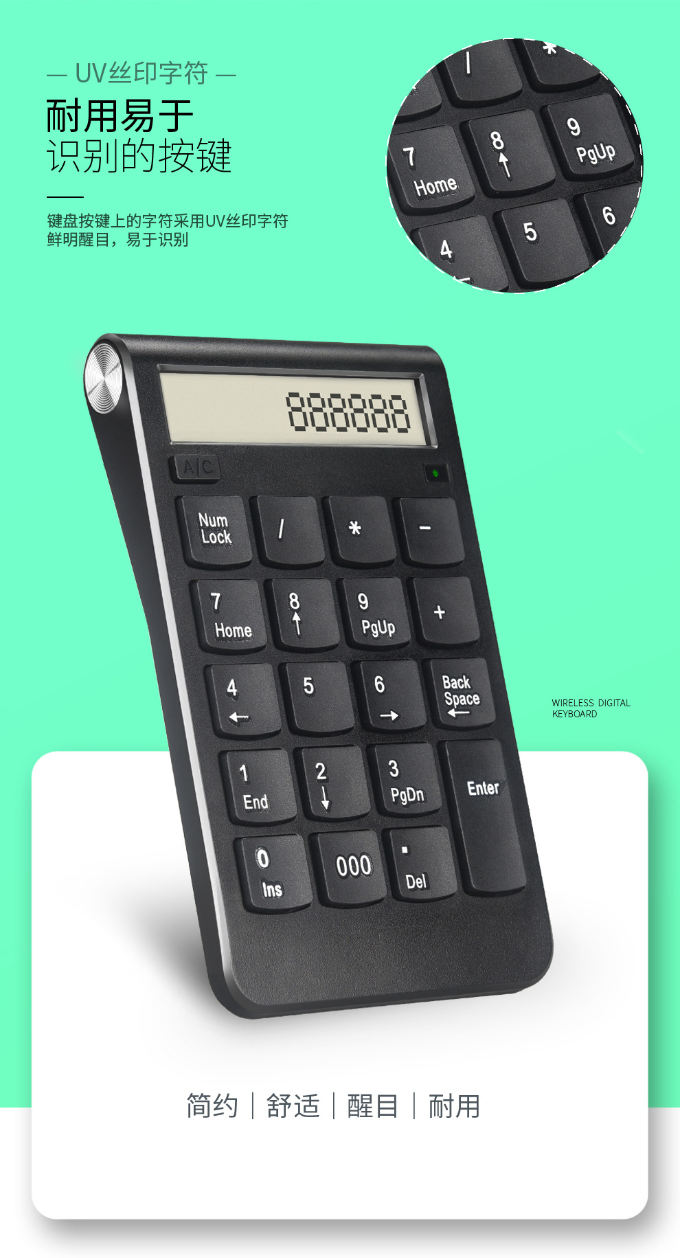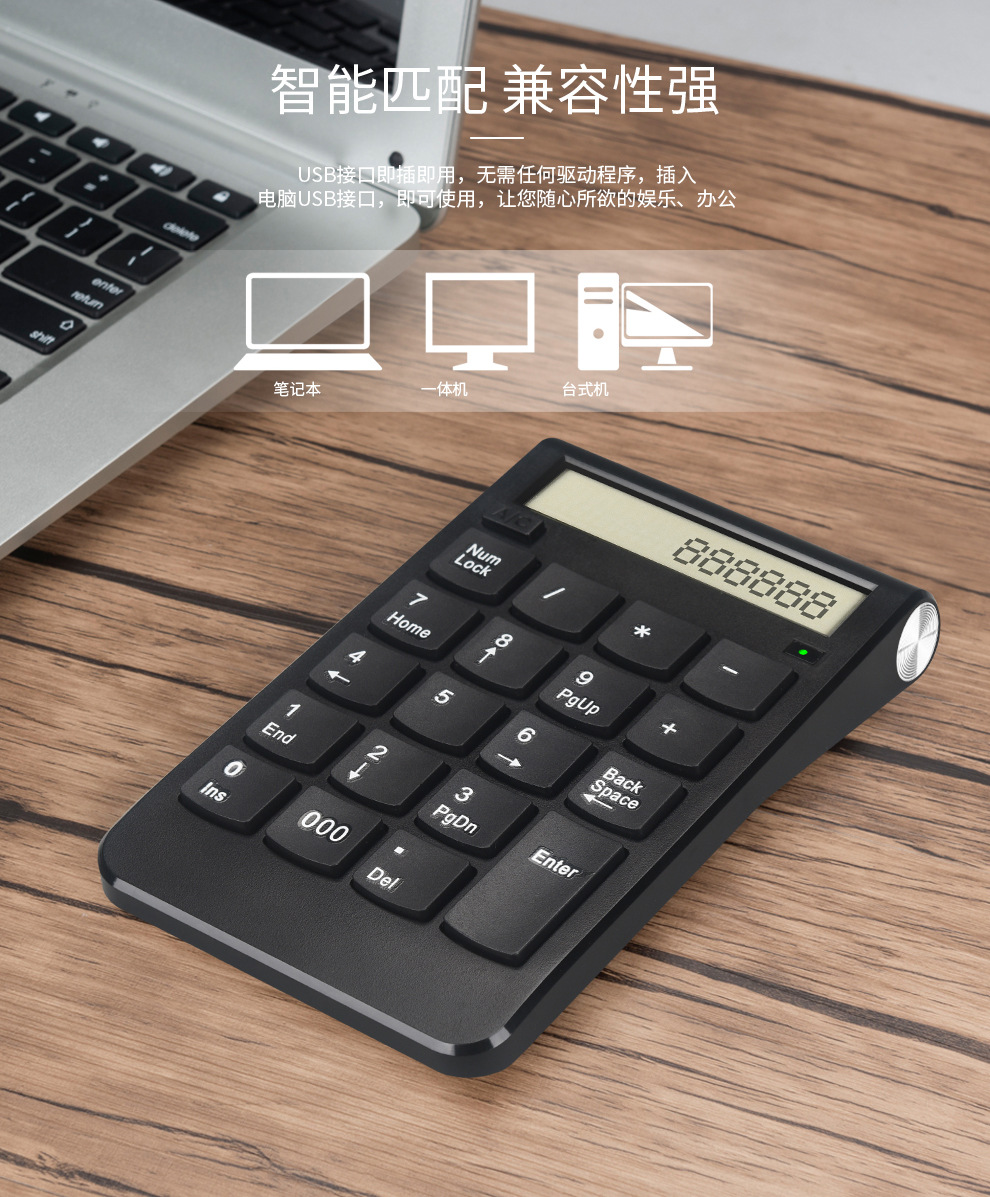 新款显示屏带计算机功能充电无线数字小键盘可支付内置锂电池财会