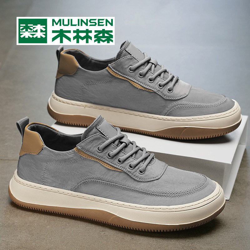 木林森男士鞋子夏季透氣薄款開車冰絲帆布鞋男款潮流休閒工作板鞋