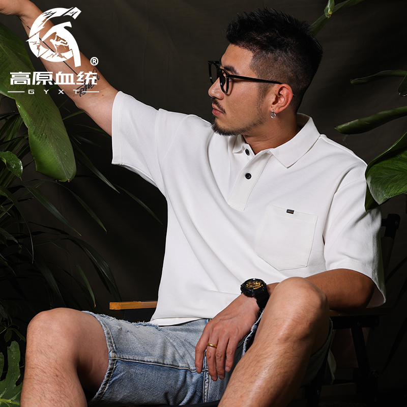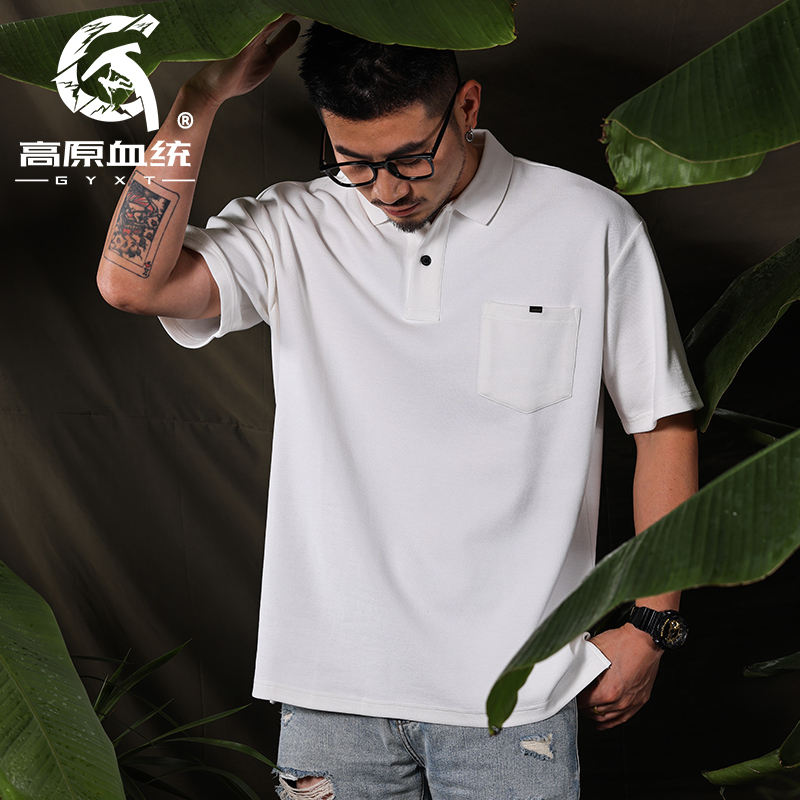 美式潮牌Polo衫短袖男2023新款夏季山系休閒300g重磅復古寬鬆T恤