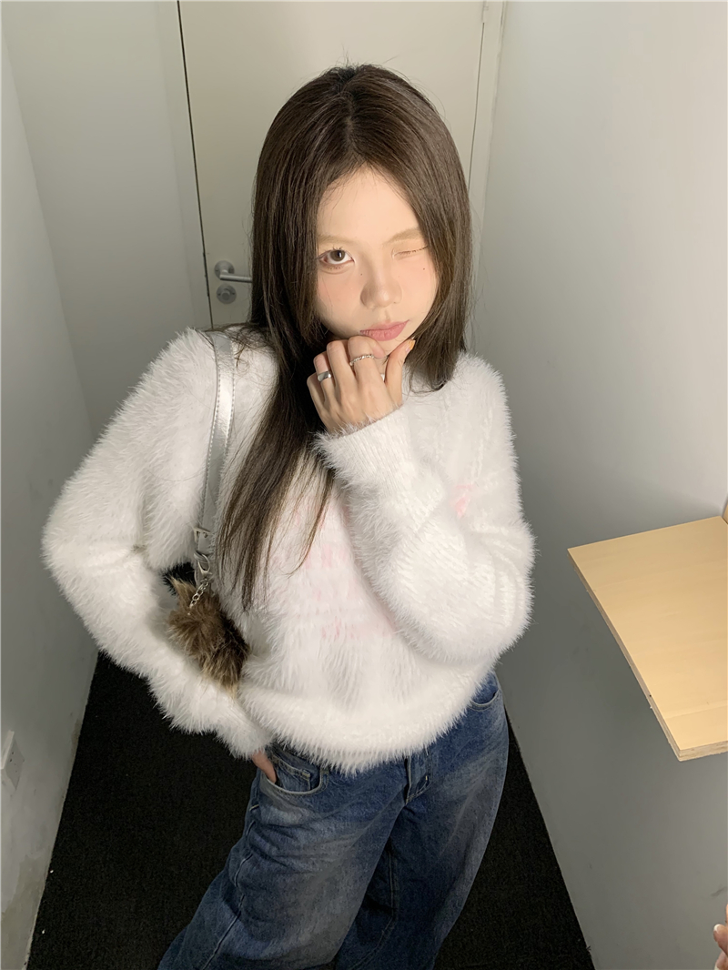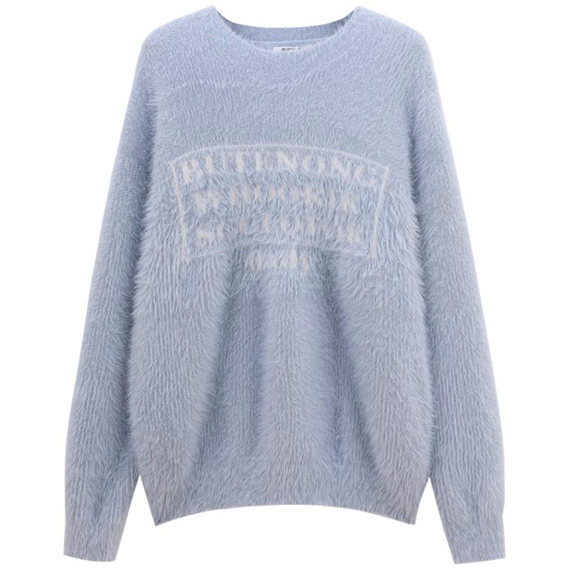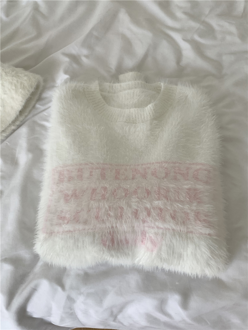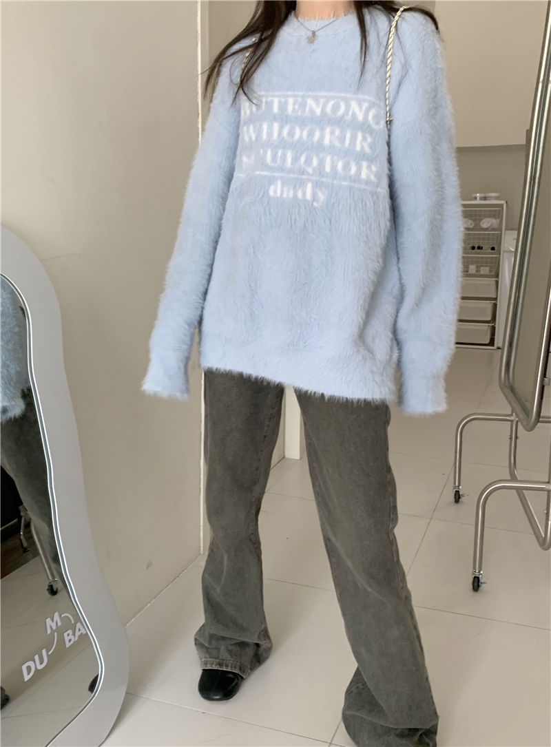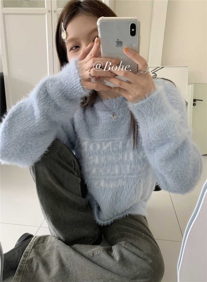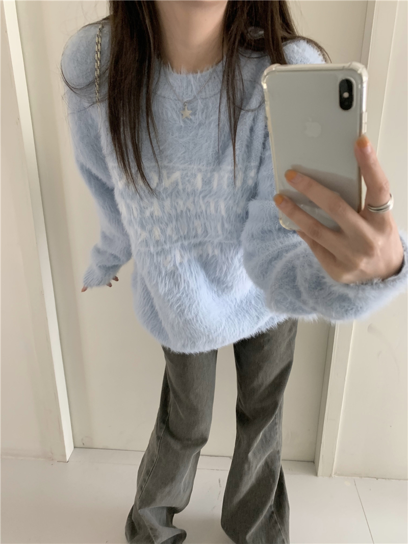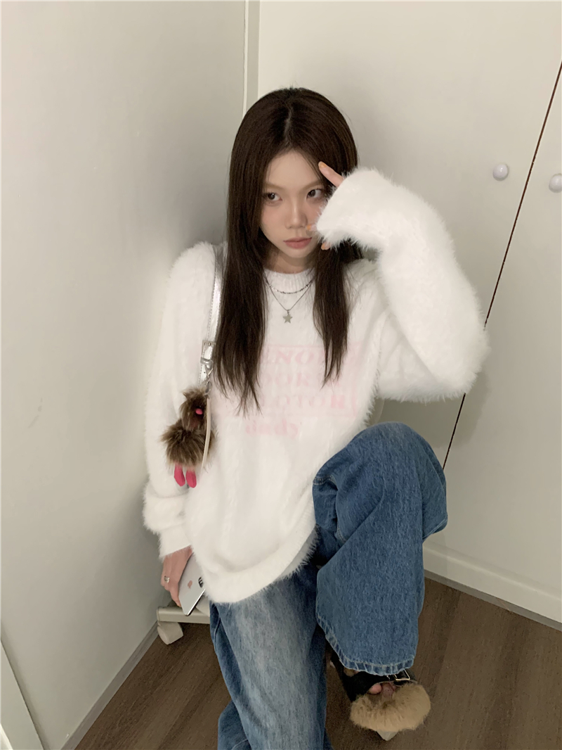 軟糯糯奶呼呼毛衣女秋冬2023新款仿貂絨加厚寬鬆字母長袖針織上衣