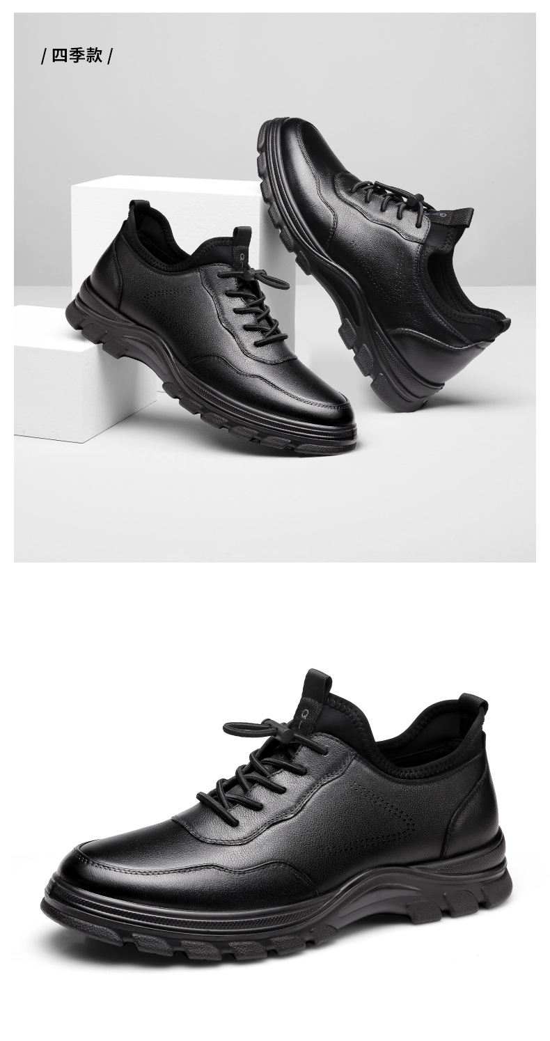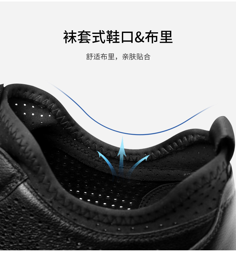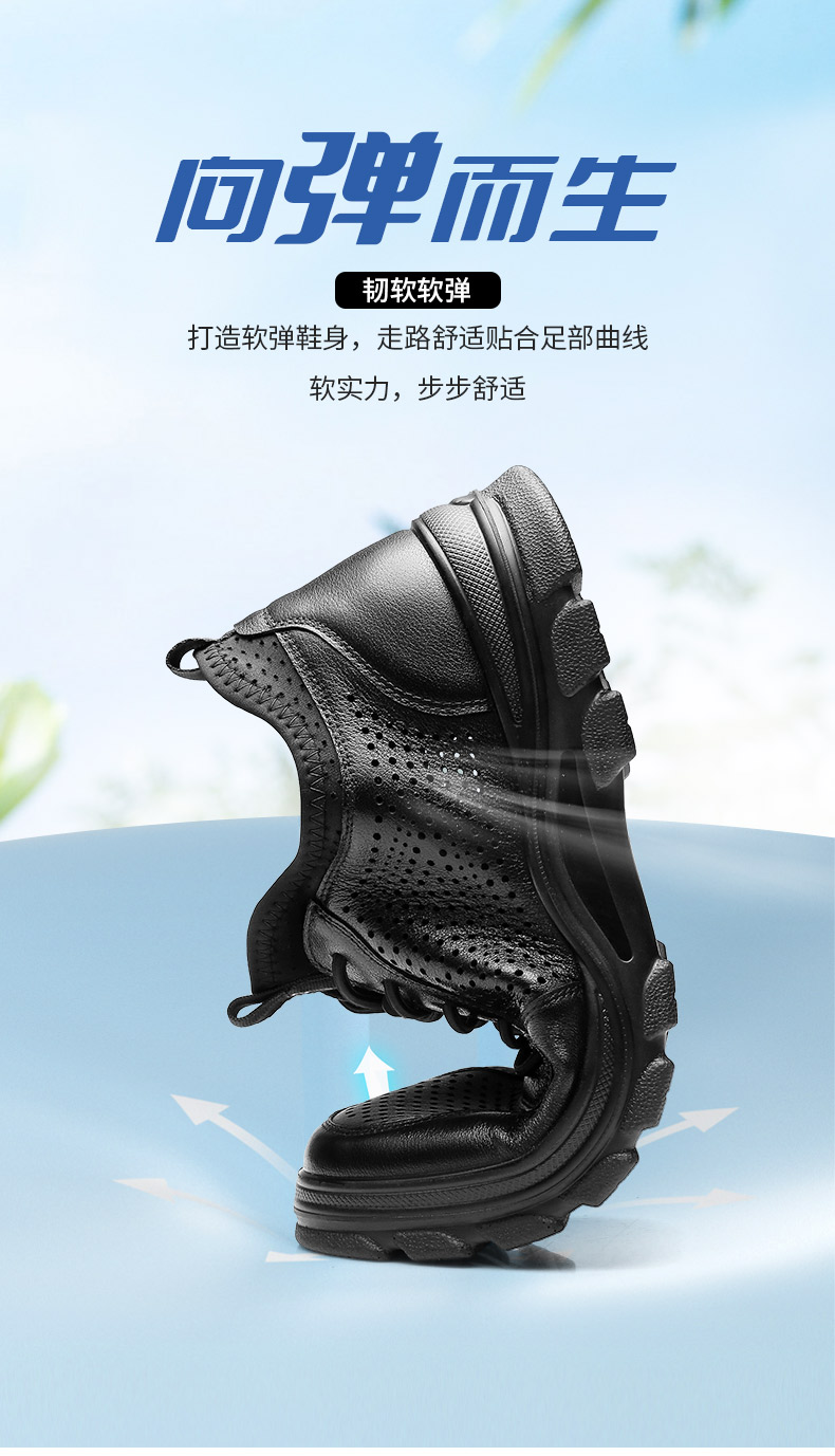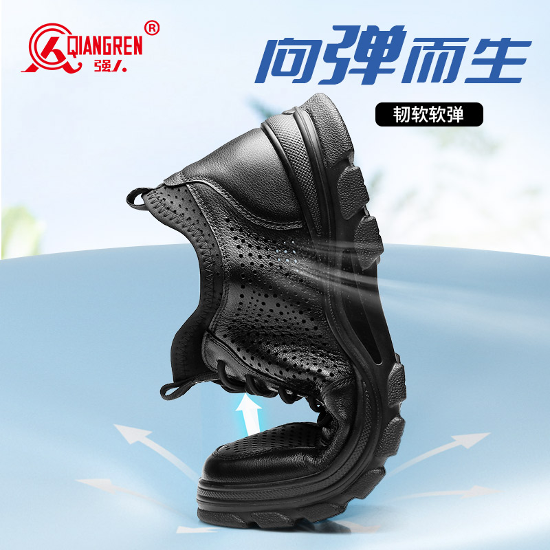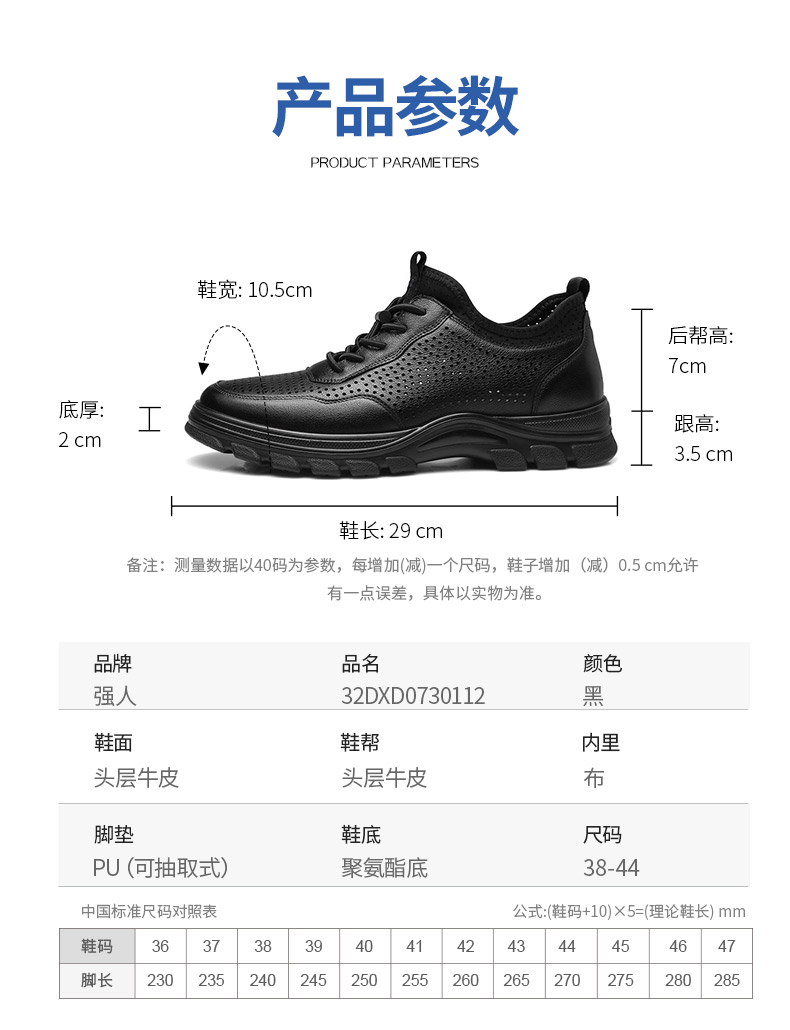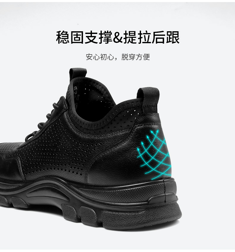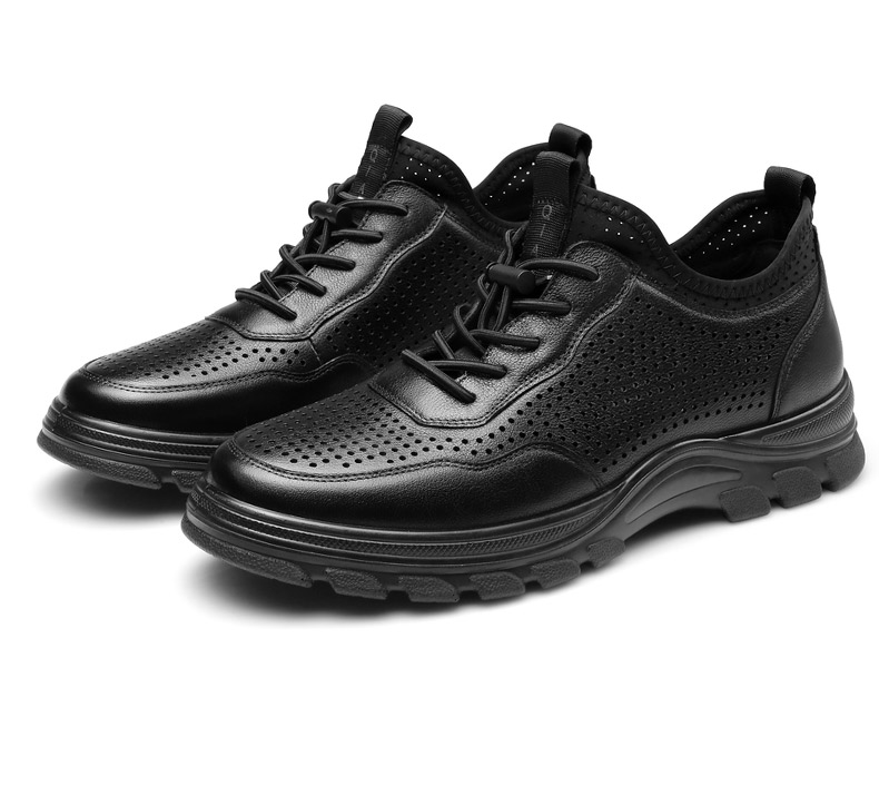 強人3515休閒皮鞋男夏季鏤空透氣涼皮鞋真牛皮運動鞋青年皮鞋黑色