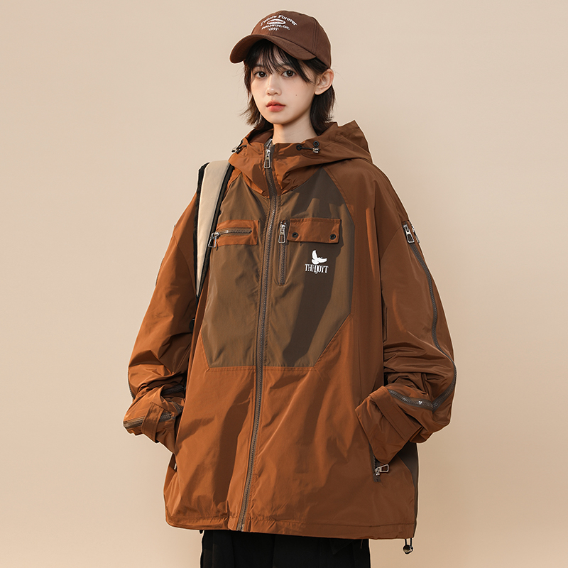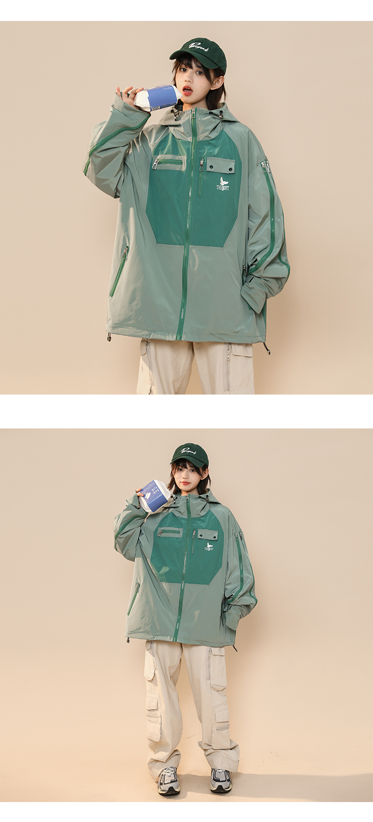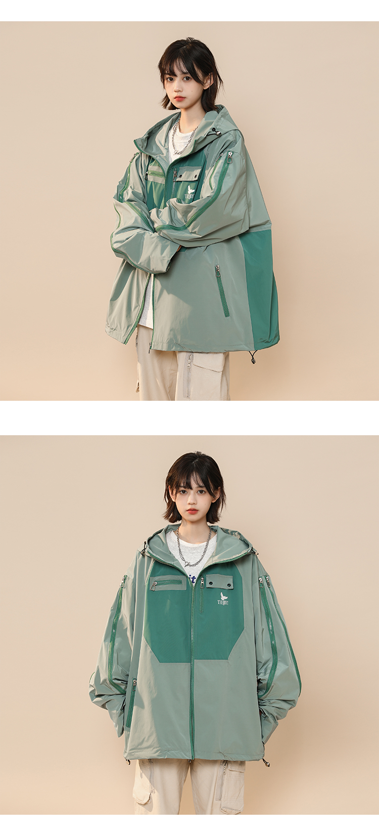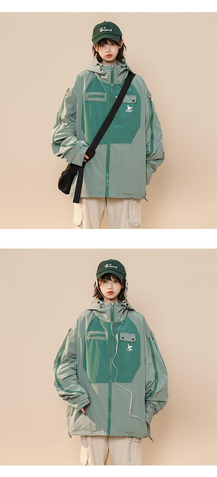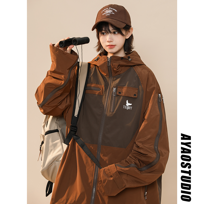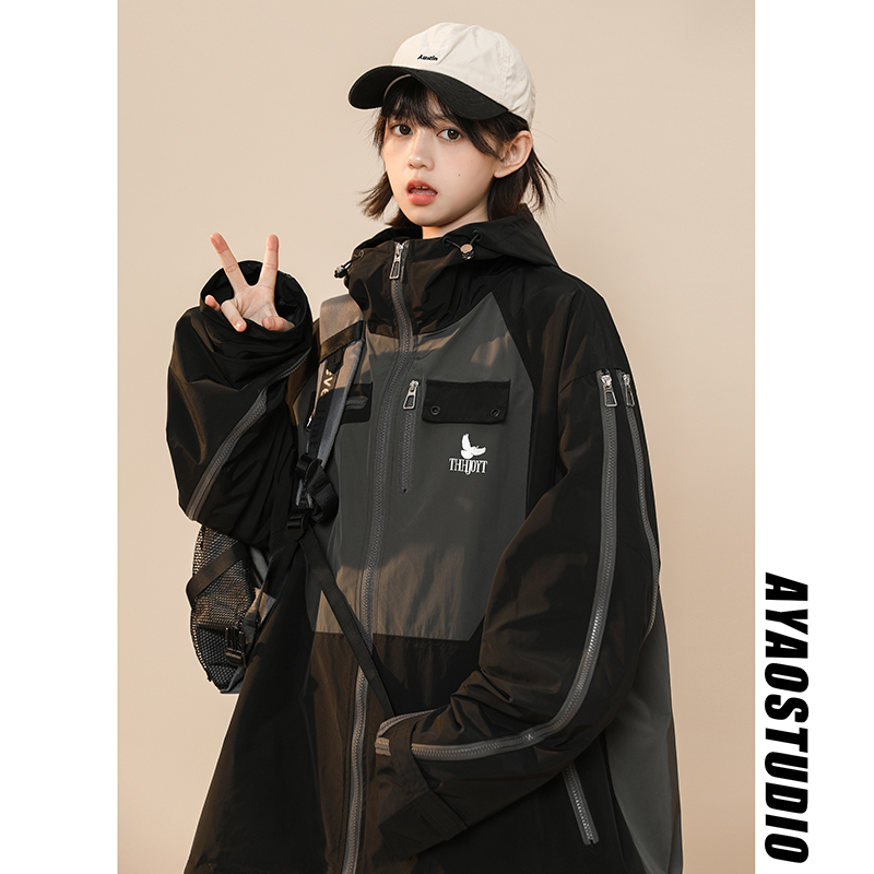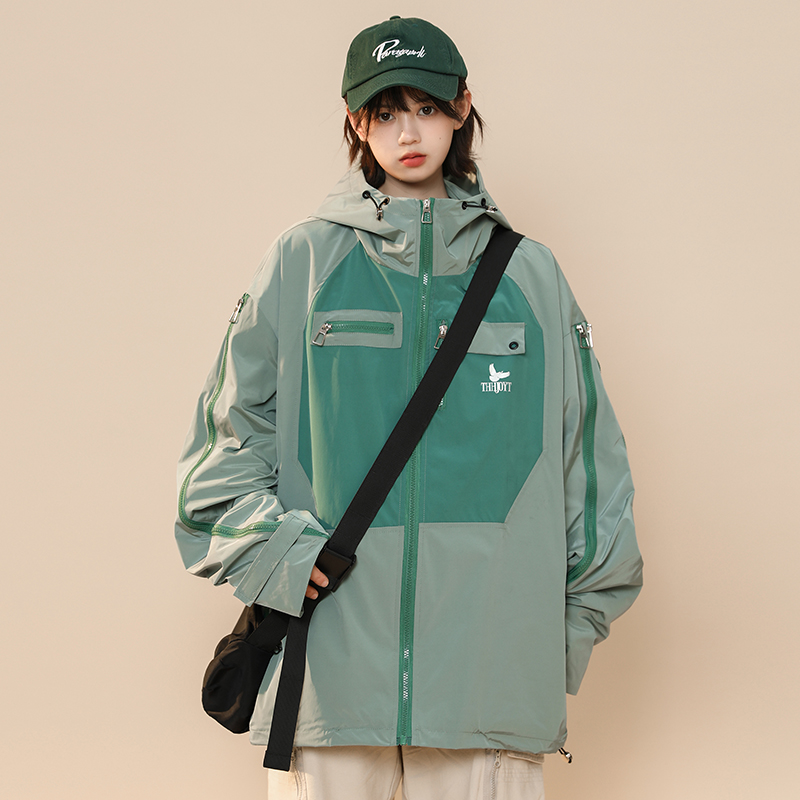 綠色衝鋒衣外套女春秋小個子高級感洋派獨特別致戶外機能工裝夾克