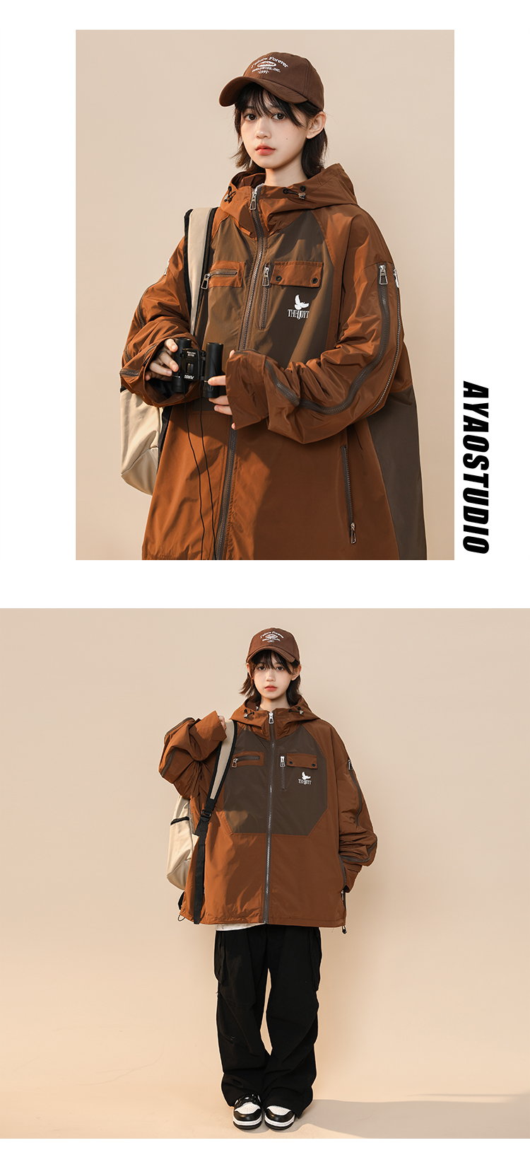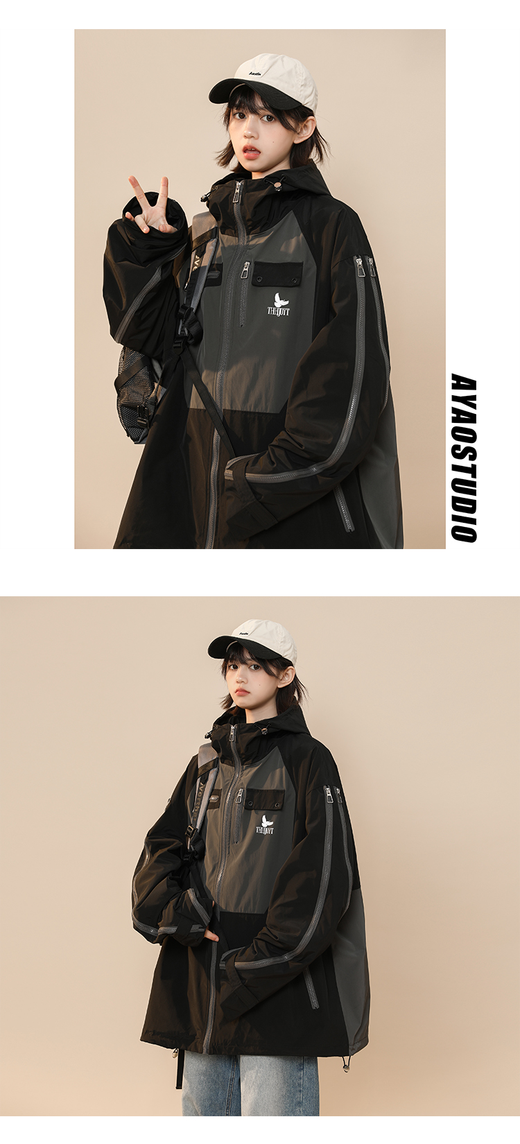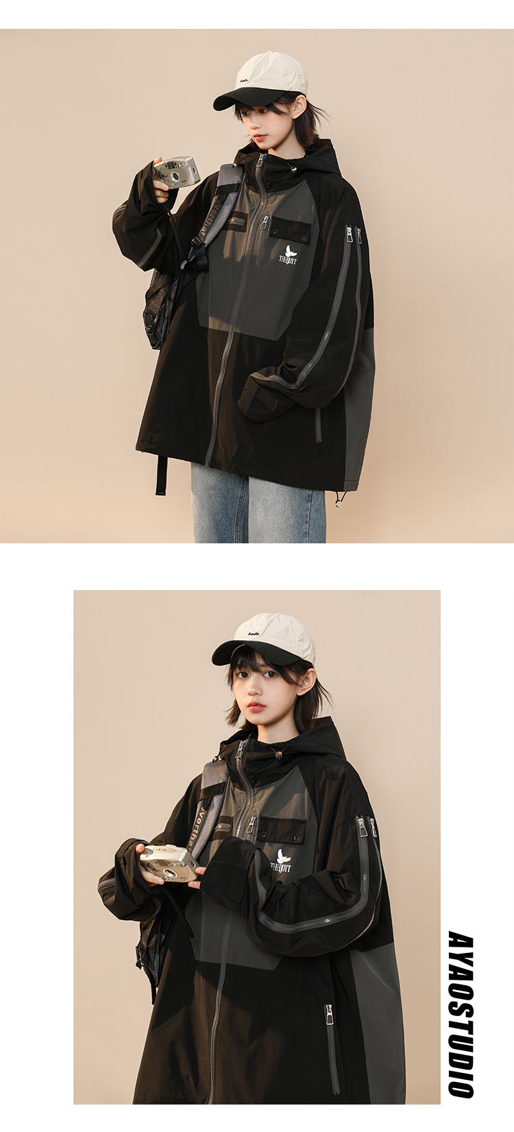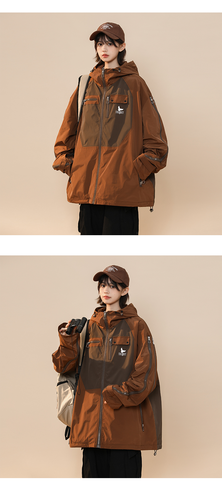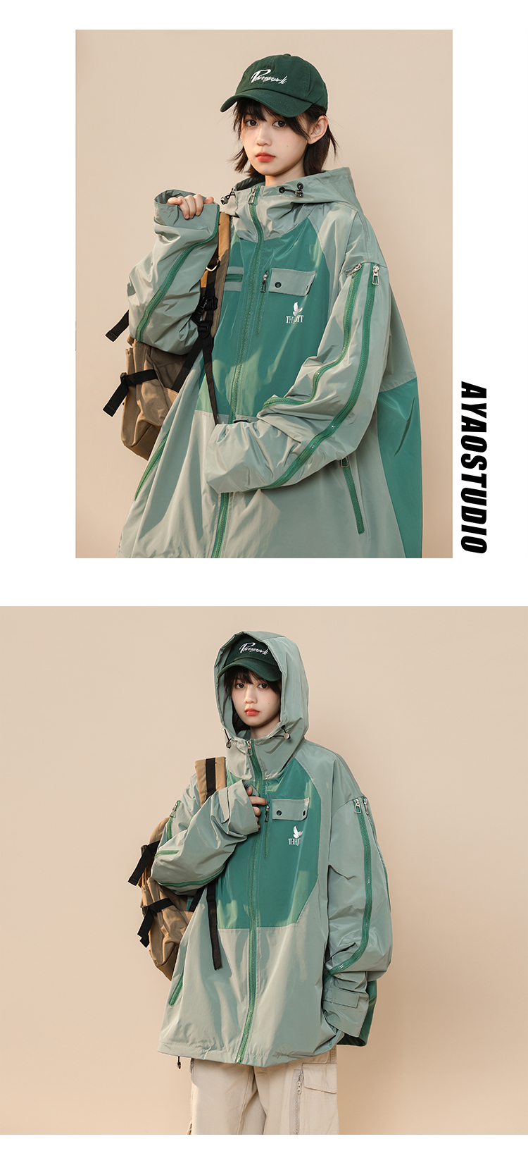 綠色衝鋒衣外套女春秋小個子高級感洋派獨特別致戶外機能工裝夾克