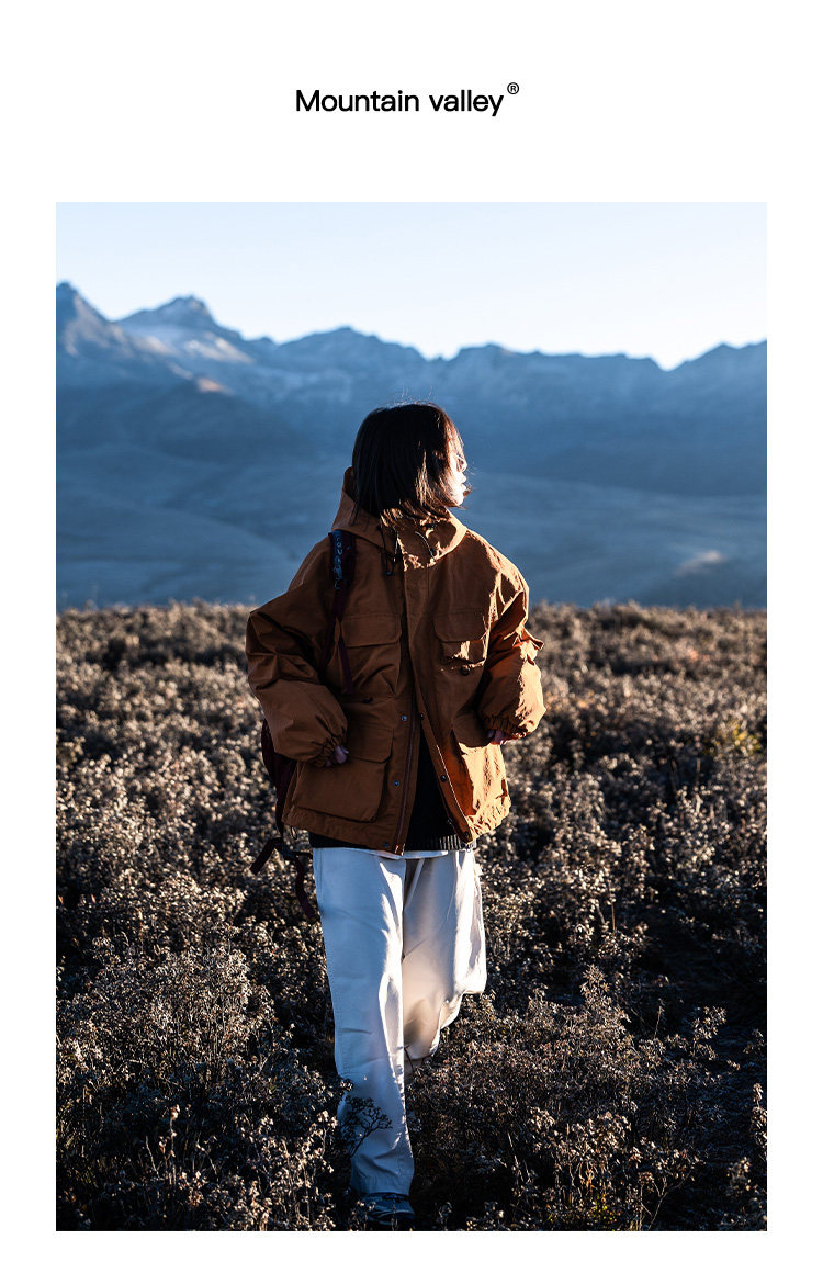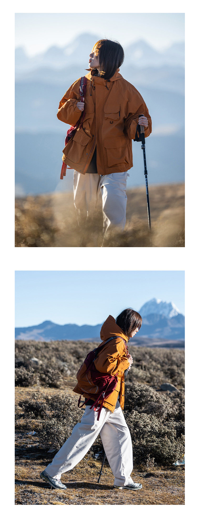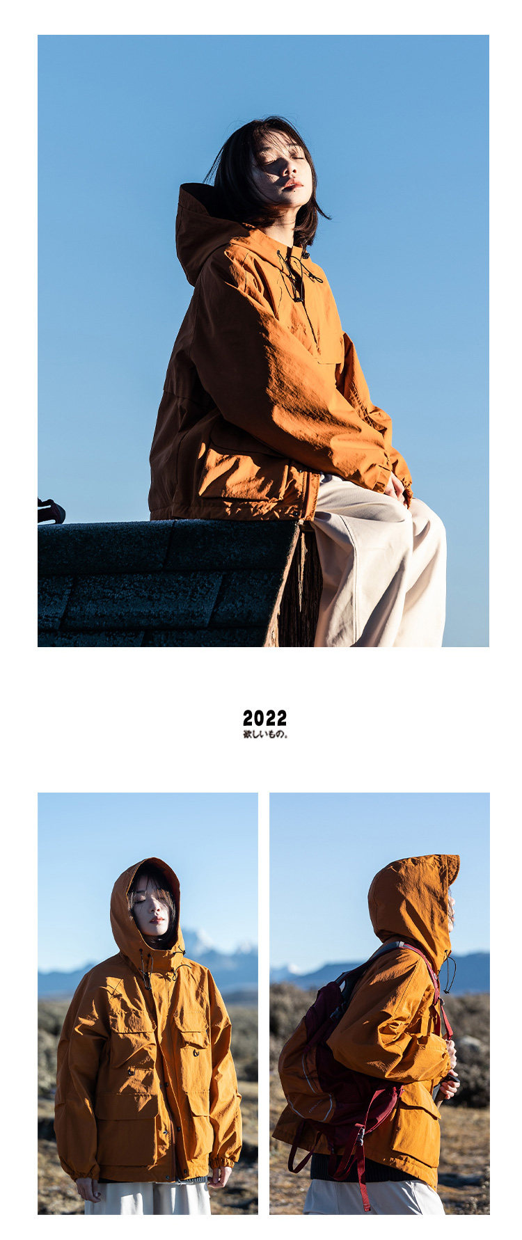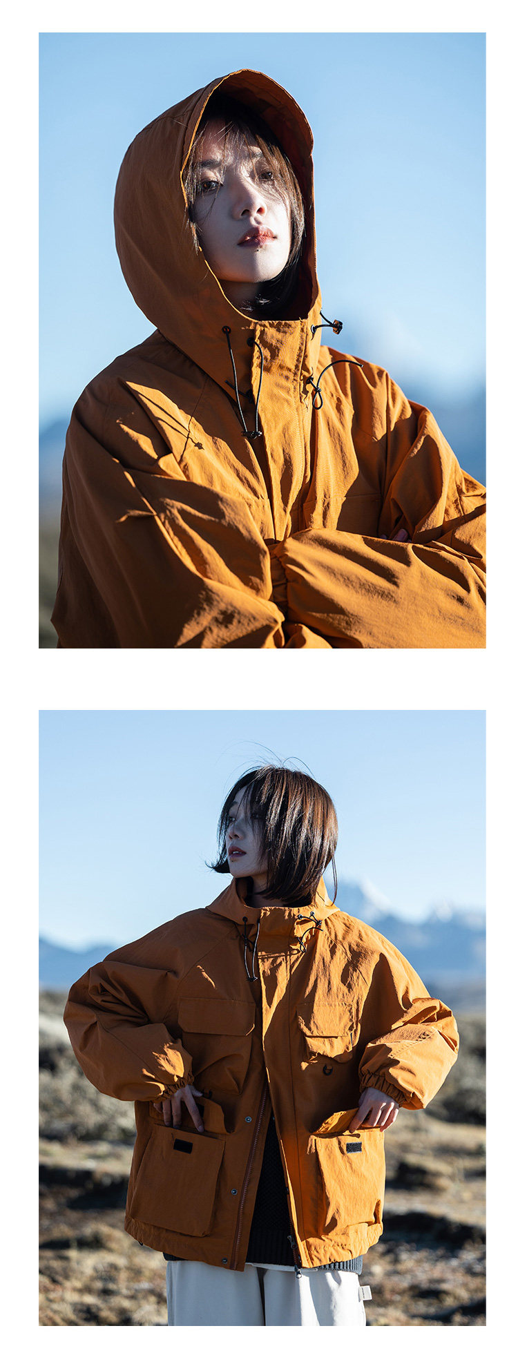 23SS戶外多口袋防風防水機能工裝加絨連帽衝鋒衣加厚夾克男女外套